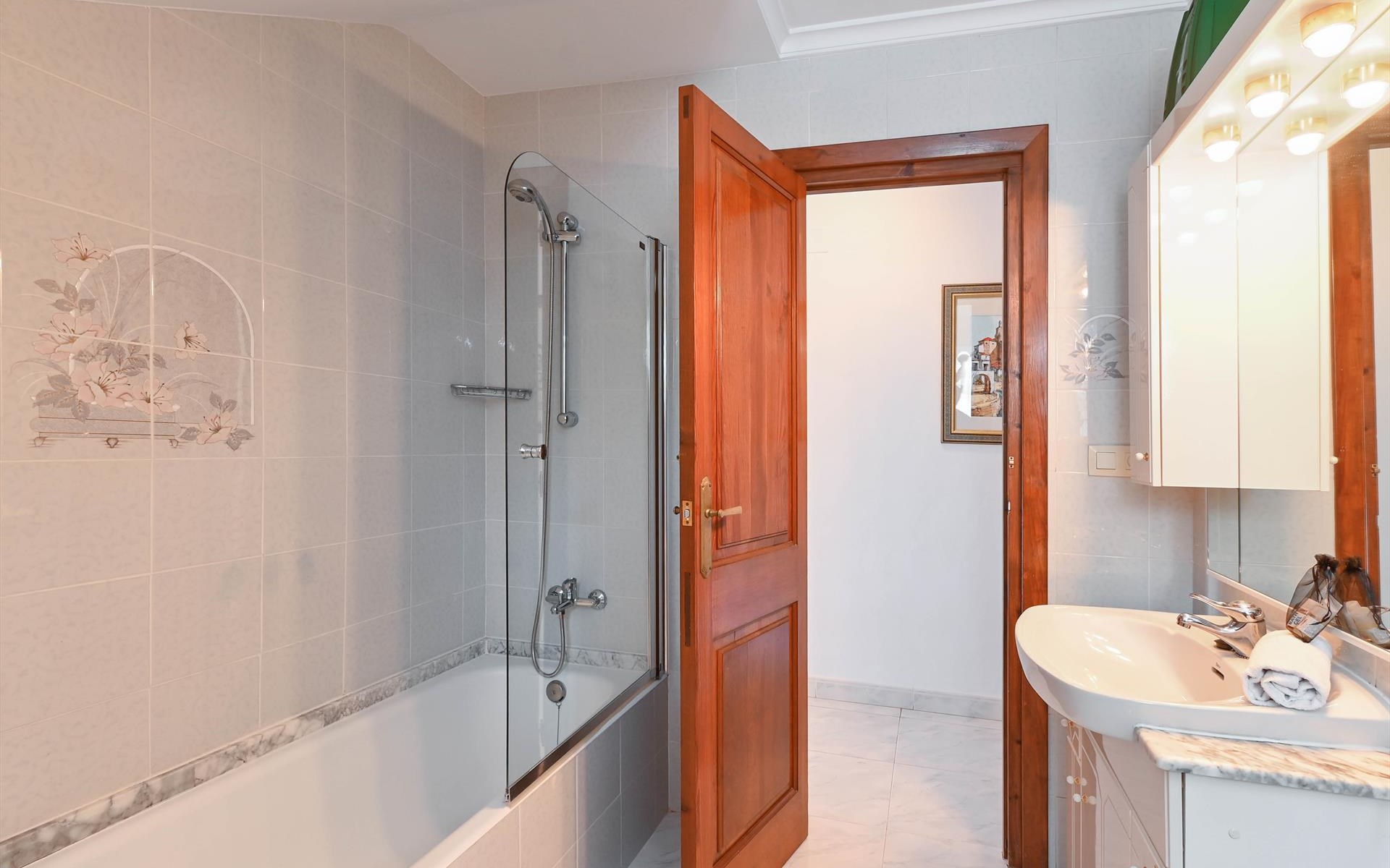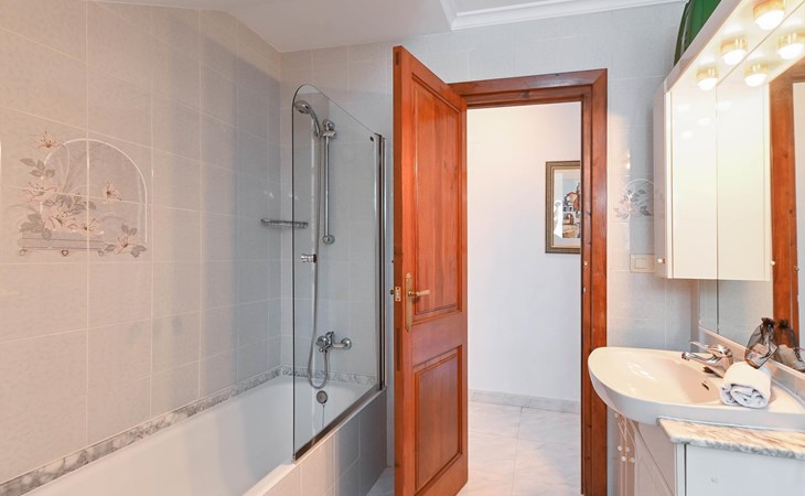 - badkamer met wastafel, douche/badcombinatie en toilet