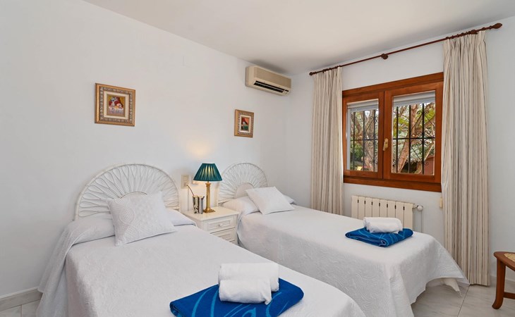 - 2 slaapkamers, elk met 2 eenpersoonsbedden (van 190 x 90cm) en air conditioning