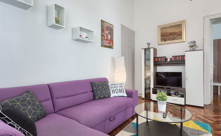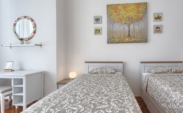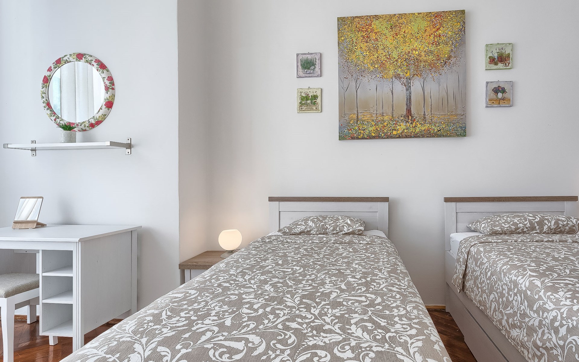 Flatgebouw. 1 km van het centrum van Pula, rustige, zonnige ligging, 700 m van zee, 700 m van het strand, aan een doodlopende weg. Voor alleengebruik: tuin 10 m2. Tuinmeubelen. In het huis: internetaansluiting. Parkeerplaats bij het huis op het terrein. Winkel, restaurant, café, bushalte 200 m, kiezelstrand 700 m, rotsstrand.