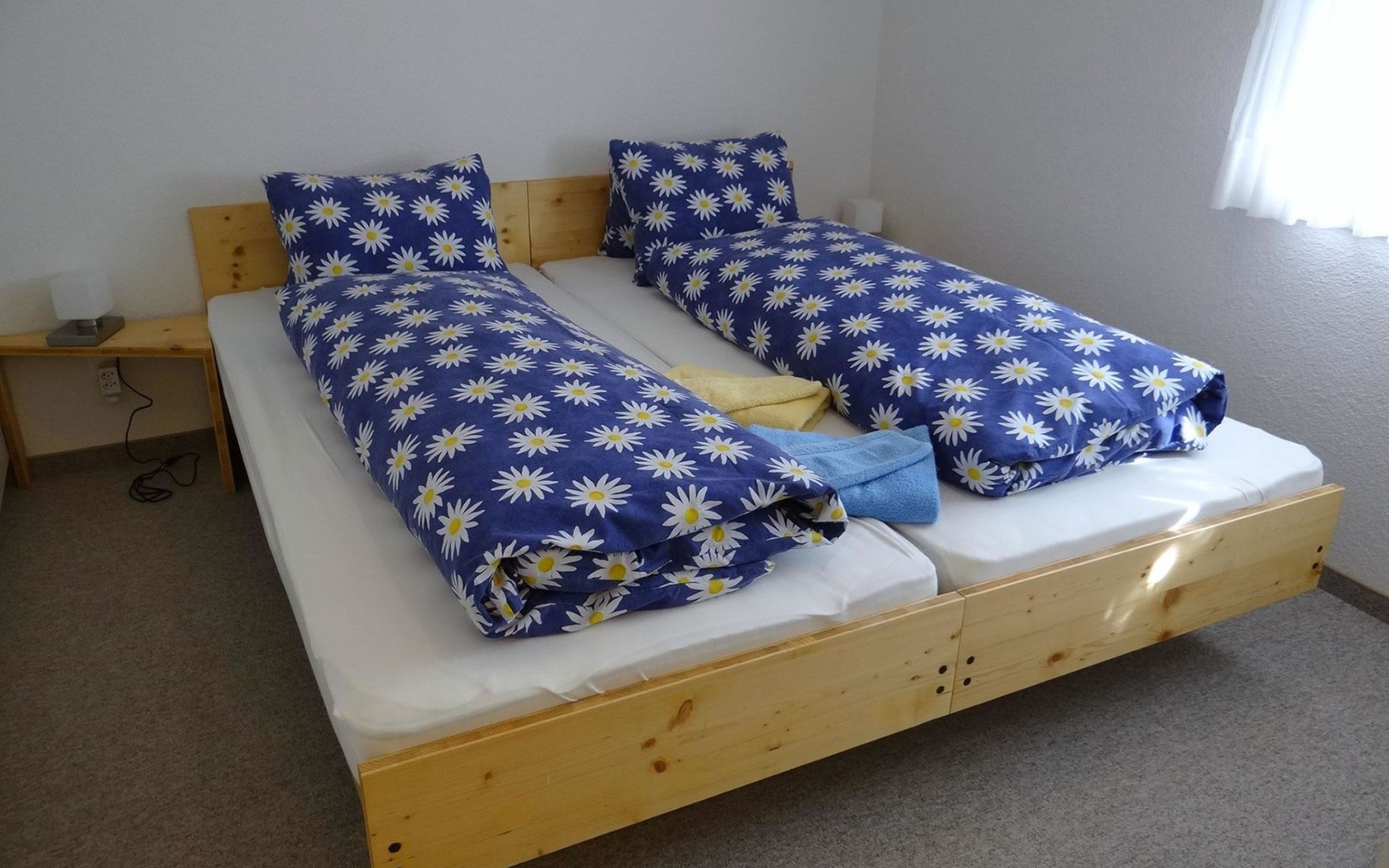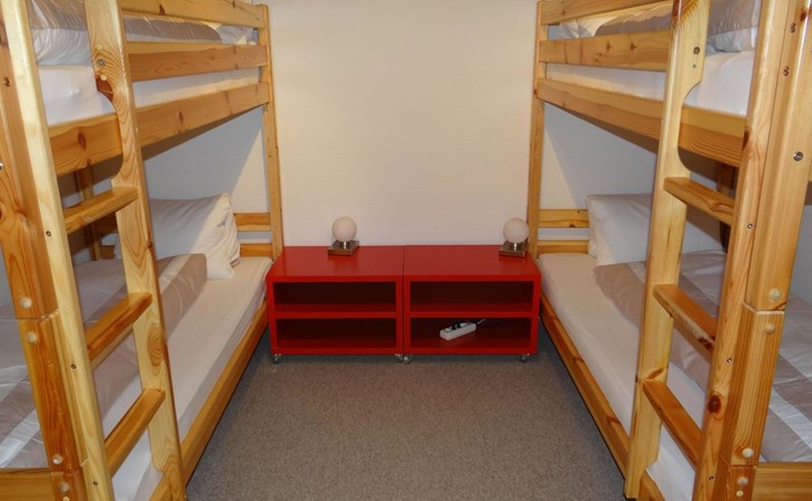 3-room-apartment on the ground floor: open kitchen, living-dining room, double bed-room, 4-bed-room with 2x2 bunk beds, bath-toilet.