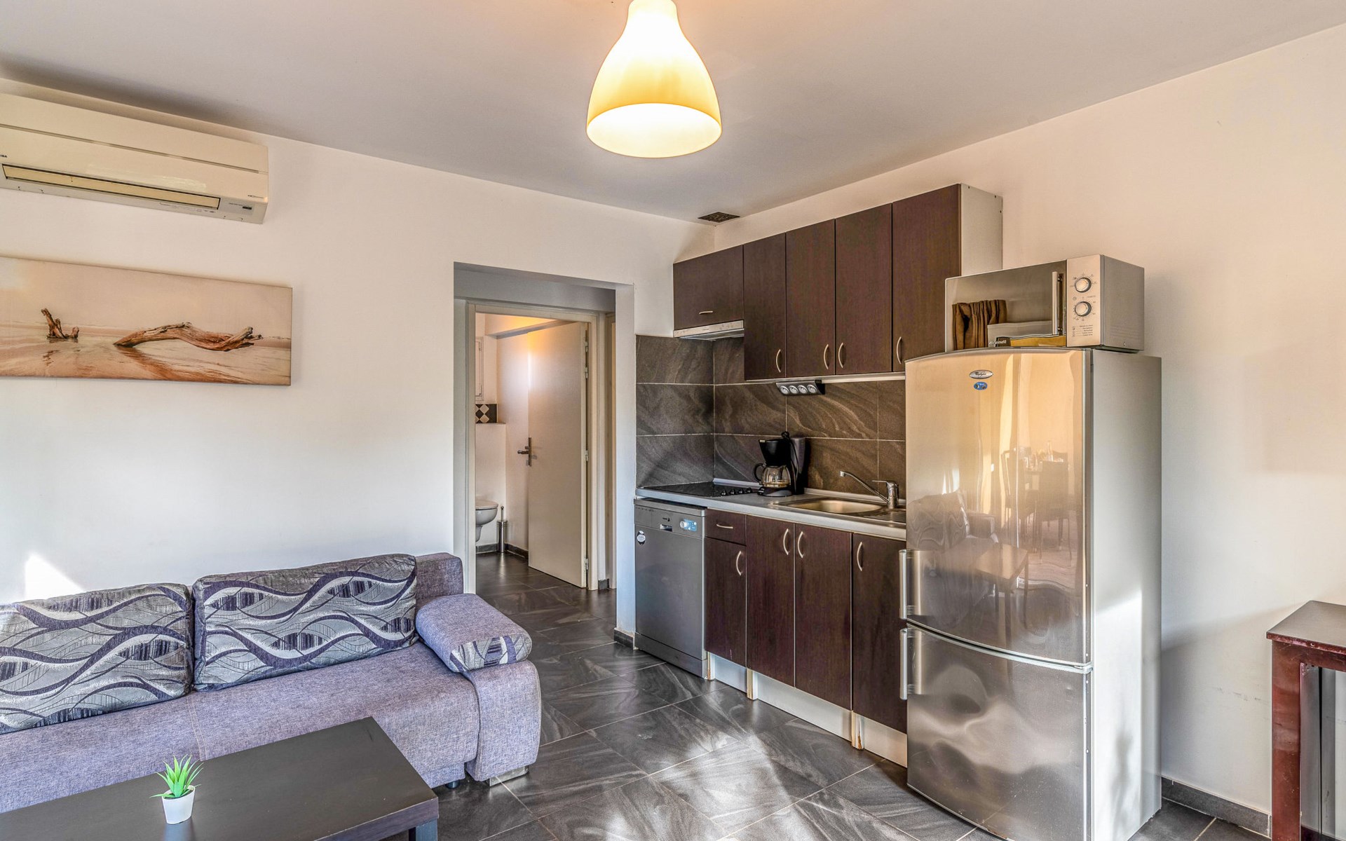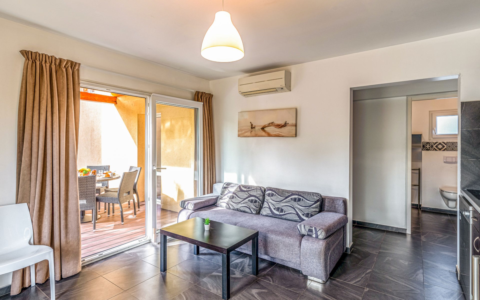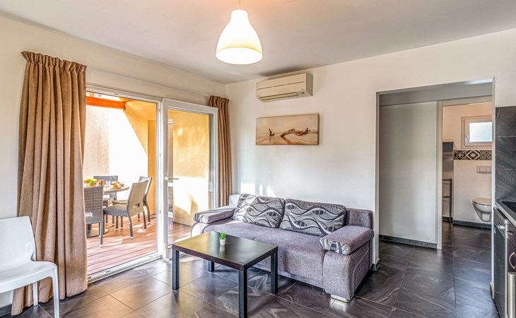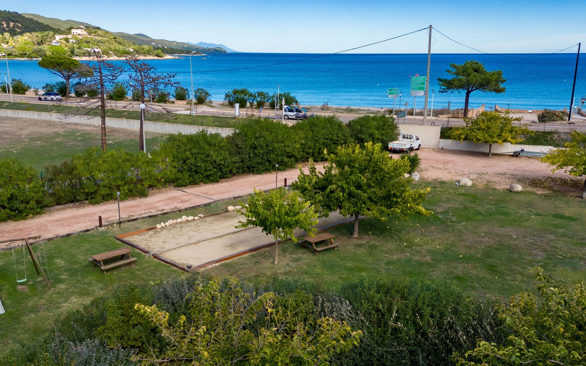 Vakantiecomplex "Marina di Favone", van 2 verdiepingen. 3 huizen in de woning. 18 appartementen in de woning. 300 m van het centrum van Favone, 10 km van het centrum van Solenzara, 116 km van het centrum van Bastia, 200 m van zee, de straat oversteken. Voor medegebruik: terrein 15.000 m2 met planten en bomen, weide, openluchtzwembad (14 x 7 m, seizoensgebonden beschikbaarheid: 30.Apr. - 31.Okt. openingstijden zwembad: 09:00-20:00). WC bij het zwembad, buitendouche, hot tub, jeu de boules, terras, tuinmeubelen (glijbaan, schommel). In het complex: receptie, bar, Internet (WiFi), wasmachine, droger (voor medegebruik). Parkeerplaats op het terrein. Oplaadstation. Winkel 10 km, bushalte 350 m, zandstrand "Plage de Favone" 200 m. Midgetgolf 100 m. Attracties in de buurt: Porto-Vecchio 28 km, Plage de Santa Giulia 36 km, Plage de Palombaggia 37 km, Bonifacio 55 km. Auto noodzakelijk. De afgebeelde foto is slechts een voorbeeld.