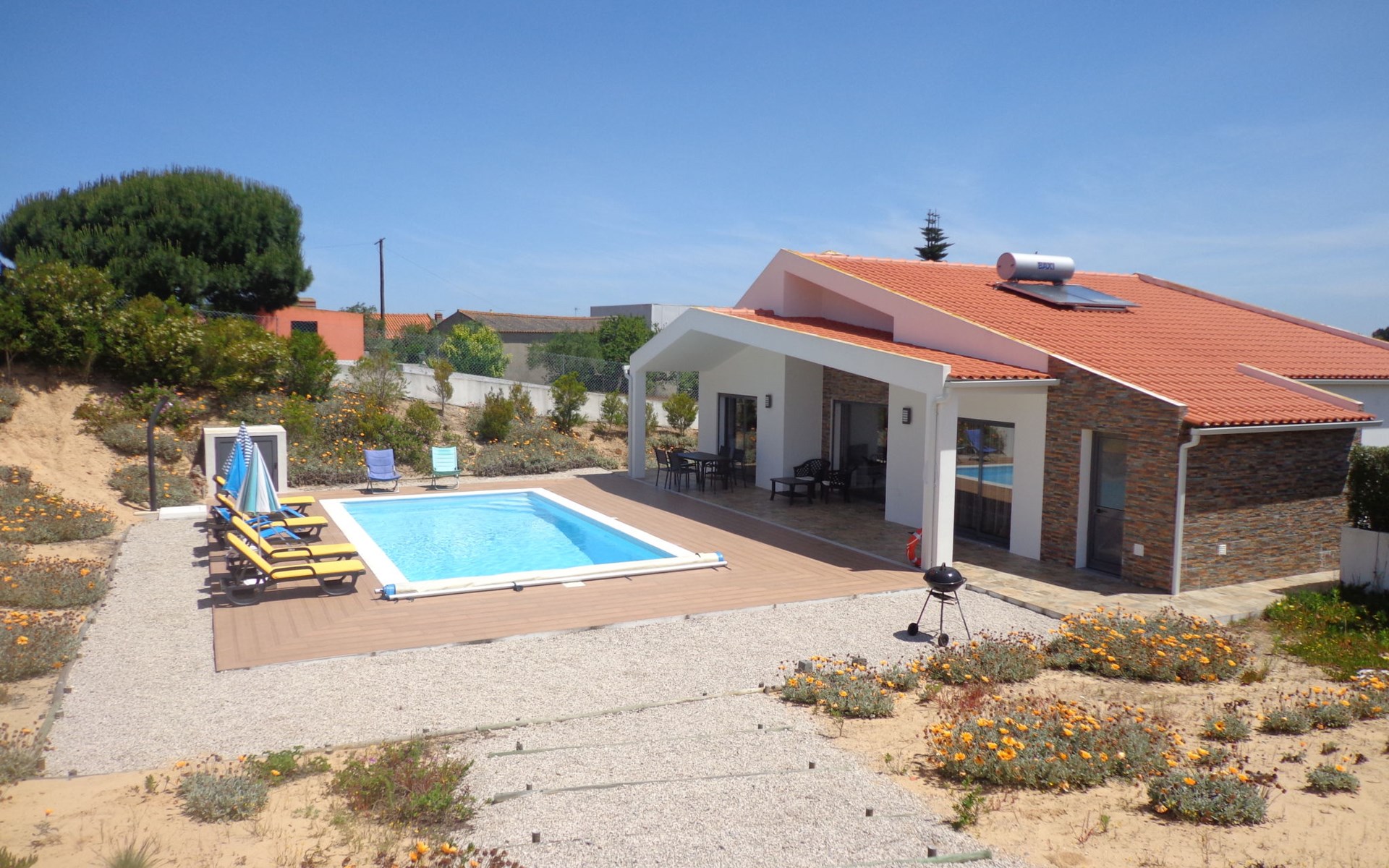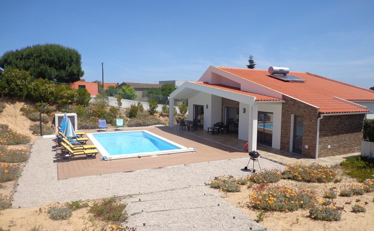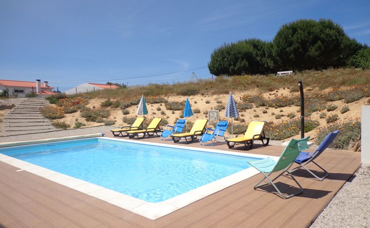 Huis "Dos Pinheiros", bouwjaar 2018. 7 km van het centrum van Óbidos, aan de rand van de plaats, 80 km van het centrum van Lissabon, tegen een helling, 3 km van zee. Voor alleengebruik: terrein 8.000 m2 (omheind) met planten, openluchtzwembad (8 x 4 m, 80 - 200 cm diepte, seizoensgebonden beschikbaarheid: 01.Jan. - 31.Dec.). Buitendouche, parkeerplaats op het terrein. Winkel 800 m, supermarkt 6 km, restaurant 3 km, bushalte 17.9 km, zandstrand 8 km, lagune 3 km. Golfterrein (18 holes) 10 km.