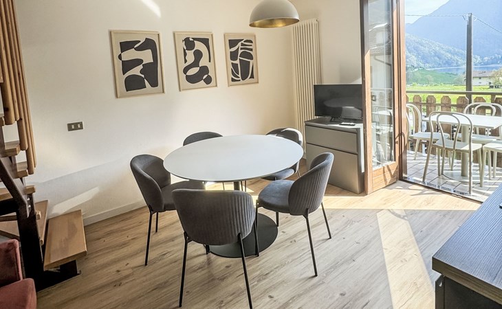 Appartementencomplex "Dromaè", van 2 verdiepingen. 3 huizen in de woning. 9 appartementen in de woning. In het gehucht Mezzolago, rustige ligging, 600 m van het meer. Voor medegebruik: tuin, openluchtzwembad (10 x 5 m, seizoensgebonden beschikbaarheid: 15.Mei. - 15.Sep. openingstijden zwembad: 09:00-20:00). Barbecue. In het huis: bergruimte voor fietsen. Parkeerplaats. Supermarkt 1.5 km, bushalte 600 m. De afgebeelde foto is slechts een voorbeeld. Vergelijkbare accommodaties kunnen worden geboekt.