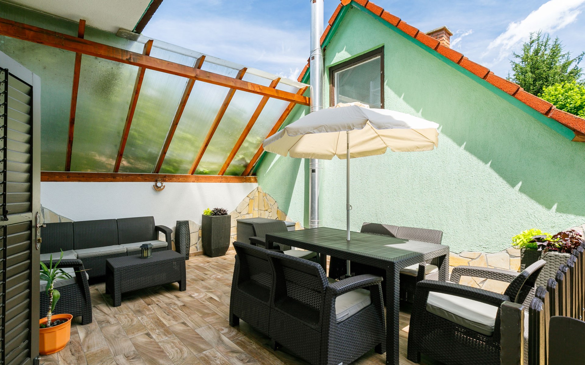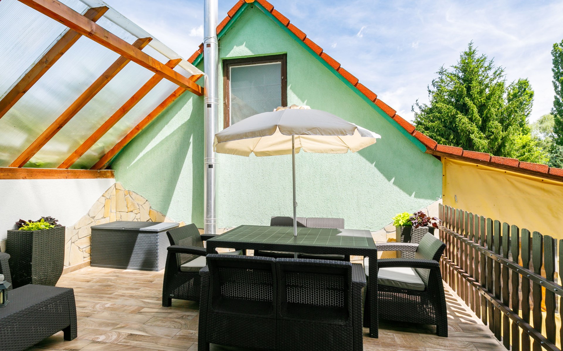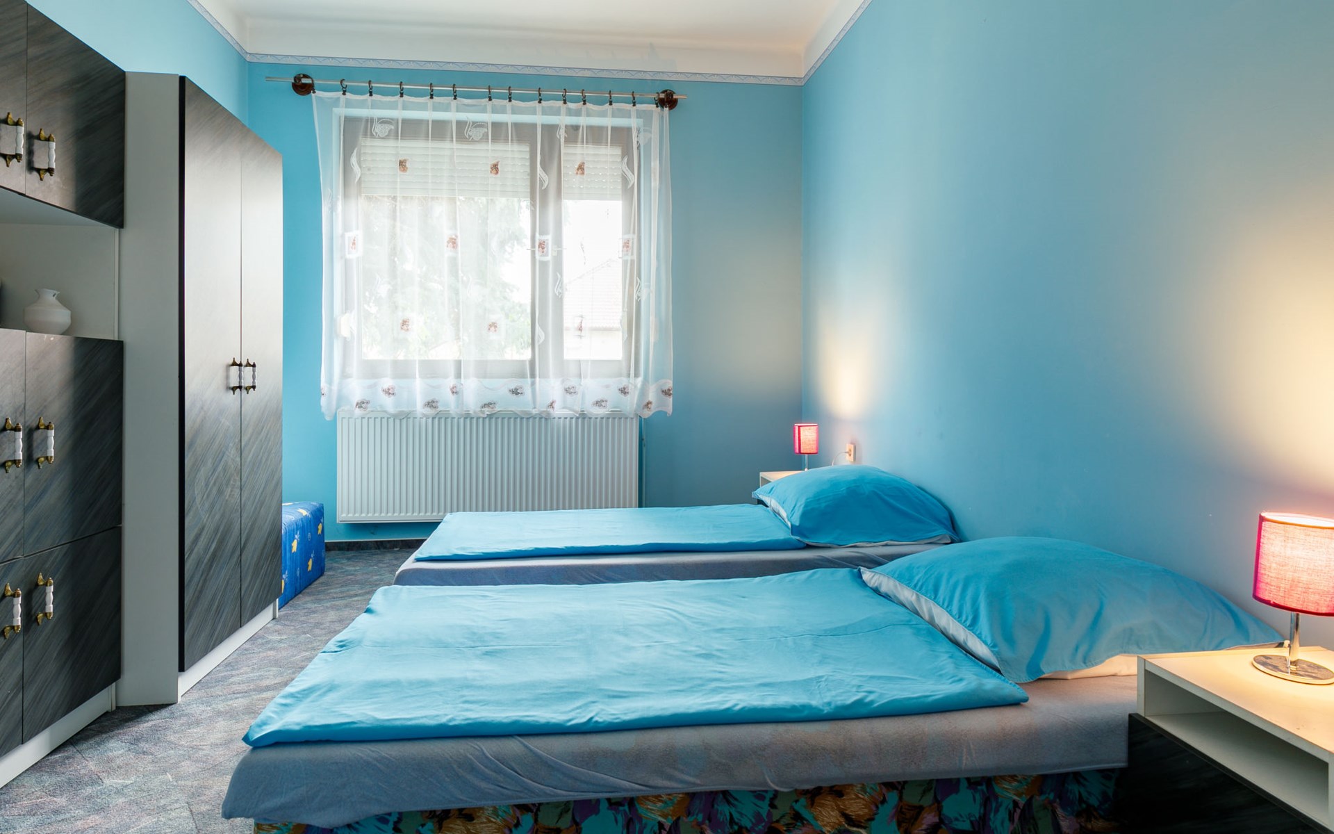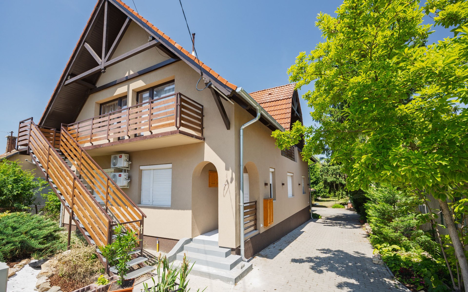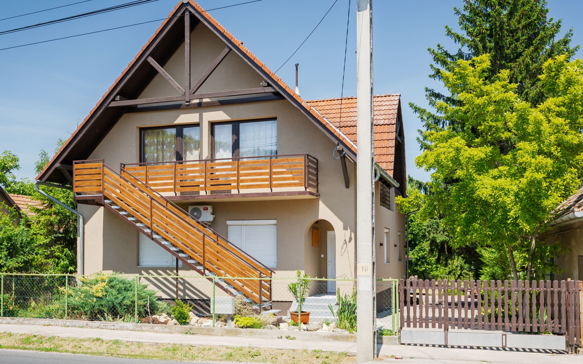 Balatonlelle 40 km van Siófok: Gezellige eengezinswoning "May", gerenoveerd in 2021. In de plaats, 1.6 km van het meer, 1.7 km van het strand. Voor alleengebruik: terrein 600 m2 (omheind), groot tuin met gazon en bomen. Terras (20 m2), tuinmeubelen, barbecue, stookplaats. In het huis: Internet (WiFi), air-conditioning. Supermarkt 1.5 km, restaurant 1.5 km, bakkerij 1.3 km, fietsverhuur 1.5 km, bushalte 1.5 km, treinstation 1.5 km, grasstrand 2.4 km, thermaalbad "Igal" 37 km. Jachthaven 2 km, surfschool 2 km, tennis 2 km, manege 1.4 km, fietspad 1.5 km, kinderspeelplaats 1 km. Attracties in de buurt: Balatonlelle Theme Park 3 km, Balatonlelle Giant Wheel 3 km, Rádpuszta gastronomic experience farm 9 km, Kereki Dino Park 27 km, Balatonlelle wine week 2 km, Konyári winery 4 km.