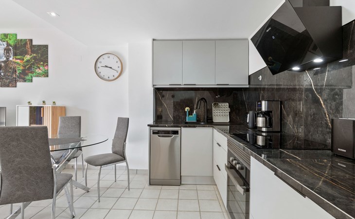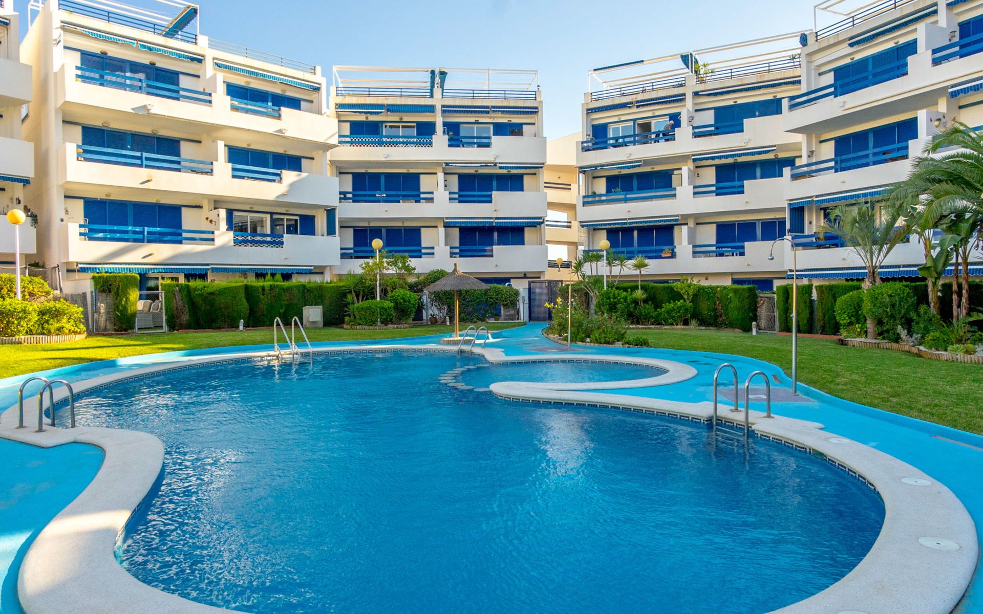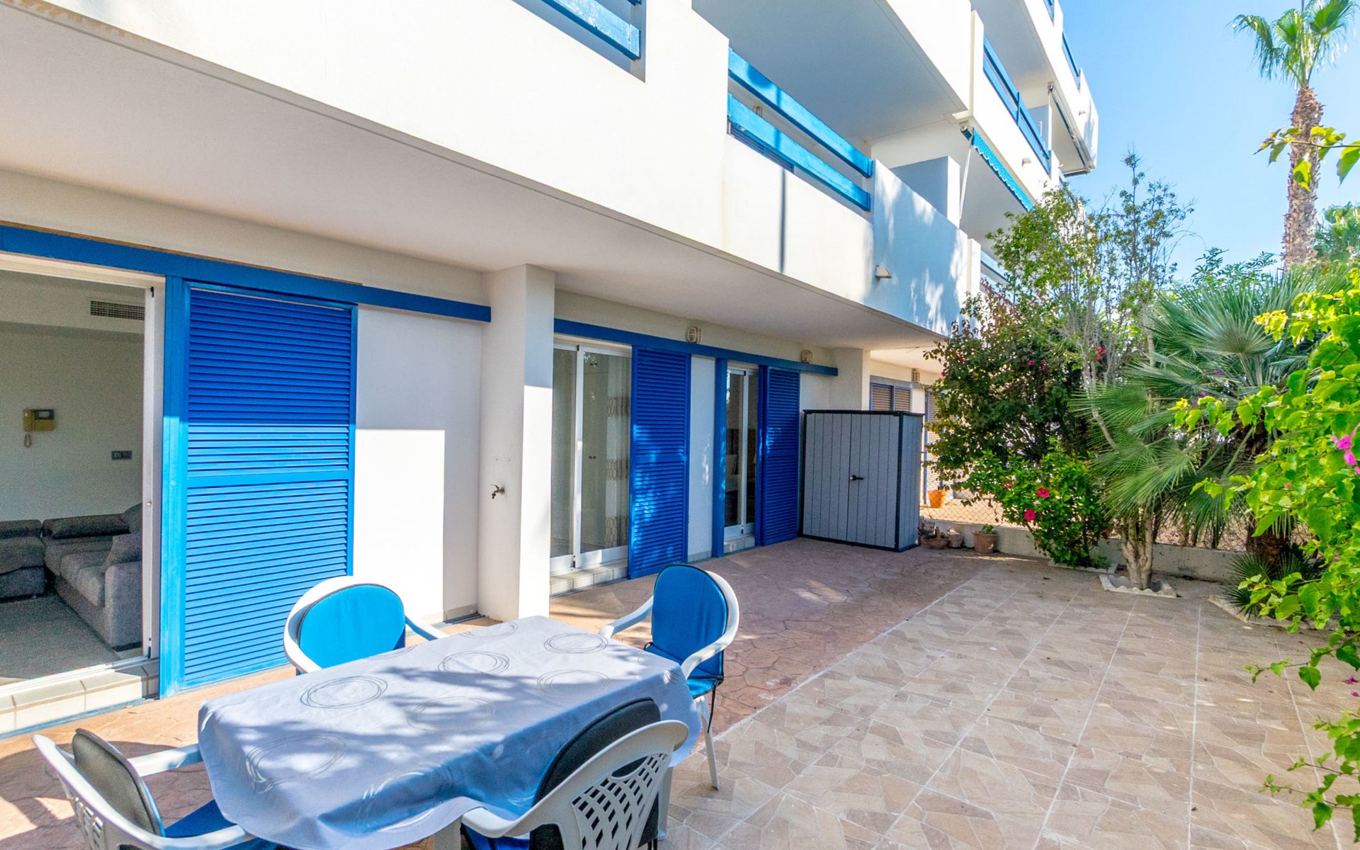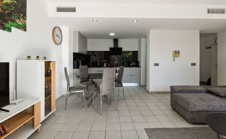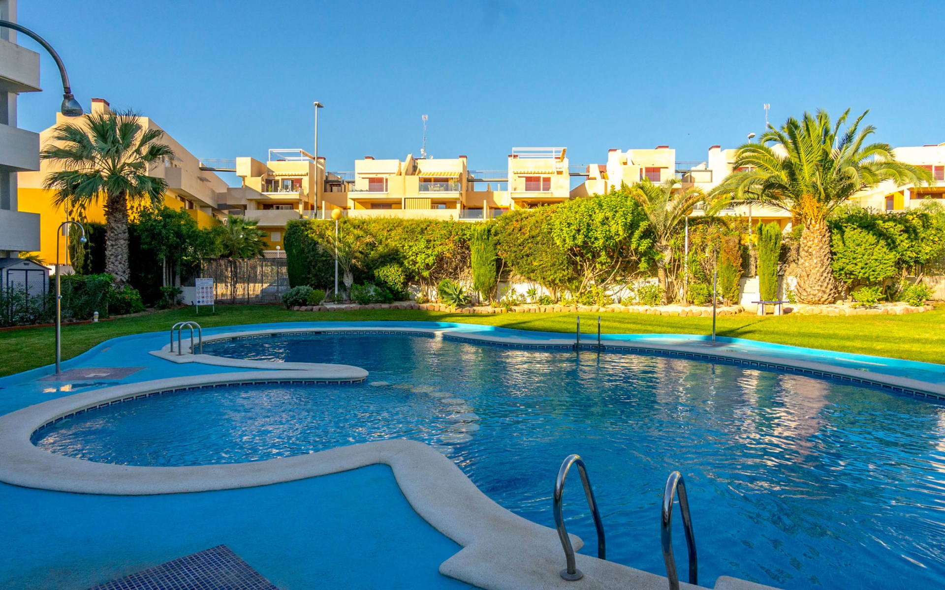 Mooi flatgebouw "Las Terrazas", van 3 verdiepingen. 2 km van het centrum van La Zenia, 8 km van het centrum van Torrevieja, 300 m van zee, 300 m van het strand. Voor medegebruik: terrein (omheind), ligweide, mooie tuin ter ontspanning, openluchtzwembad (16 x 7 m, seizoensgebonden beschikbaarheid: 01.Jan. - 31.Dec.). Kinderzwembad, buitendouche. Voor alleengebruik: terras. Levensmiddelenwinkel, supermarkt 210 m, winkelcentrum 300 m, restaurant, bar, café 150 m, bushalte 300 m, zandstrand "Playa Flamenca" 1 km. Jachthaven 4 km, jachthaven 4 km, golfterrein (12 holes) 5 km. De eigenaar accepteert geen jeugdgroepen.
