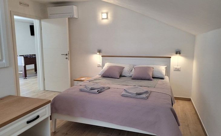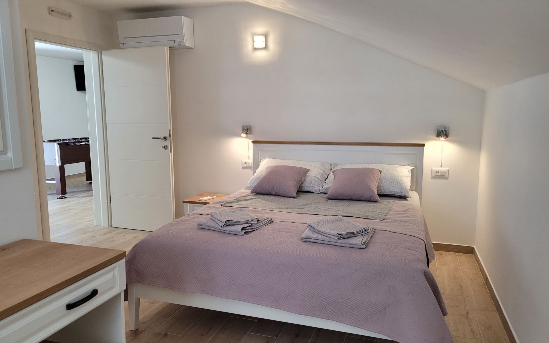 Eengezinswoning "Kevin", van 2 verdiepingen. 200 m van het centrum, 7 km van het centrum van Orebic, 200 m van zee, 200 m van het strand. Voor medegebruik: terrein 4.000 m2 (omheind) met gazon en bomen, boomgaard, openluchtzwembad hoekig (9 x 4 m, 140 cm diepte, seizoensgebonden beschikbaarheid: 13.Apr. - 21.Sep.) met trap. Buitendouche. In het huis: internetaansluiting, wasmachine. Parkeerplaats bij het huis op het terrein. Winkel 800 m, bushalte 6.6 km, kiezelstrand 200 m. Groepen jongeren uitsluitend op aanvraag. Op het terrein: boccia-baan. Bij de huiseigenaar te huur (extra): motorboot 4 m. Op hetzelfde terrein bevinden zich ook de huizen HR8035.100, HR8035.103 en HR8035.105. Duikcentrum met duikschool in Orebić, 8km.