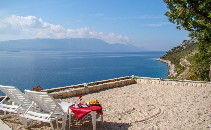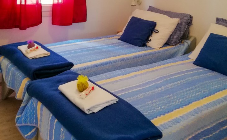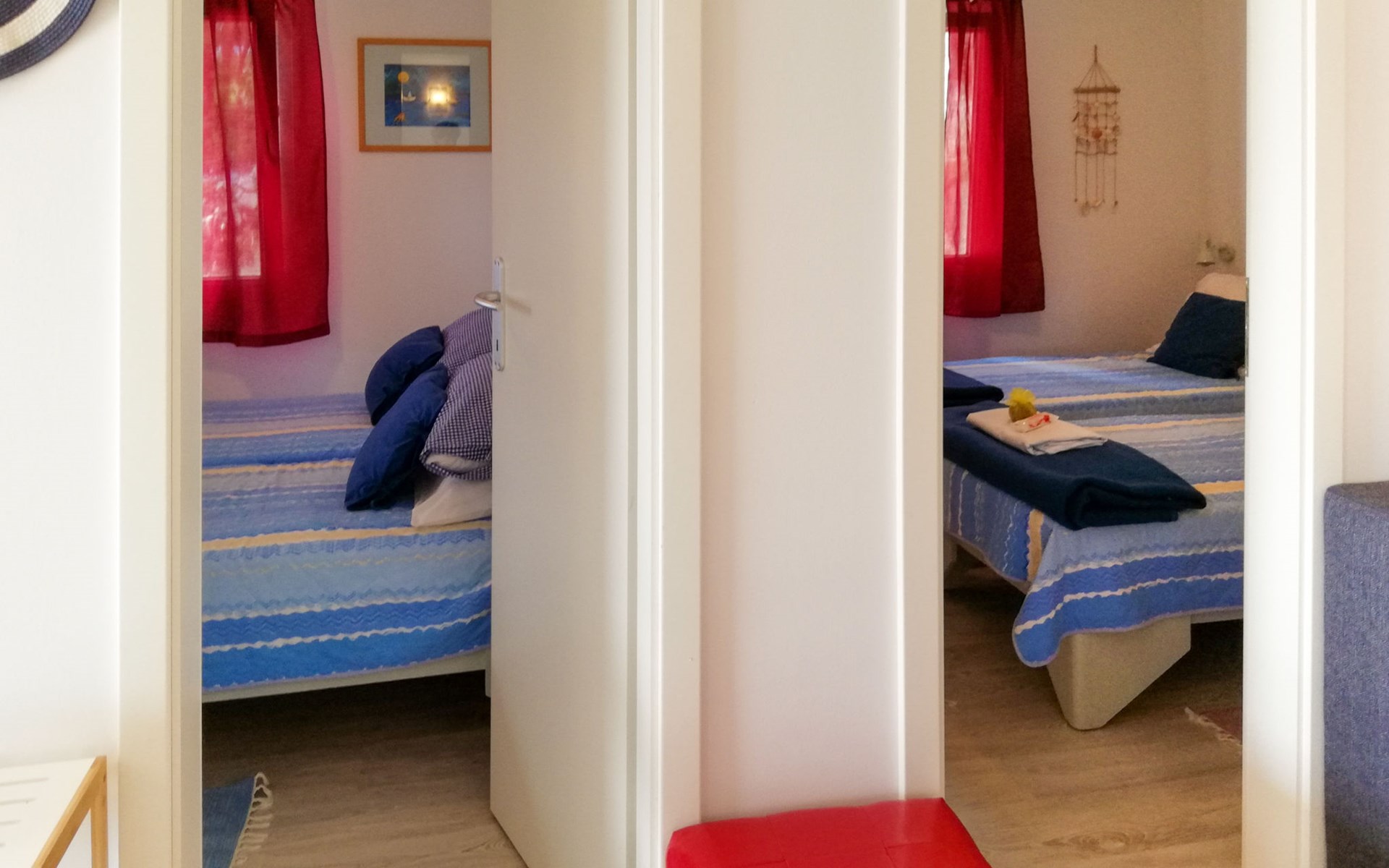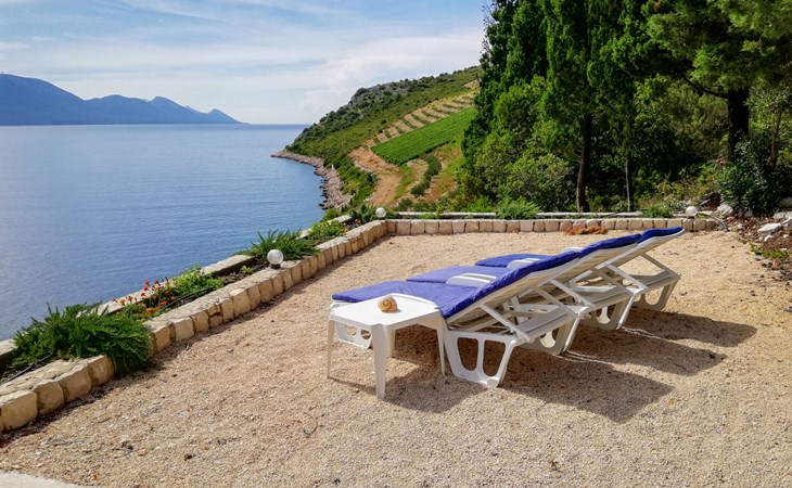 Mobilhome "Marica", omgeven door wijngaarden. 7 km van het centrum van Komarna, geïsoleerde, rustige, zonnige ligging tegen een helling, 80 m van zee, 80 m van het strand. Voor alleengebruik: hot tub, terras (20 m2), tuinmeubelen, barbecue. In het huis: internetaansluiting, wasmachine. 980 m lange toegangsweg (onverharde weg). Parkeerplaats bij het huis. Supermarkt 11 km, restaurant 7 km, bushalte 3.2 km, kiezelstrand 80 m. Voor alleengebruik:buitenkeuken (5-pits kookplaat, afwasmachine).