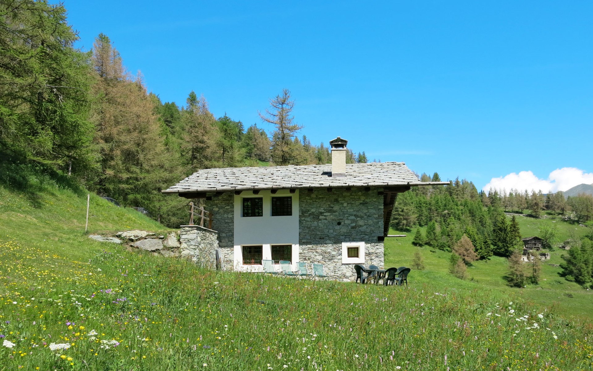 Gezellig chalet "Casot Pra La Funt", 1.650 m boven zeeniveau. 8 km van het centrum van Sampeyre, 20 km van het centrum van Casteldelfino, 43 km van het centrum van Saluzzo, geïsoleerde ligging tegen een helling. Voor alleengebruik: terrein 500 m2 met weide. 9 km lange smalle toegangsweg (bergweg). Trappenweg naar het huis. Parkeerplaats op het terrein. Supermarkt 8 km, bushalte 8.4 km, treinstation "Costigliole di Saluzzo" 35 km. Wandelroutes 20 m vanaf het huis. Dieren in de buurt.