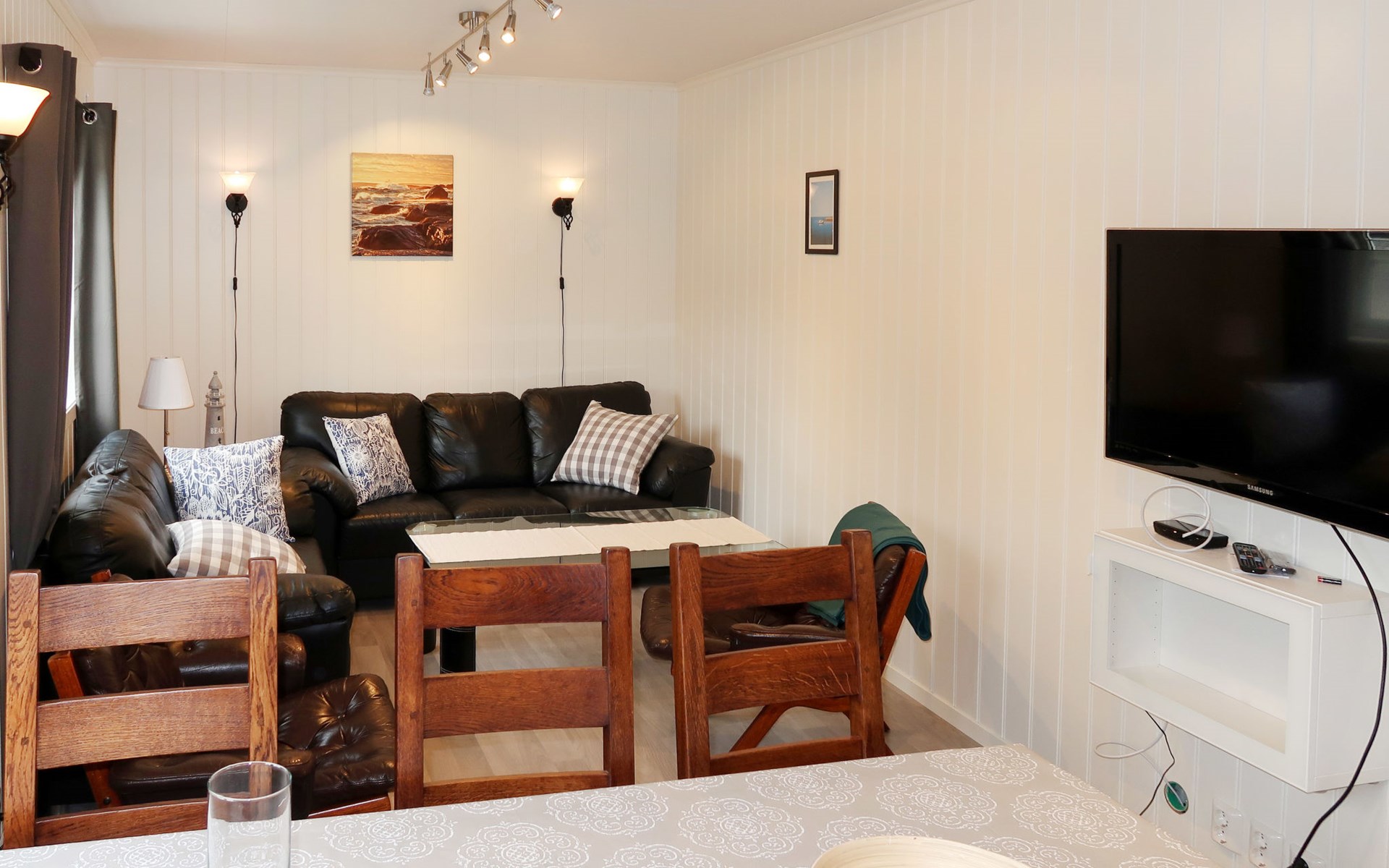Gecertificeerde vissershuis (18kg visvangst toegestaan) "Nesjevik", 5 m boven zeeniveau. 12 km van het centrum van Leirvik i Sogn, 30 km van het centrum van Lavik, 90 km van het centrum van Førde, 70 m van zee, 70 m van de fjord, directe toegang tot het strand. Voor medegebruik: wild terrein. Visverwerkingsplaats. Motorboot (op bestelling), parkeerplaats op het terrein. Winkel 12 km, bushalte "Nesje" 950 m, station "Bergen" 120 km, veerboot "Bergen" 120 km. Vismogelijkheden 80 m. In dit complex zijn verder 3 huizen te huur.