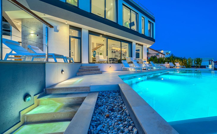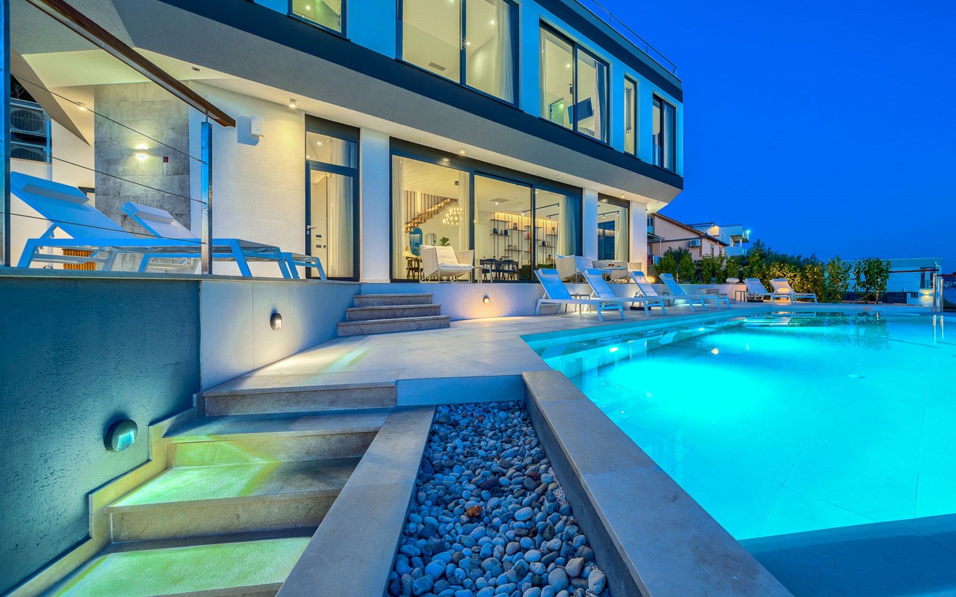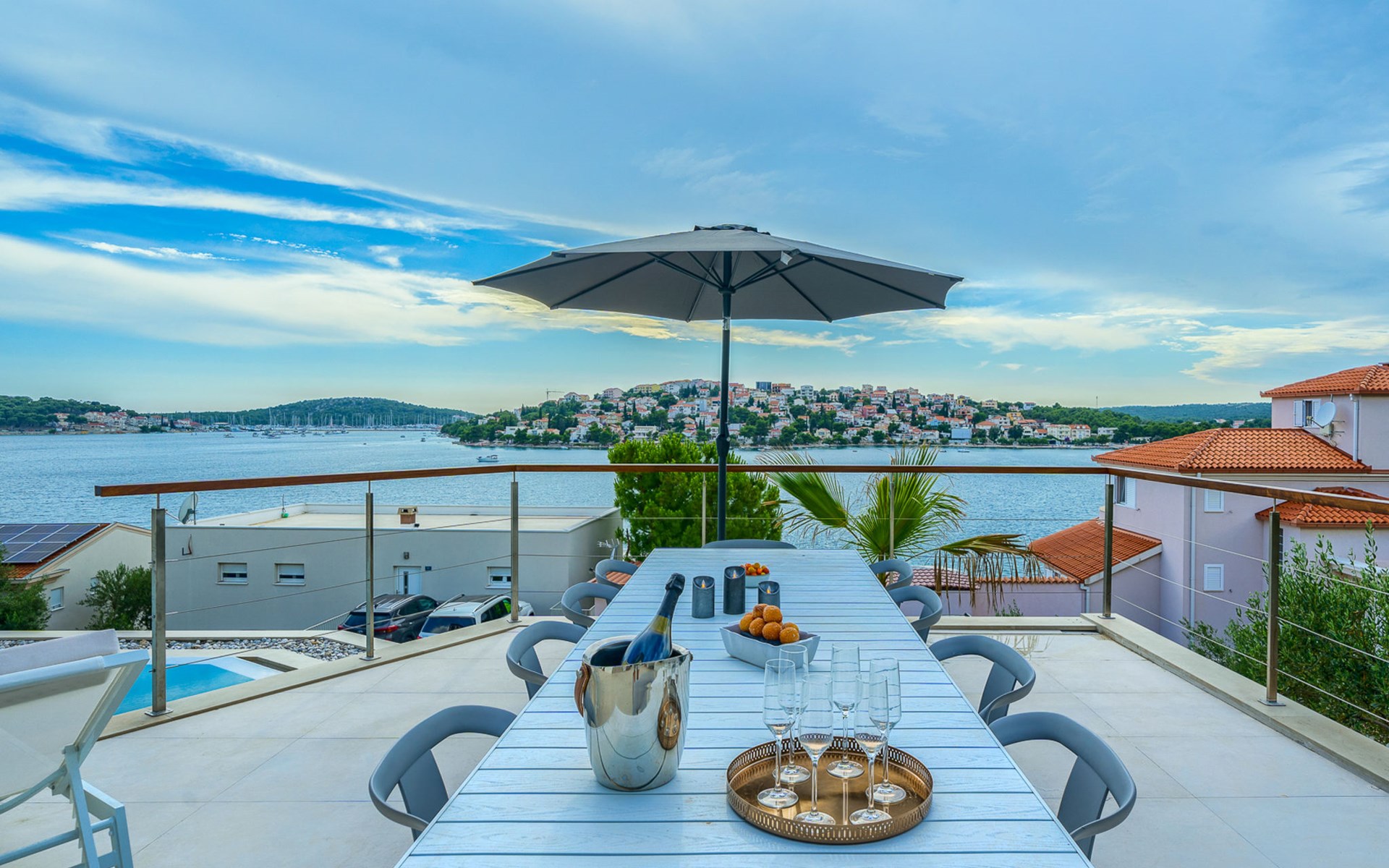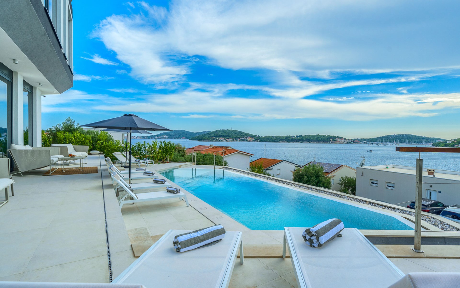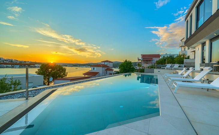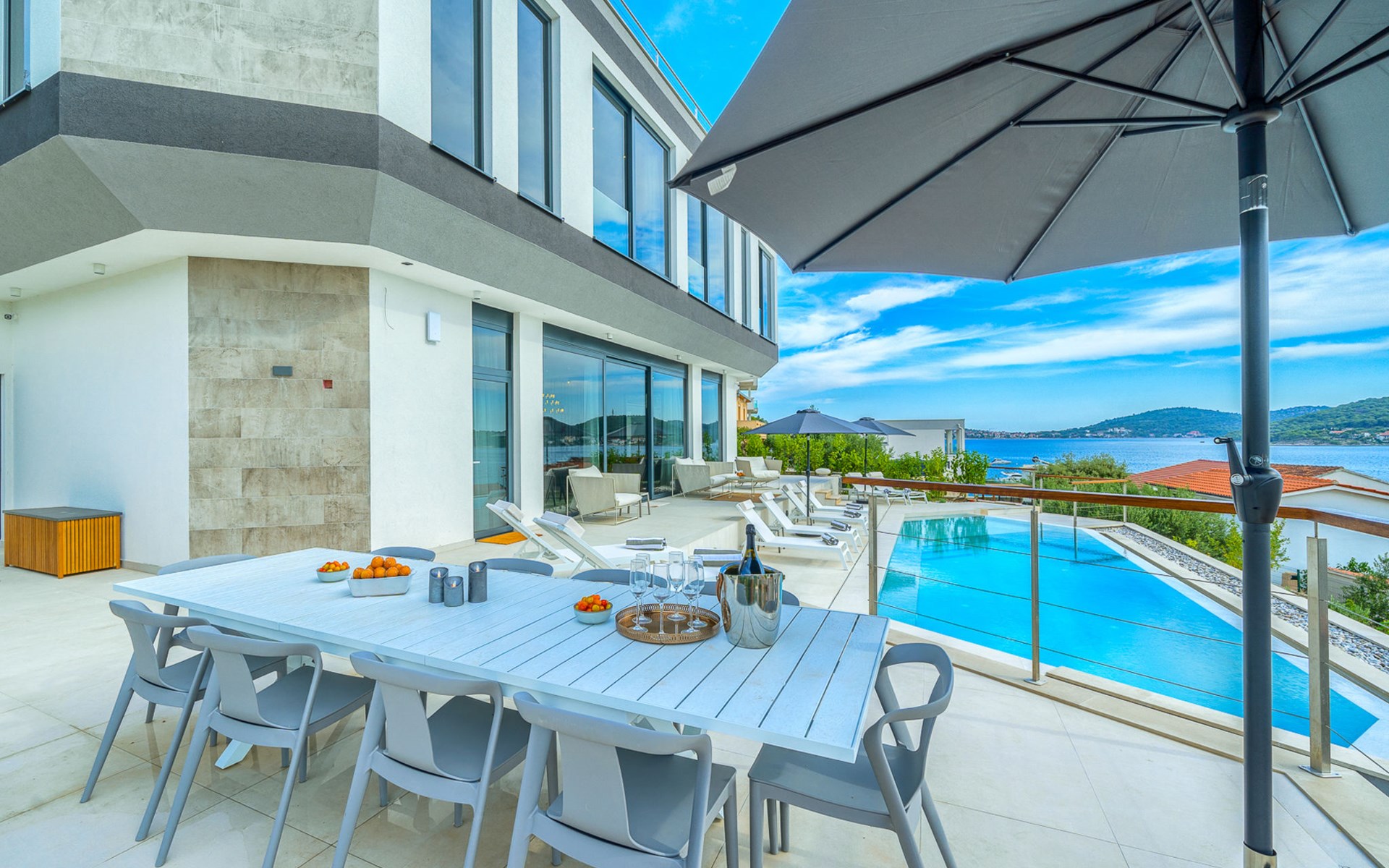 Villa "Allina", van 2 verdiepingen, vrijstaand. Zatoglav, 5 km van het centrum van Rogoznica, rustige, zonnige, verhoogde ligging, 50 m van zee, 180 m van het strand, op het westen. Voor alleengebruik: terrein 750 m2, openluchtzwembad hoekig (50 m2, 150 cm diepte, seizoensgebonden beschikbaarheid: 01.Mei. - 01.Okt.). Buitendouche, terras (15 m2), barbecue. In het huis: internetaansluiting, Internet (WiFi), wasmachine, droger. Parkeerplaats (voor 3 auto's) bij het huis op het terrein. Winkel 4 km, restaurant 5 km, bakkerij 4 km, bushalte 1.5 km, rotsstrand 180 m. Jachthaven 5 km.