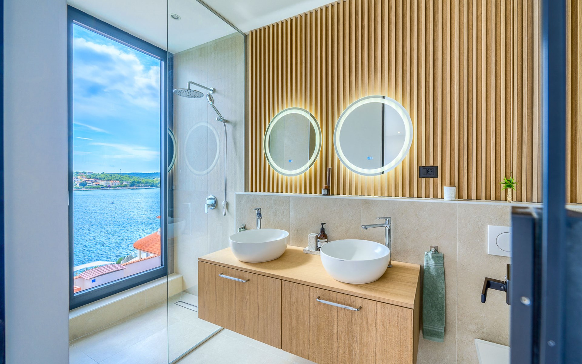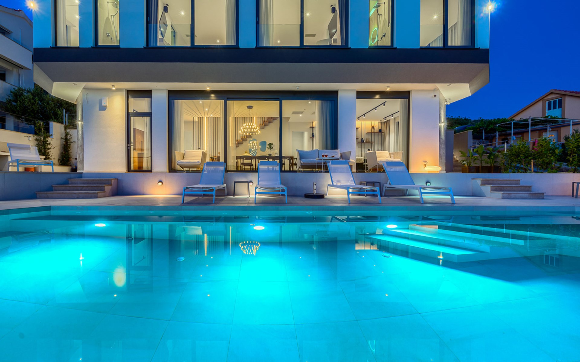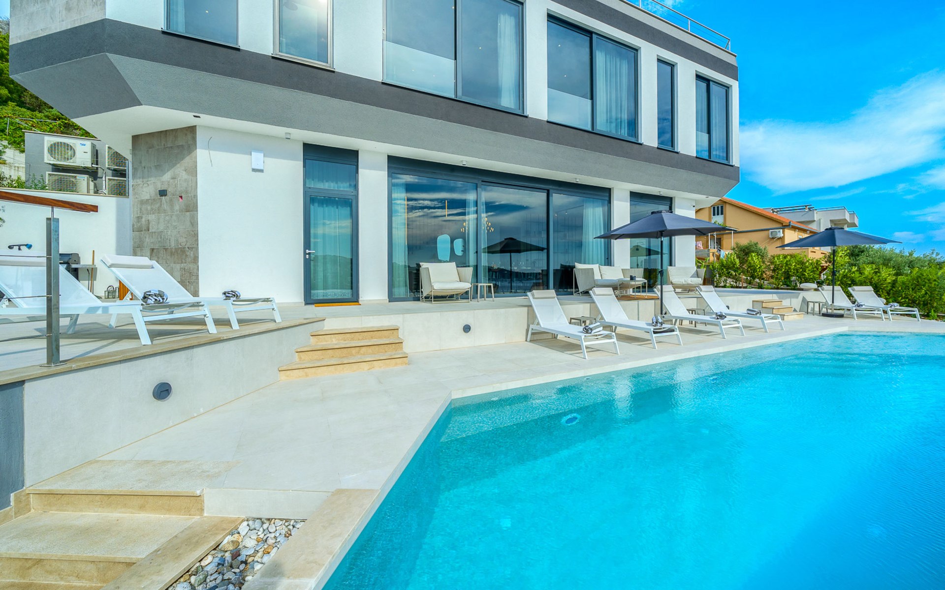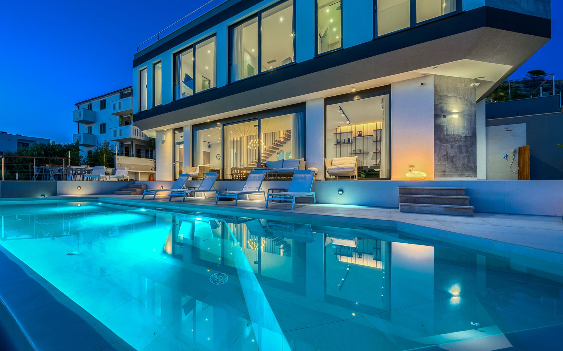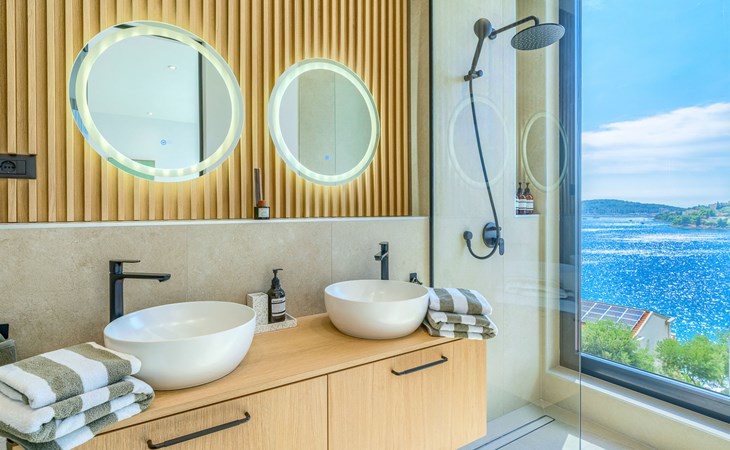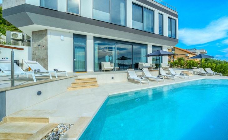 Villa "Allina", van 2 verdiepingen, vrijstaand. Zatoglav, 5 km van het centrum van Rogoznica, rustige, zonnige, verhoogde ligging, 50 m van zee, 180 m van het strand, op het westen. Voor alleengebruik: terrein 750 m2, openluchtzwembad hoekig (50 m2, 150 cm diepte, seizoensgebonden beschikbaarheid: 01.Mei. - 01.Okt.). Buitendouche, terras (15 m2), barbecue. In het huis: internetaansluiting, Internet (WiFi), wasmachine, droger. Parkeerplaats (voor 3 auto's) bij het huis op het terrein. Winkel 4 km, restaurant 5 km, bakkerij 4 km, bushalte 1.5 km, rotsstrand 180 m. Jachthaven 5 km.