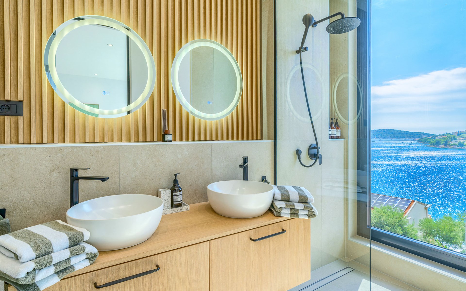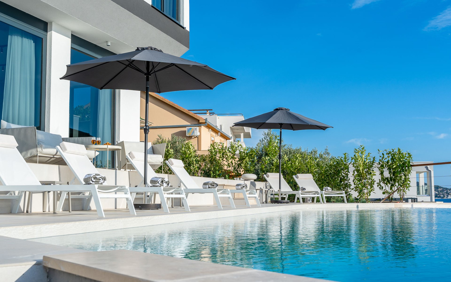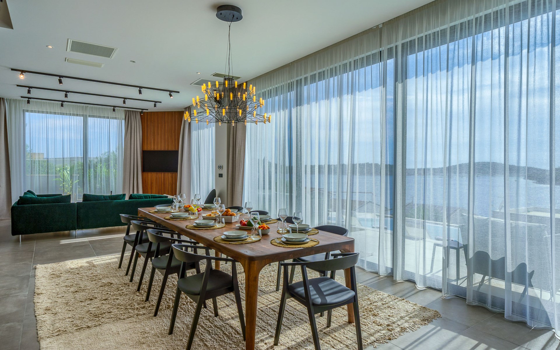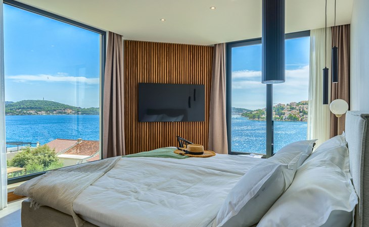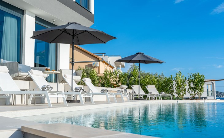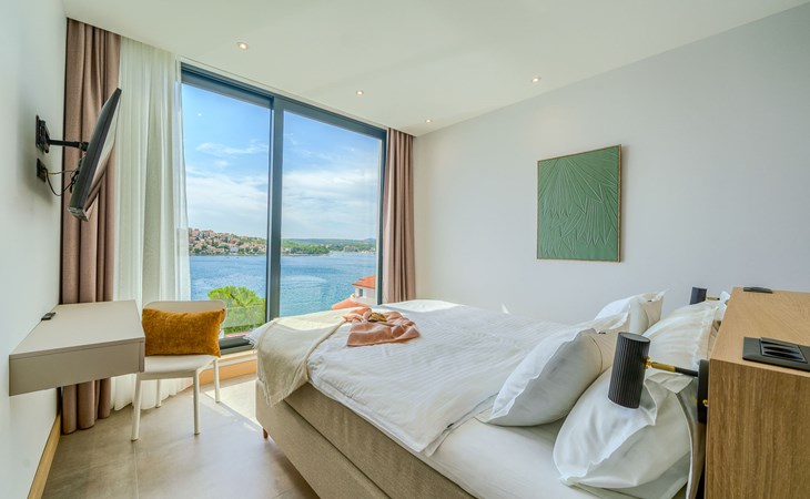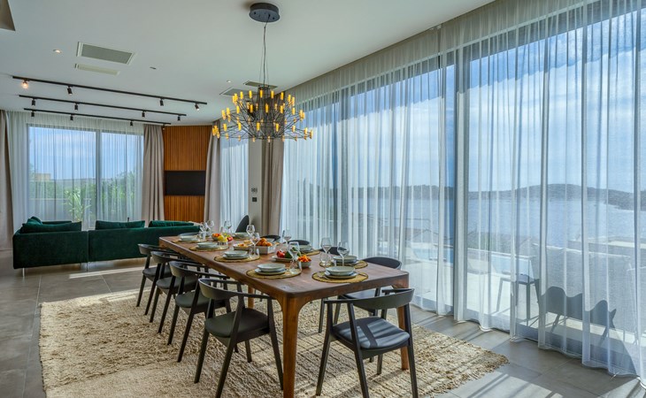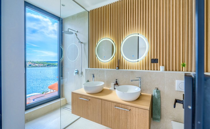 Villa "Allina", van 2 verdiepingen, vrijstaand. Zatoglav, 5 km van het centrum van Rogoznica, rustige, zonnige, verhoogde ligging, 50 m van zee, 180 m van het strand, op het westen. Voor alleengebruik: terrein 750 m2, openluchtzwembad hoekig (50 m2, 150 cm diepte, seizoensgebonden beschikbaarheid: 01.Mei. - 01.Okt.). Buitendouche, terras (15 m2), barbecue. In het huis: internetaansluiting, Internet (WiFi), wasmachine, droger. Parkeerplaats (voor 3 auto's) bij het huis op het terrein. Winkel 4 km, restaurant 5 km, bakkerij 4 km, bushalte 1.5 km, rotsstrand 180 m. Jachthaven 5 km.
