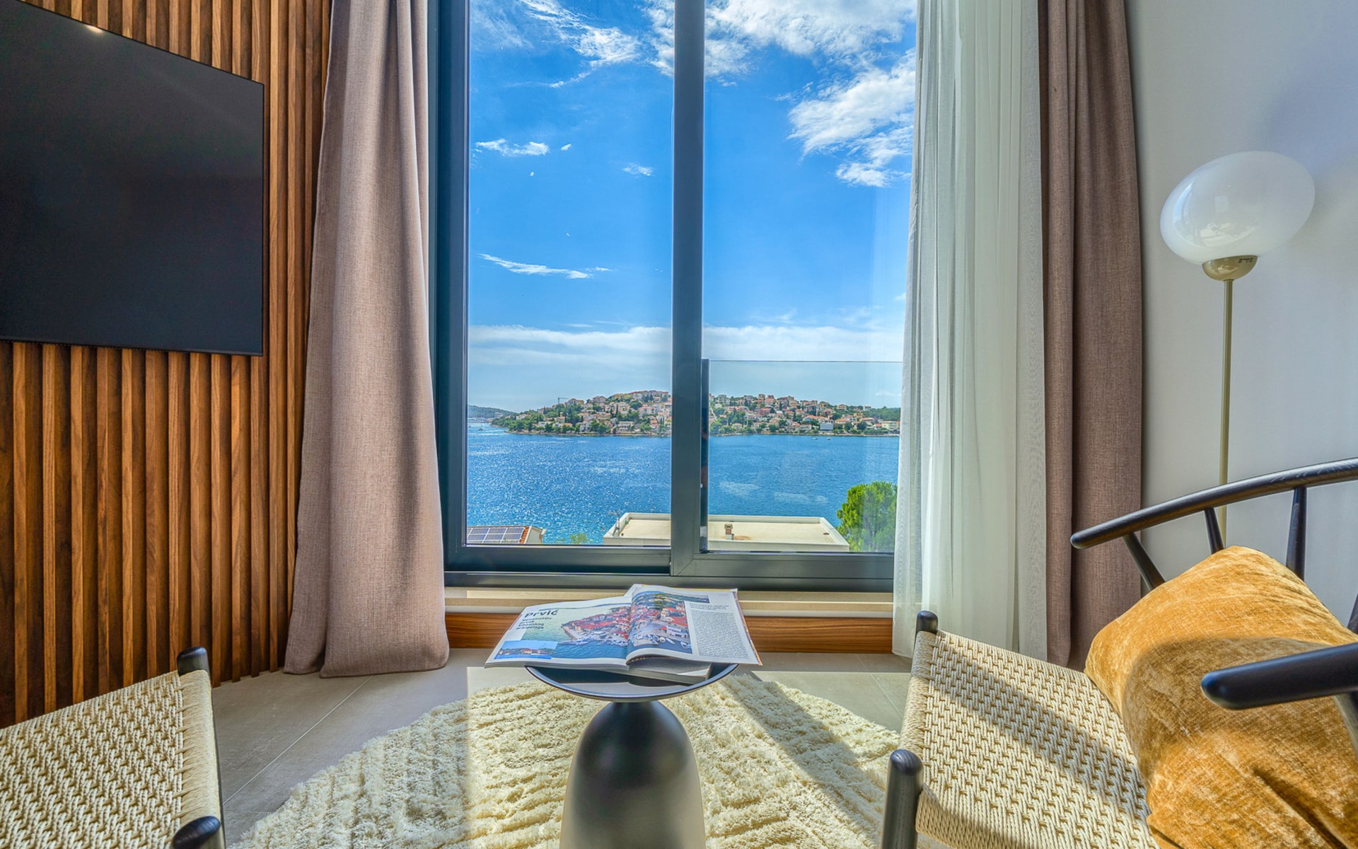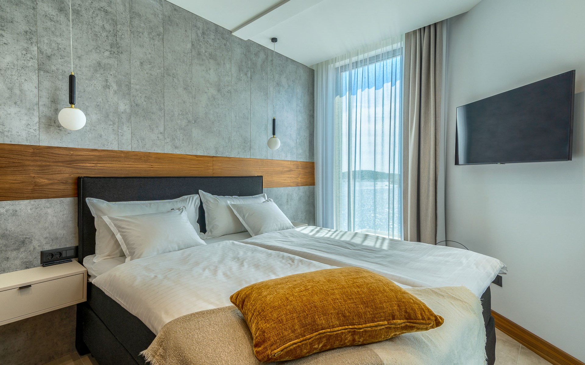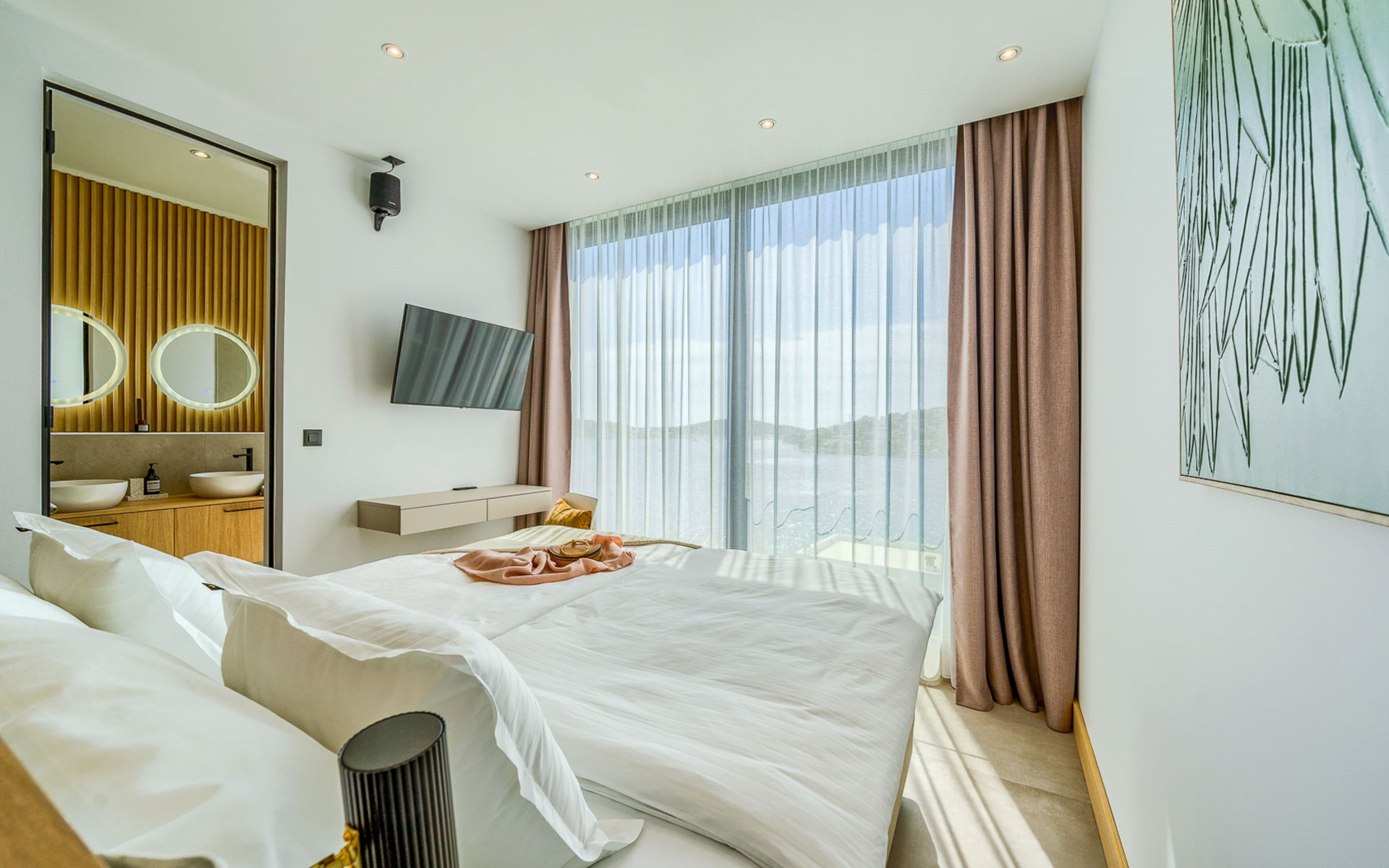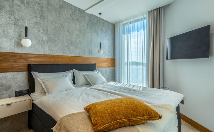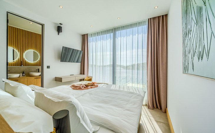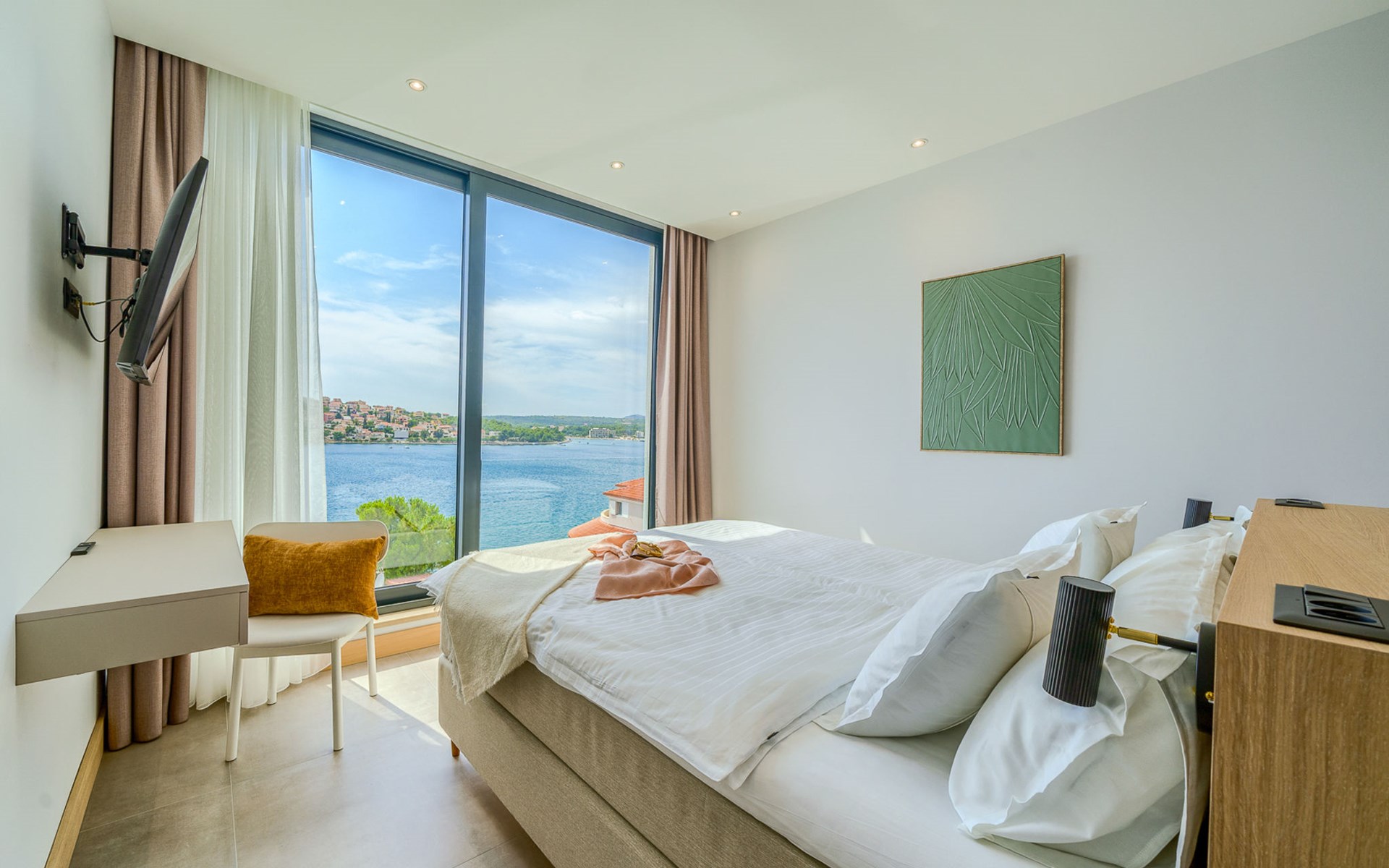 Villa "Allina", van 2 verdiepingen, vrijstaand. Zatoglav, 5 km van het centrum van Rogoznica, rustige, zonnige, verhoogde ligging, 50 m van zee, 180 m van het strand, op het westen. Voor alleengebruik: terrein 750 m2, openluchtzwembad hoekig (50 m2, 150 cm diepte, seizoensgebonden beschikbaarheid: 01.Mei. - 01.Okt.). Buitendouche, terras (15 m2), barbecue. In het huis: internetaansluiting, Internet (WiFi), wasmachine, droger. Parkeerplaats (voor 3 auto's) bij het huis op het terrein. Winkel 4 km, restaurant 5 km, bakkerij 4 km, bushalte 1.5 km, rotsstrand 180 m. Jachthaven 5 km.