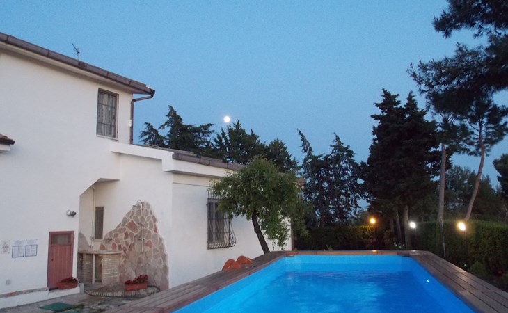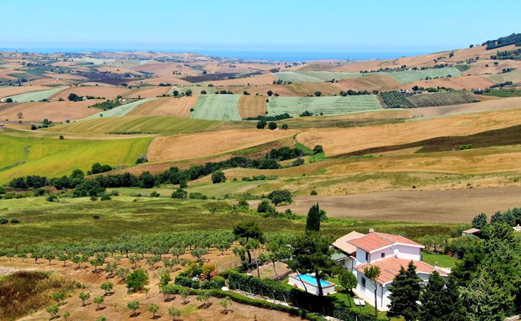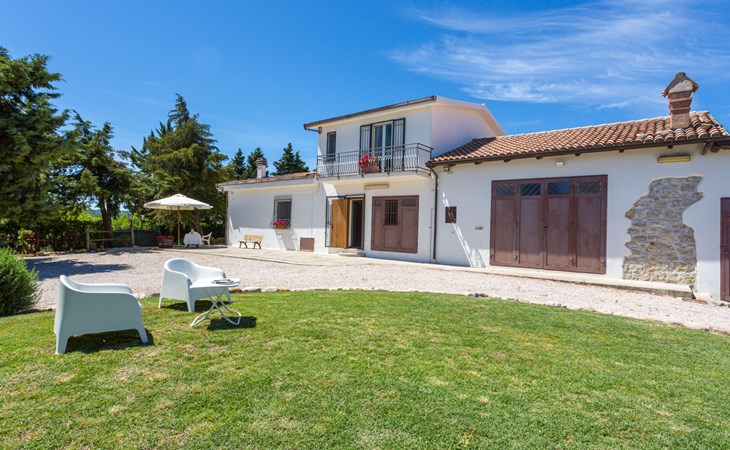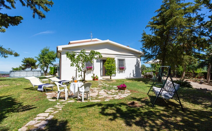 Cottage "Masseria Difesa Grande", omgeven door velden. 6 km van het centrum van Montenero di Bisaccia, 20 km van het centrum van Termoli, 18 km van het centrum van Vasto, geïsoleerde ligging, 12 km van zee. Voor alleengebruik: terrein 2.000 m2 (omheind), verzorgde tuin gazon en bomen, openluchtzwembad (verhoogd) (7 x 3 m, 130 cm diepte, seizoensgebonden beschikbaarheid: 01.Mei. - 15.Okt.). Buitendouche, terras, tuinmeubelen, barbecue, parkeerplaats (voor 5 auto's) op het terrein. Winkel 6 km, bushalte 6 km, treinstation "Termoli" 20 km, zandstrand "Petacciato Marina" 12 km. Auto noodzakelijk.