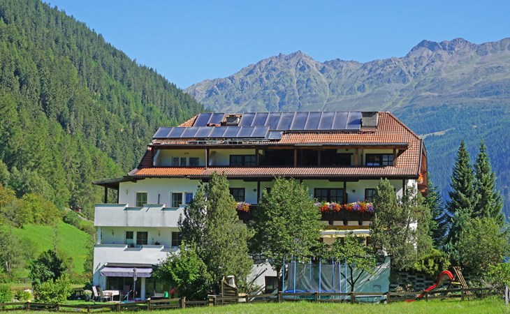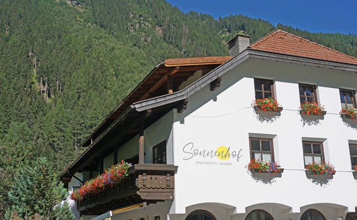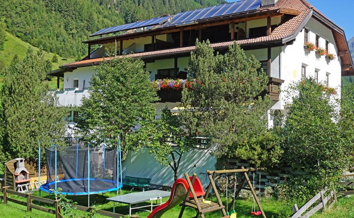 Feichten im Kaunertal: Groot flatgebouw "Sonnenhof", vrijstaand. In de plaats, aan een hoofdweg. Voor medegebruik: kinderspeelplaats. In het huis: receptie, ontbijtruimte, salon, Internet (WiFi), infrarood sauna, trampoline, bergruimte voor fietsen, berging voor ski's, centrale verwarming, skischoendroger. Wissel van linnengoed (extra wissel te betalen). Wissel van handdoeken (extra wissel te betalen). Ontbijt op aanvraag (extra). Toegangsweg tot aan het huis. Parkeerplaats bij het huis. Oplaadstation. Supermarkt 100 m, restaurant 50 m, bushalte 10 m, overdekt zwembad 50 m. Ski faciliteiten 10 km, skiverhuur 100 m, skibushalte 10 m, skischool, rodelbaan 200 m, langlaufloipe 20 m. Bekende skigebieden kunnen gemakkelijk worden bereikt: Kaunertaler Gletscher 21 km, Serfaus-Fiss 14 km, Fendels 10 km. Wandelgebied Naturpark Kaunergrat, Verpeil, Klettersteig Verpelischlucht. Gratis skibus. Gratis skibus naar het skigebied Fendels (Ried) und Kaunertaler Gletscher.