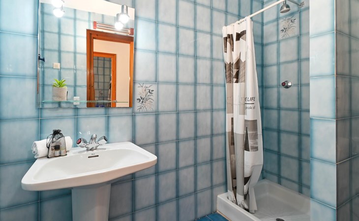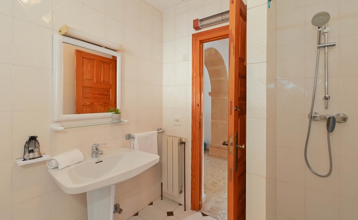 - eigen badkamer met enkele wastafel, bad, douche en toilet