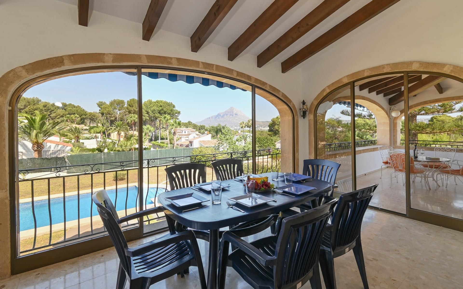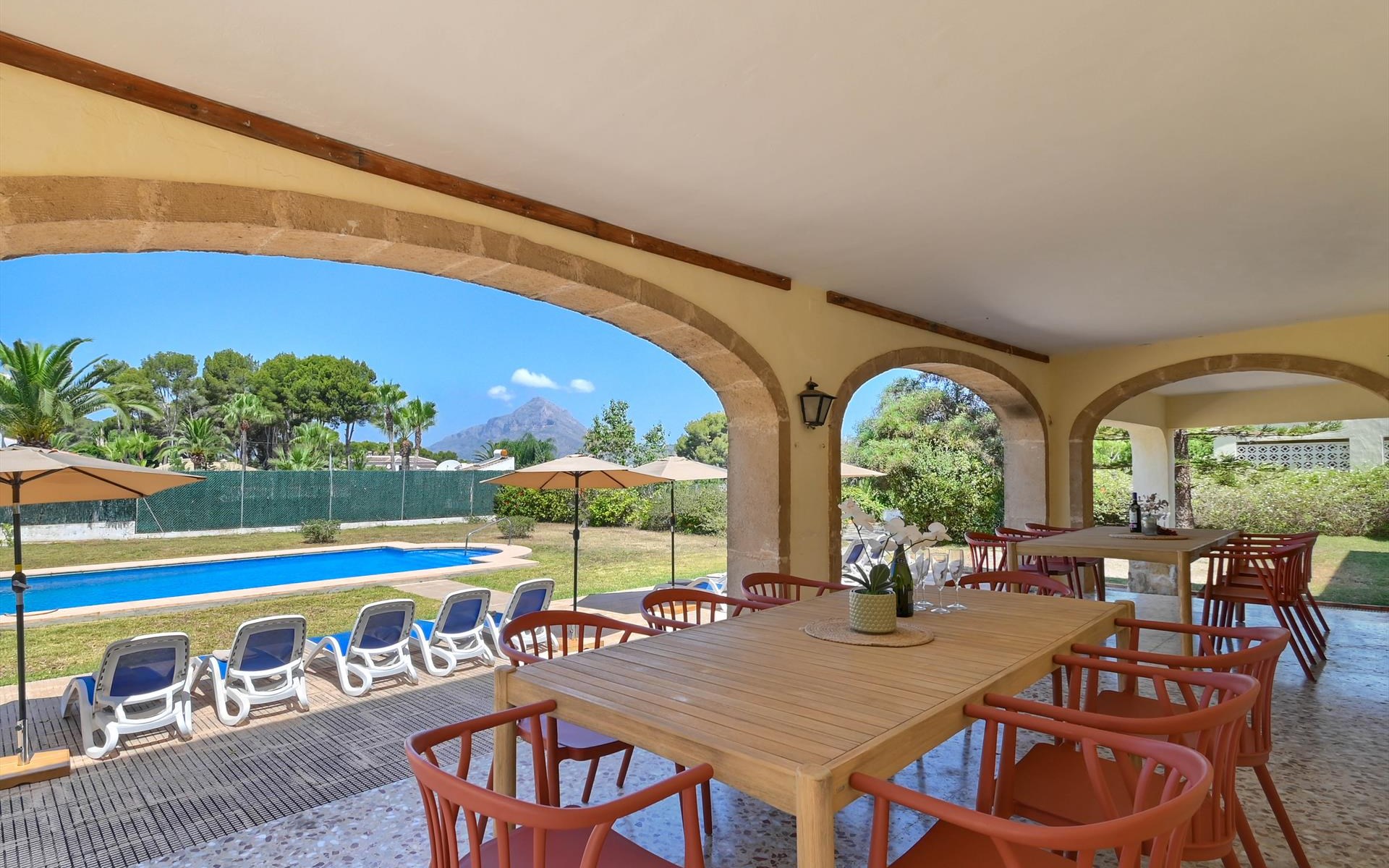 Grote en comfortabele vakantiewoning in Javea, Costa Blanca, Spanje met privézwembad voor 8 personen. Het huis is gelegen in een residentieel strandgebied en ligt op 2 km van El Arenal, het strand van Javea.