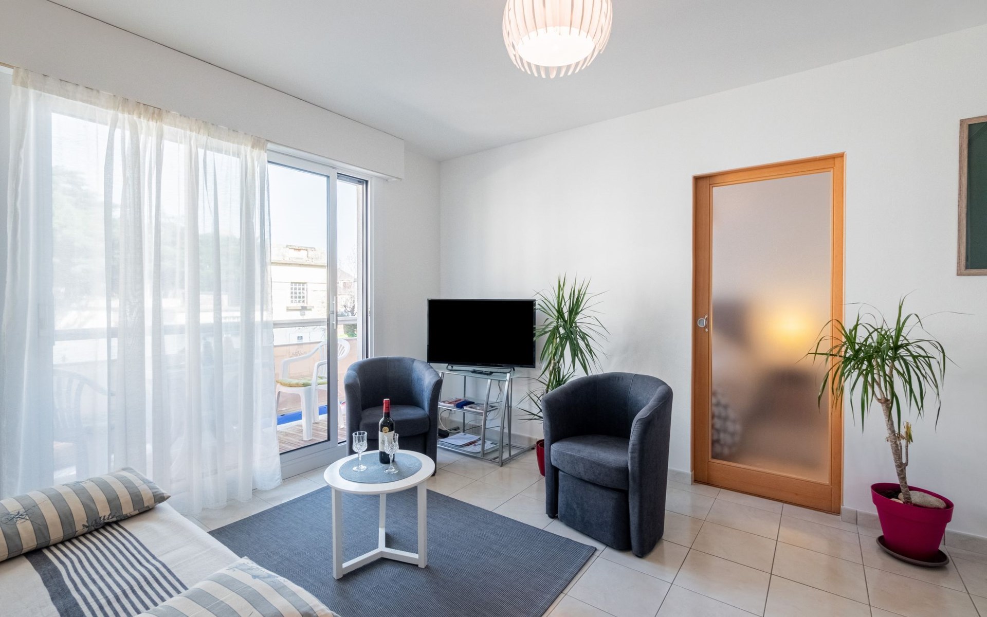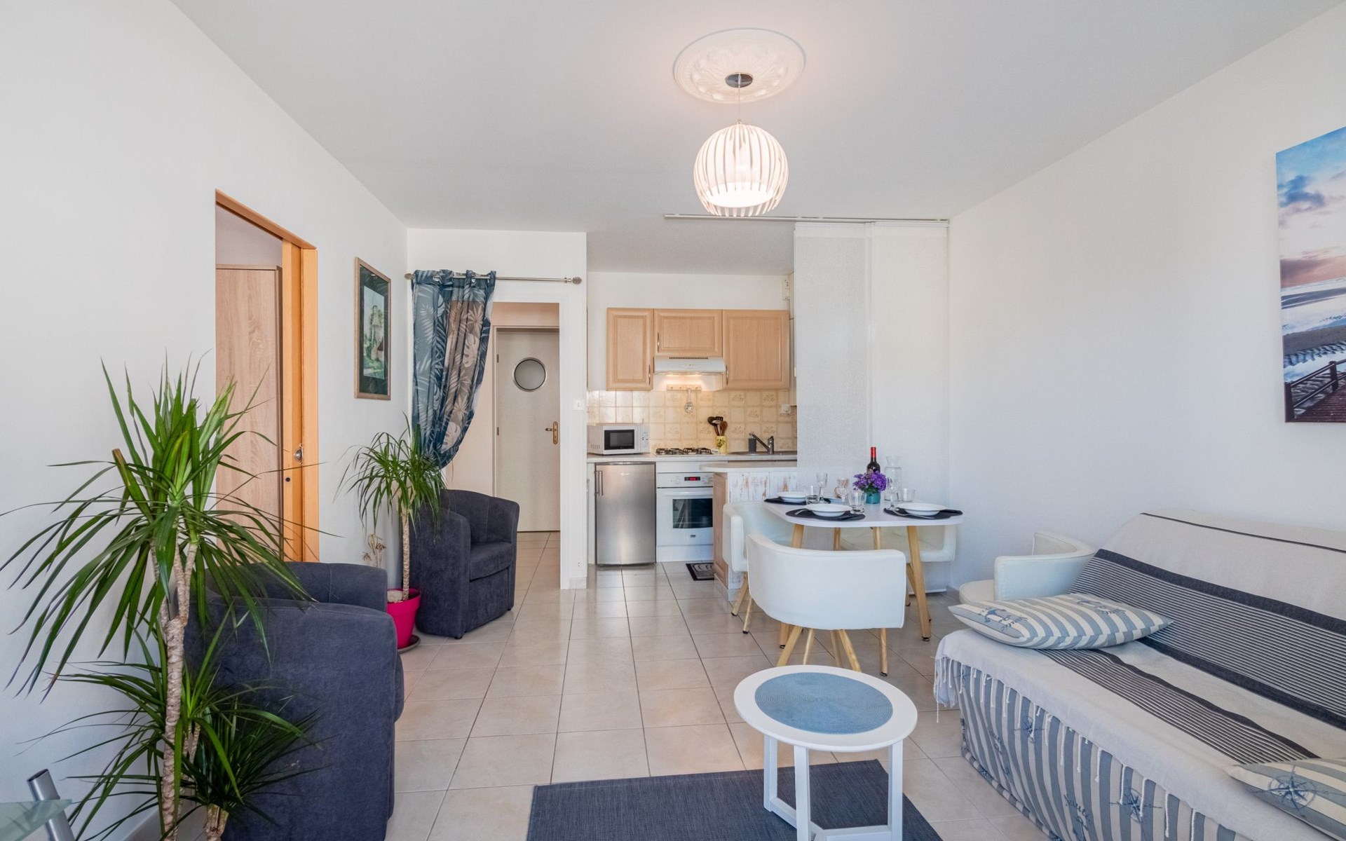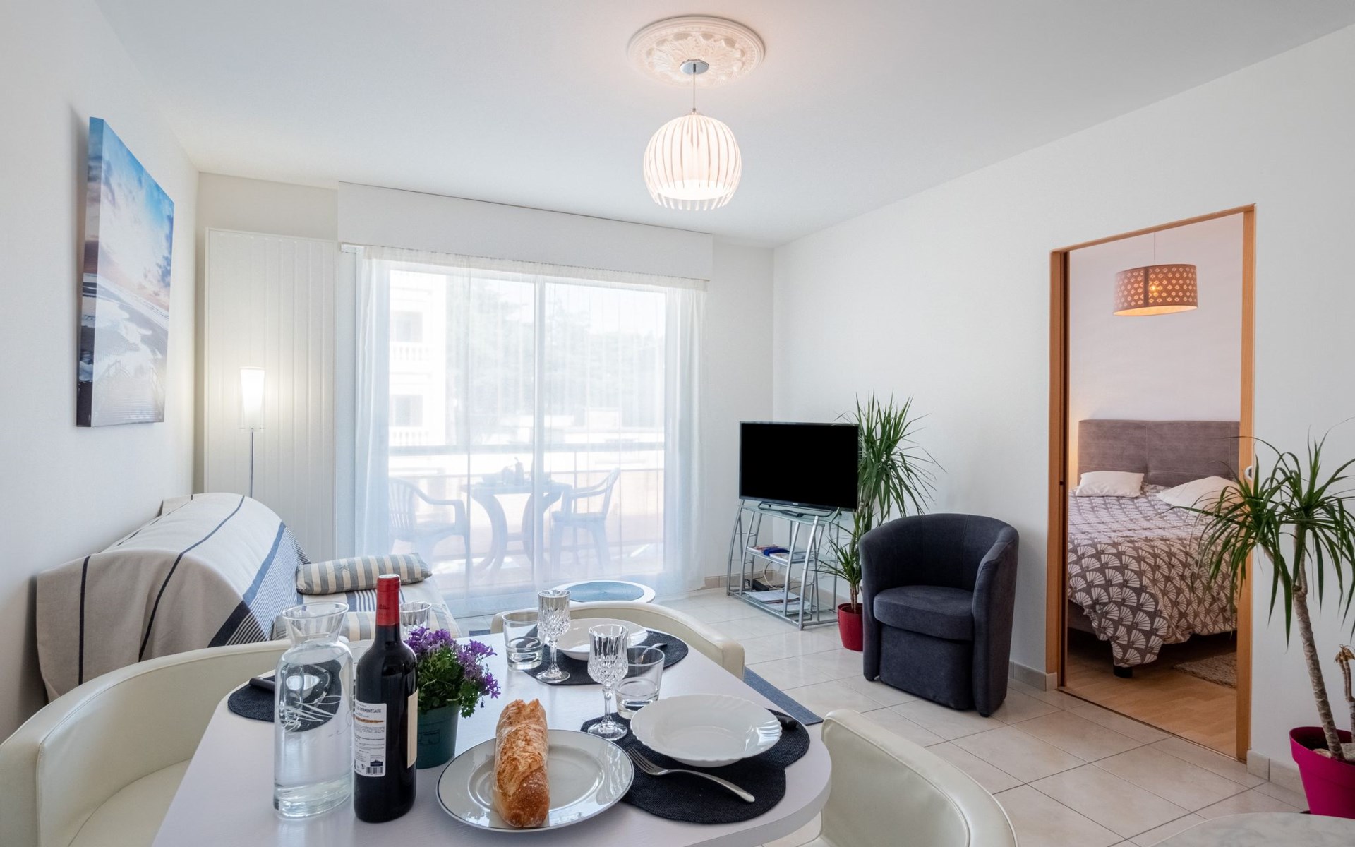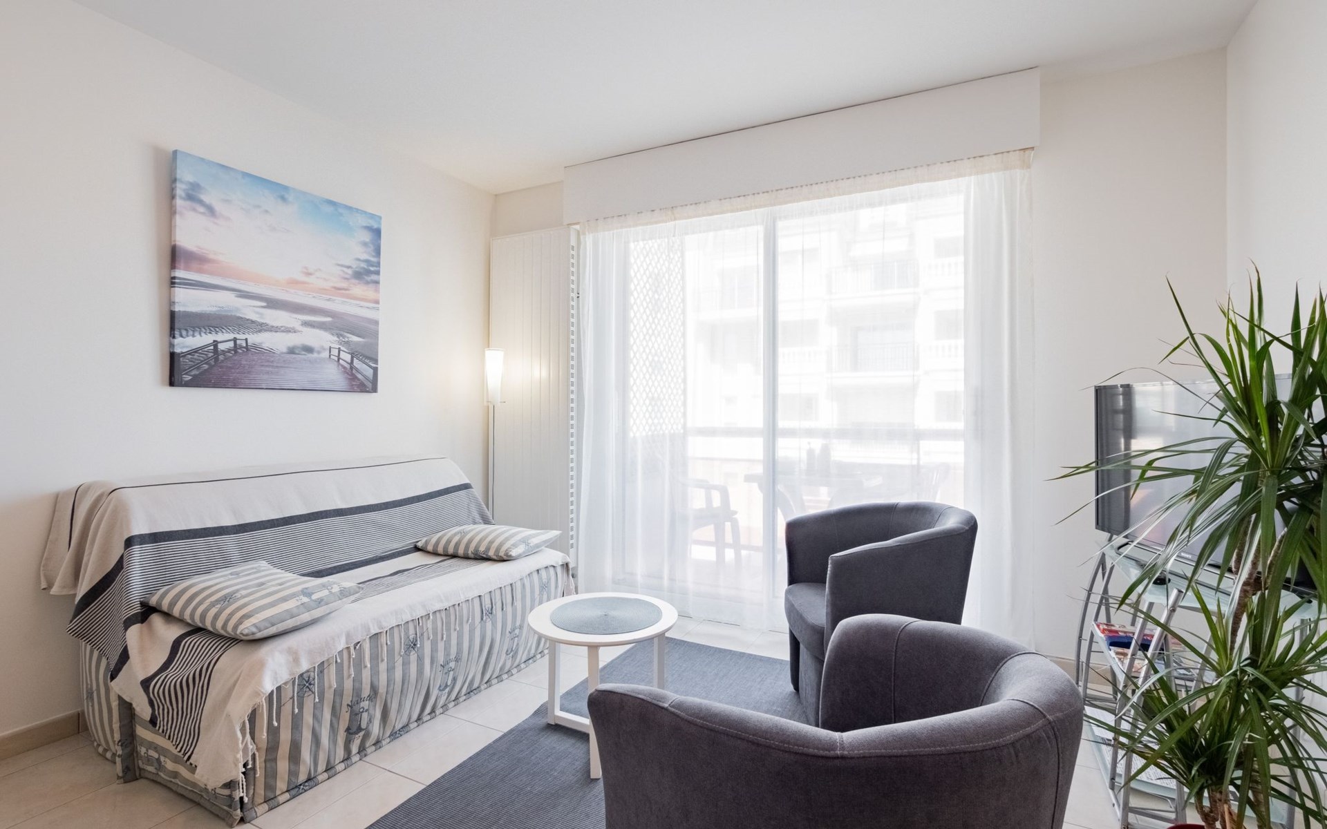 Flatgebouw "L'Hippocampe", 1 m boven zeeniveau, van 4 verdiepingen. 700 m van het centrum van Les Sables d'Olonne, 250 m van zee. In het huis: lift. Eigen garage. Winkel, supermarkt 300 m, bushalte 10 m, treinstation "Les Sables d'Olonne" 1 km, zandstrand "La Grande Plage" 400 m, park "Parc des Roses" 250 m, overdekt zwembad 900 m, thermaalbad "Thalassotherapie" 1.5 km. Jachthaven 2.5 km, surfschool 800 m, zeilschool 1.5 km, tennis 1.3 km, kinderspeelplaats 250 m. Attracties in de buurt: Saint Gilles Croix de Vie 30 km, La Tranche sur Mer 38 km, Noirmoutier 65 km, Nantes 95 km.