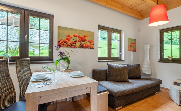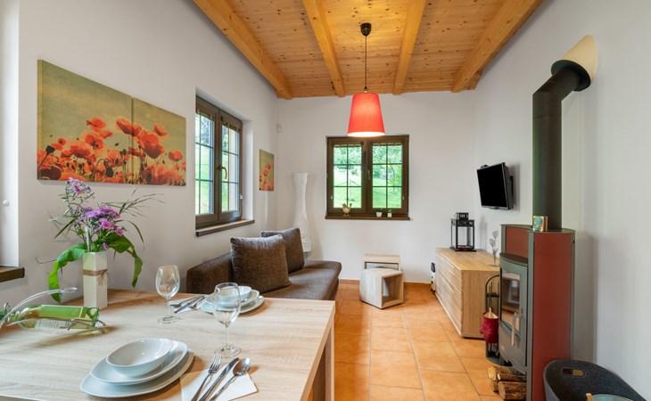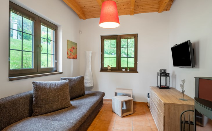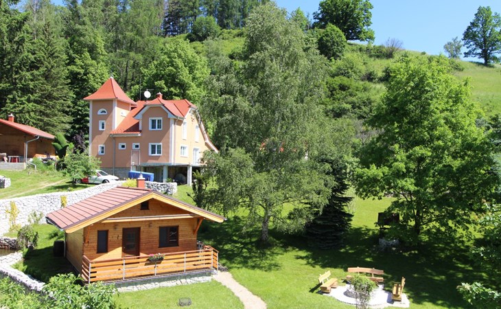 Comfortabel chalet vrijstaand, bouwjaar 2016. 2 huizen in de plaats. Aan de rand van de plaats Bečov nad Teplou, rustige, verhoogde ligging, direct aan een beekje, te midden van groen. Voor medegebruik: terrein (omheind) met gazon, Natuurlijke vijver. Voor alleengebruik: terrein 300 m2. Badminton, terras, tuinmeubelen, barbecue, stookplaats, parkeerplaats op het terrein. Winkel 1 km, restaurant 400 m, bushalte "Bečov n. Teplou, žel.st." 400 m, openluchtzwembad 15 km, overdekt zwembad 20 km. Wandelroutes, vanaf het huis, fietspad 10 m, skilift 20 km, langlaufloipe 18 km. Attracties in de buurt: Hrad a zámek Bečov nad Teplou 900 m, Bečovská Botanická Zahrada 700 m, Hrad Loket 17 km, Klášter Teplá 18 km, Zámek Kynžvart 23 km, Skiareál Mariánky 22 km, Klínovec 50 km. Wandelgebied Karlovy Vary 20 km, Mariánské Lázně 20 km, Františkovy Lázně 45 km. De eigenaar accepteert geen jeugdgroepen. Object referentie: CZ3644.1.1 is gelegen op hetzelfde terrein.