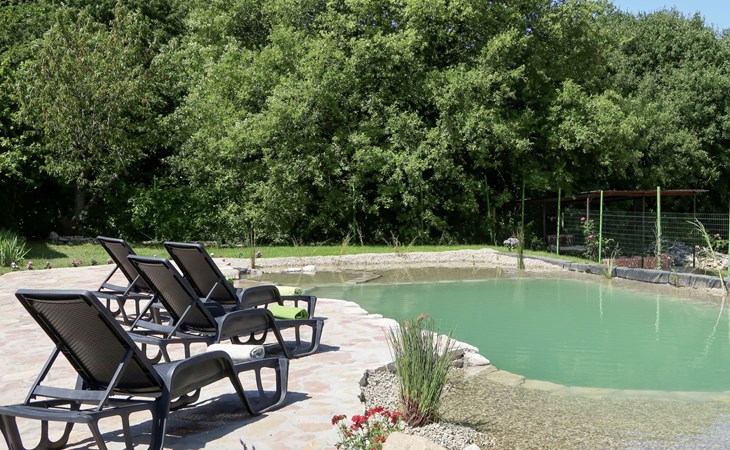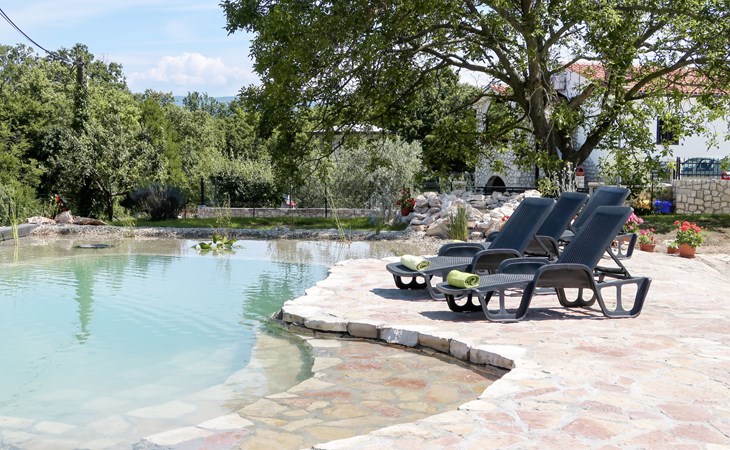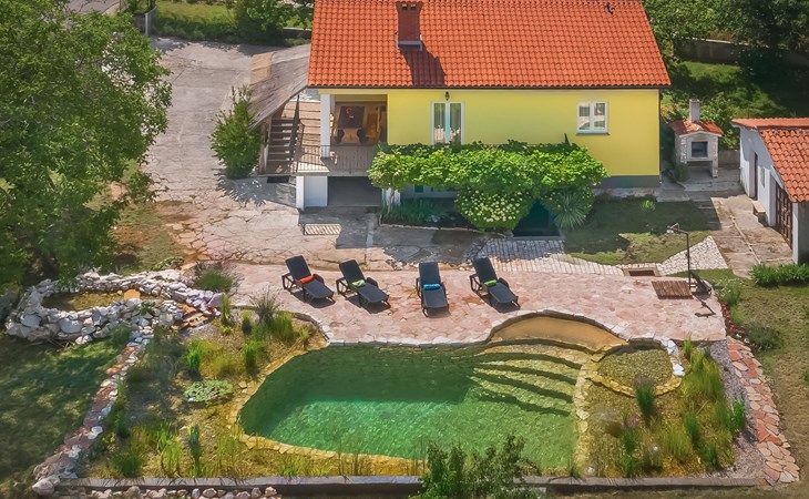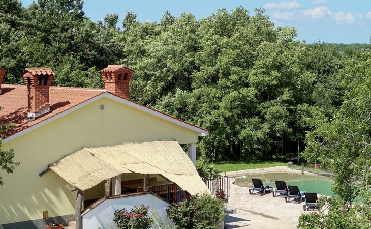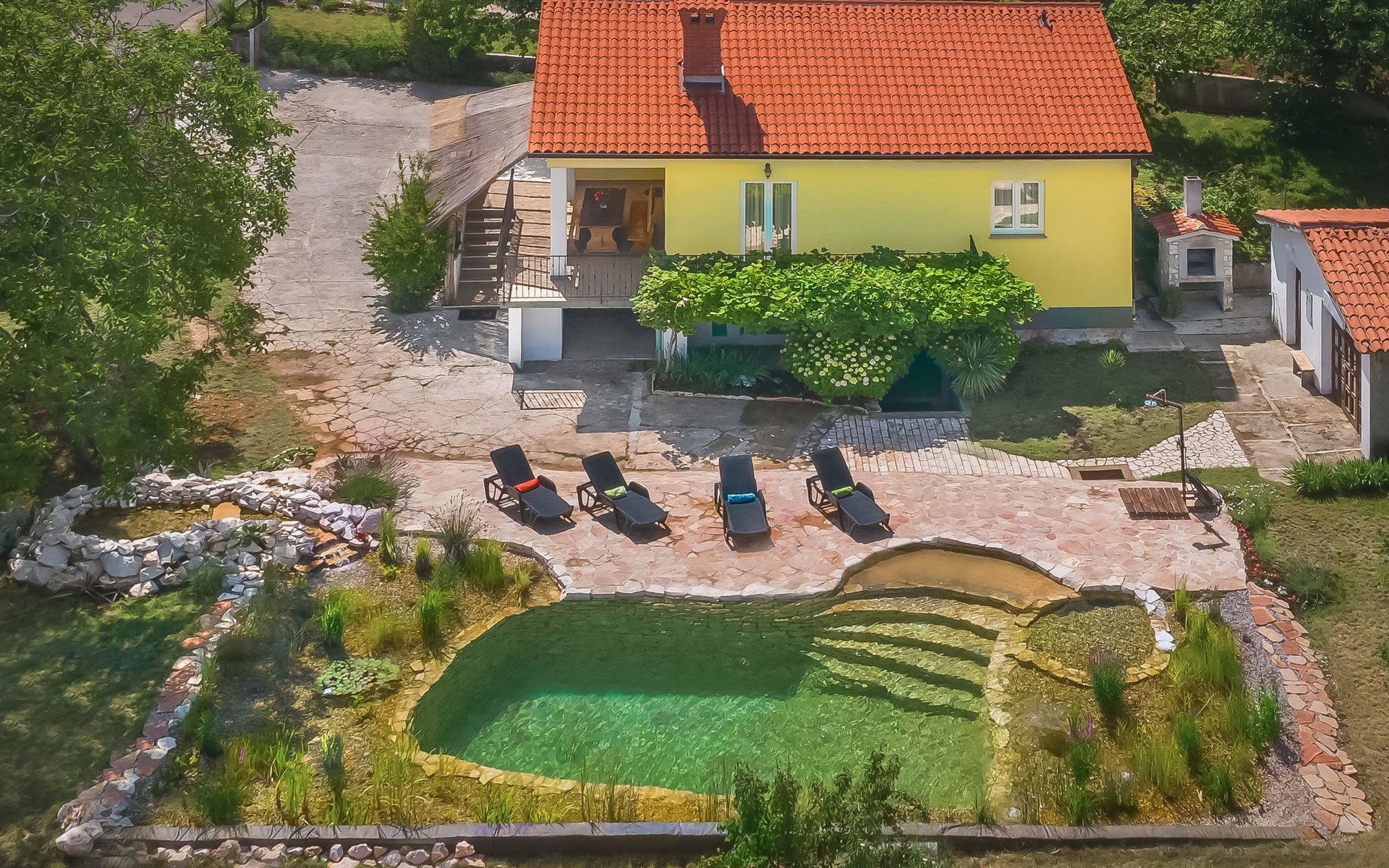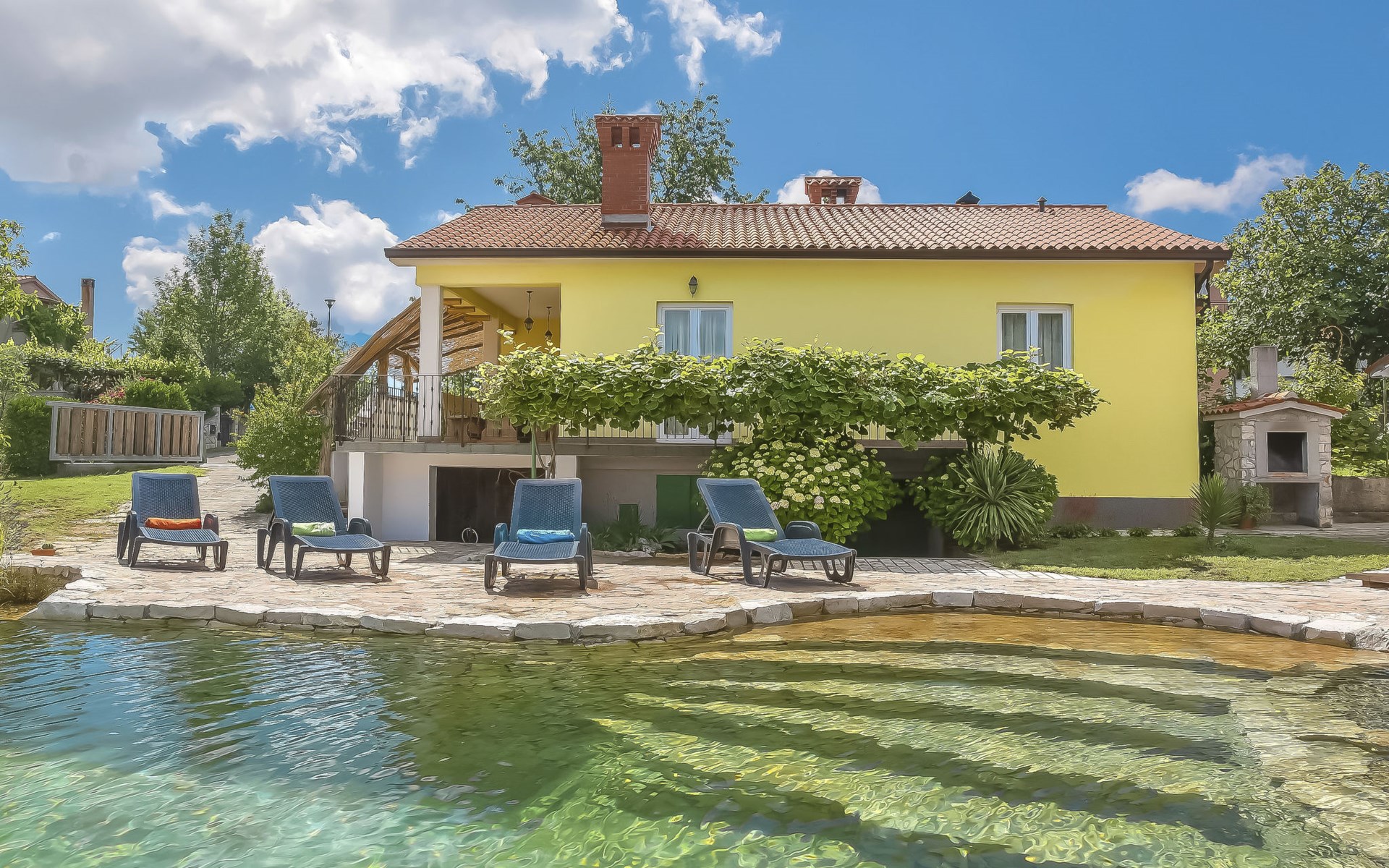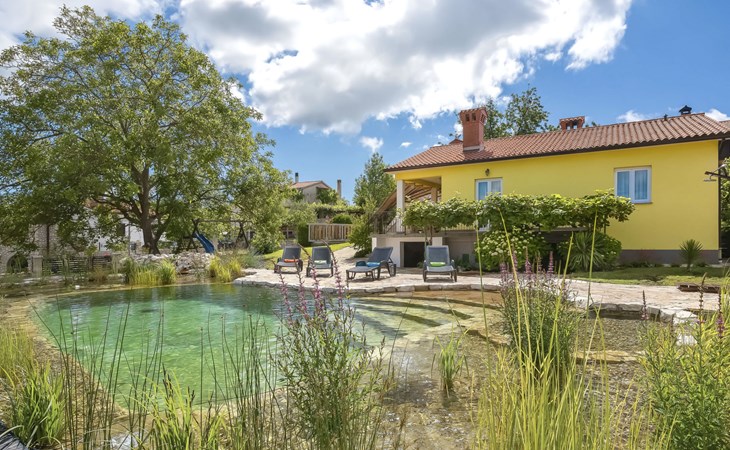 Eengezinswoning "Angelina". In de wijk Strmac, 4 km van het centrum van Labin, 9 km van het centrum van Rabac, 9 km van zee. Voor alleengebruik: terrein 1.300 m2 met gazon en bomen, openluchtzwembad (40 m2, 135 - 200 cm diepte, seizoensgebonden beschikbaarheid: 01.Mei. - 01.Okt.). Barbecue (glijbaan, schommel), onderhoud zwembad door de eigenaar/tuinman. In het huis: internetaansluiting, wasmachine. Parkeerplaats (voor 2 auto's) op het terrein. Supermarkt 1 km, bushalte 550 m, kiezelstrand 9 km, rotsstrand 9 km. Jachthaven 9 km. Het zwembad is voor privegebruik (40 m2, diepte 135-200 cm, 01.01-31.12) en het is een natuurlijke zwemvijver met een waterdiepte van 35 cm op sommige plekken, hetgeen het geschikt maakt voor kinderen.