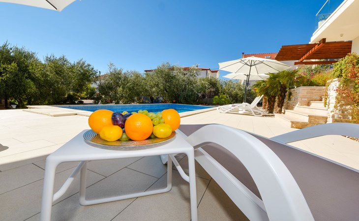 Eengezinswoning "Malu Sun II", van 2 verdiepingen. Rustige, zonnige ligging, 300 m van zee, 300 m van het strand. Voor medegebruik: terrein 1.100 m2 (omheind), openluchtzwembad hoekig (8 x 4 m, 140 cm diepte, seizoensgebonden beschikbaarheid: 01.Jun. - 19.Okt.) met trap. Buitendouche. In het huis: internetaansluiting. Parkeerplaats (voor 2 auto's) bij het huis op het terrein. Winkel 150 m, restaurant 300 m, bushalte, kiezelstrand 400 m, rotsstrand 300 m, strandbad 400 m, betonnen strand 300 m. Object referentie: HR4510.126.1 is gelegen op hetzelfde terrein.
