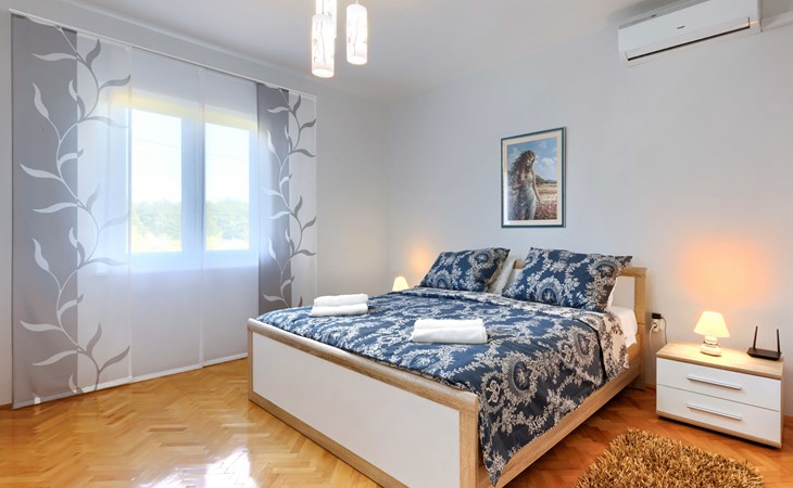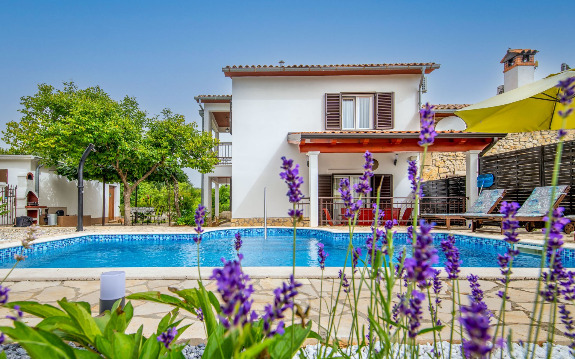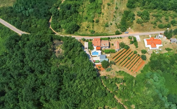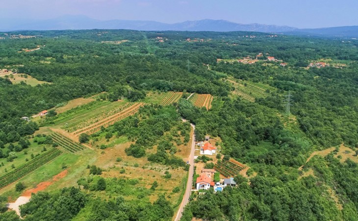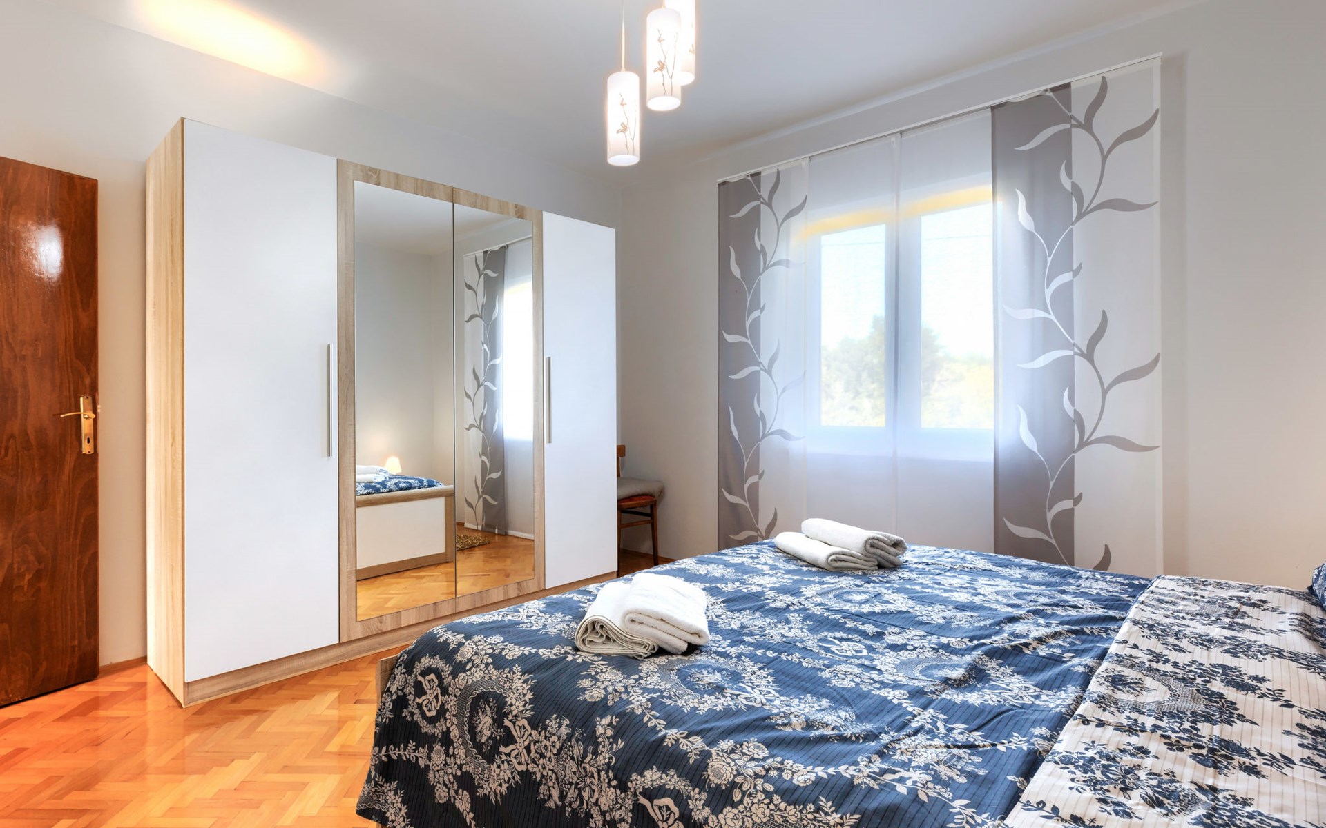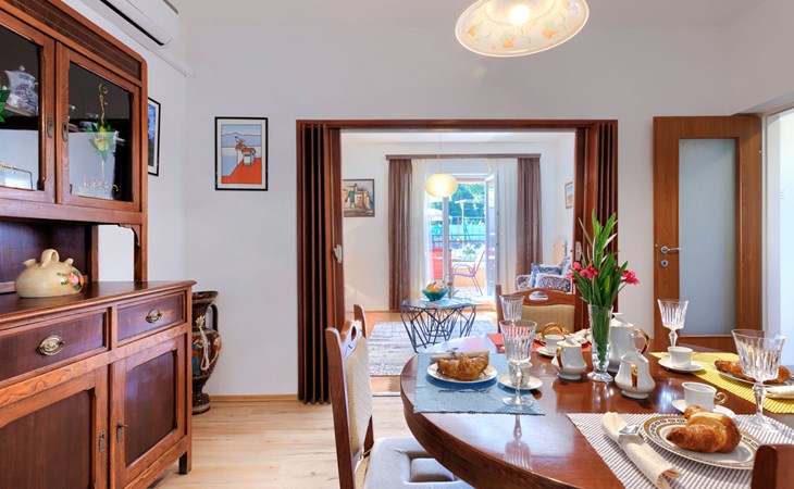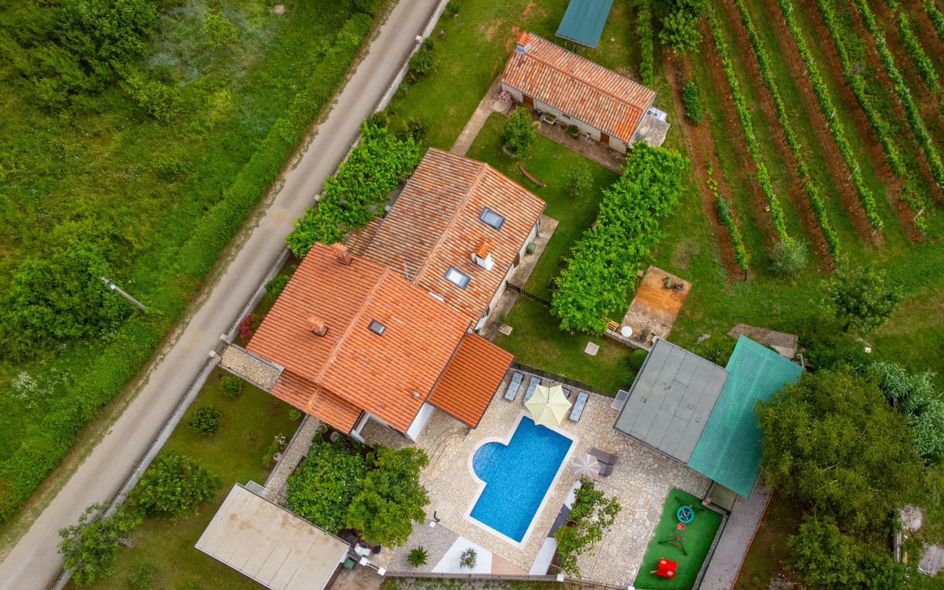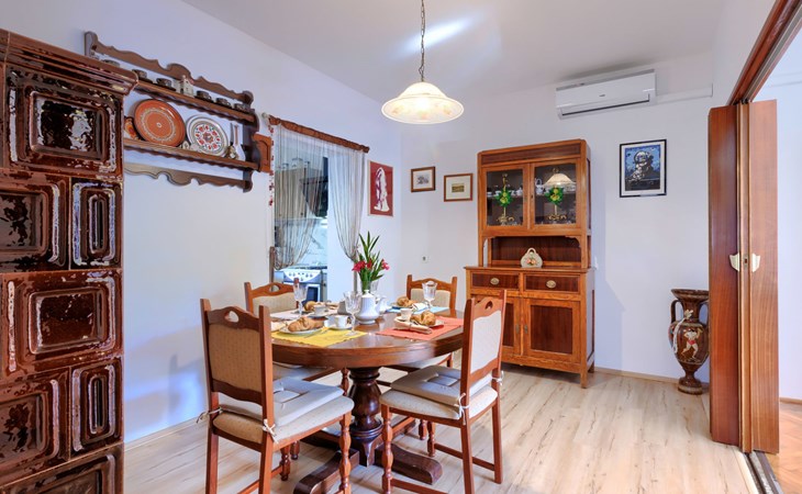 Twee onder één kap woning "Marija", van 2 verdiepingen, omgeven door bomen. In het gehucht Tomovi, 7.5 km van het centrum van Labin, rustige, zonnige ligging, 13 km van zee. Voor alleengebruik: terrein 600 m2 (omheind), kleine tuin met gazon, openluchtzwembad hoekig (7 x 4 m, 140 cm diepte, seizoensgebonden beschikbaarheid: 18.Mei. - 12.Okt.) met trap. Buitendouche, prieel (15 m2), barbecue, kinderspeelplaats (glijbaan, schommel). In het huis: internetaansluiting, wasmachine. Parkeerplaats bij het huis op het terrein. Winkel 1 km, supermarkt 7.5 km, restaurant 8 km, bushalte 7.1 km, kiezelstrand 13 km. Wandelroutes 200 m vanaf het huis, fietspad 250 m.