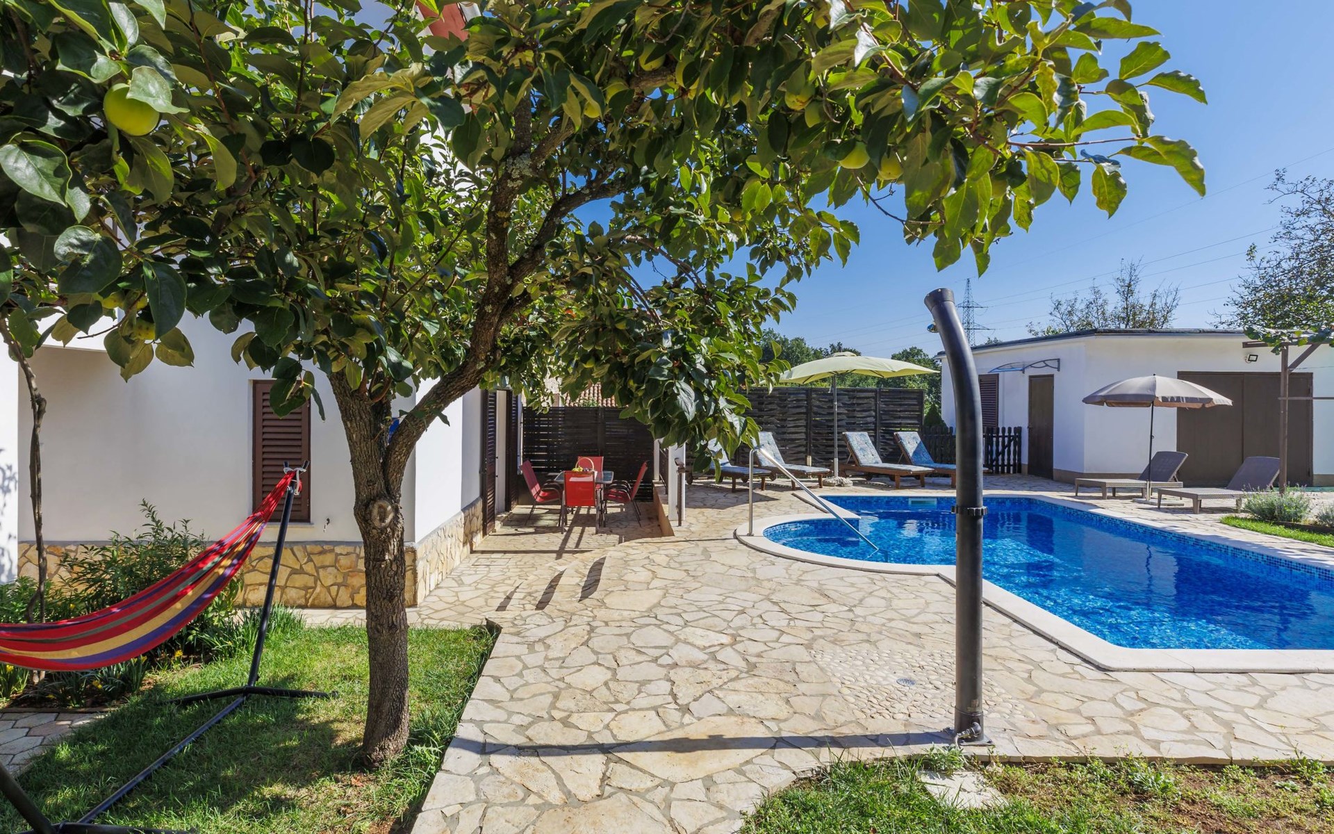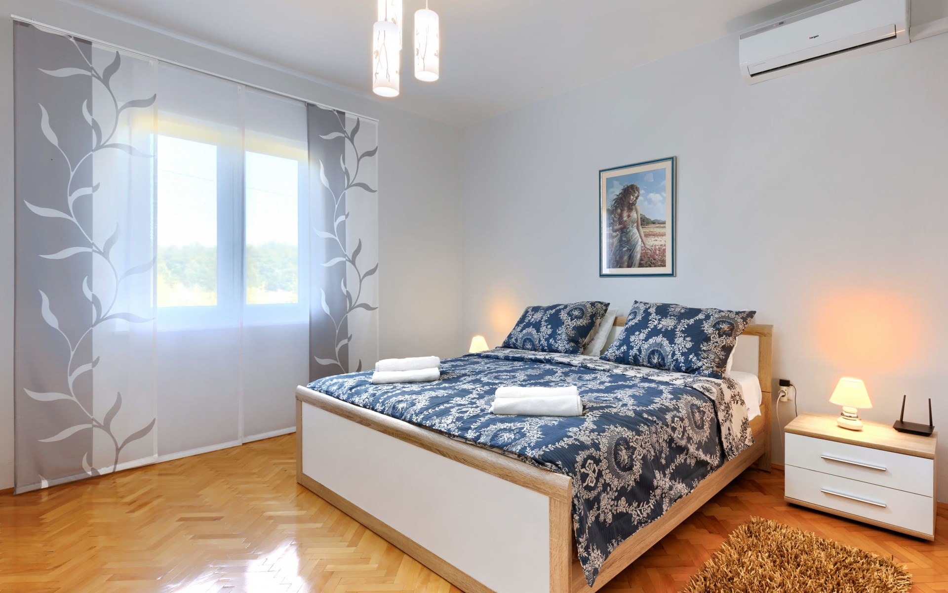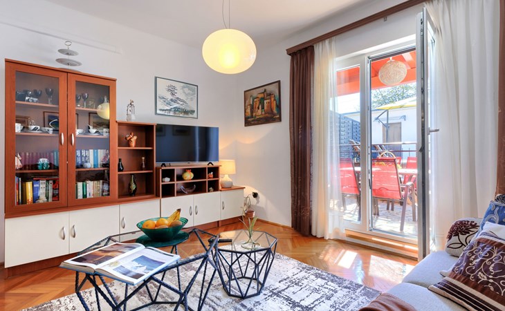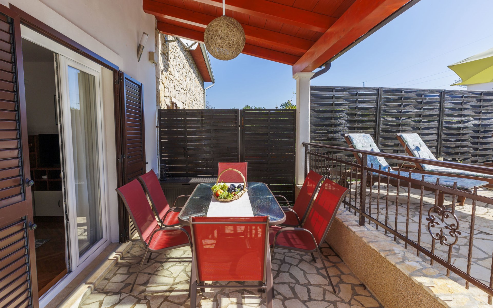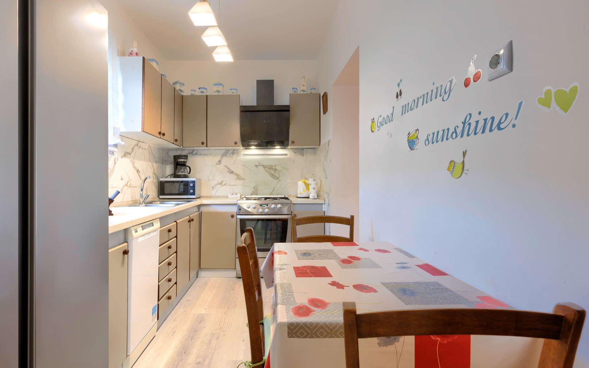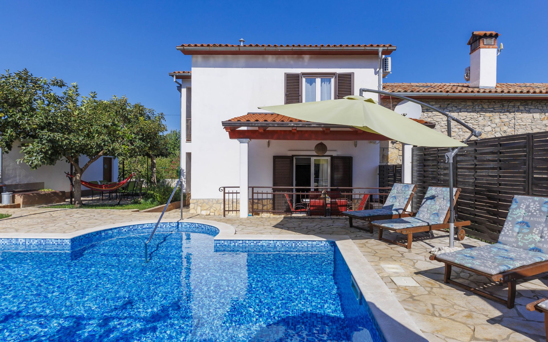Twee onder één kap woning "Marija", van 2 verdiepingen, omgeven door bomen. In het gehucht Tomovi, 7.5 km van het centrum van Labin, rustige, zonnige ligging, 13 km van zee. Voor alleengebruik: terrein 600 m2 (omheind), kleine tuin met gazon, openluchtzwembad hoekig (7 x 4 m, 140 cm diepte, seizoensgebonden beschikbaarheid: 18.Mei. - 12.Okt.) met trap. Buitendouche, prieel (15 m2), barbecue, kinderspeelplaats (glijbaan, schommel). In het huis: internetaansluiting, wasmachine. Parkeerplaats bij het huis op het terrein. Winkel 1 km, supermarkt 7.5 km, restaurant 8 km, bushalte 7.1 km, kiezelstrand 13 km. Wandelroutes 200 m vanaf het huis, fietspad 250 m.