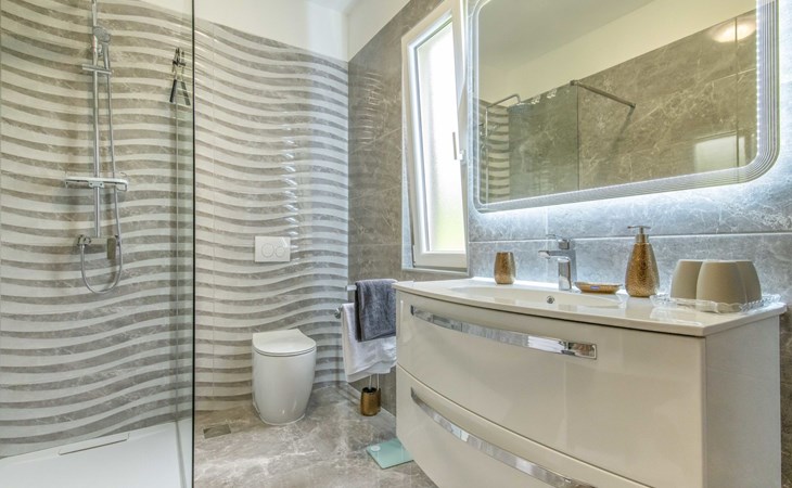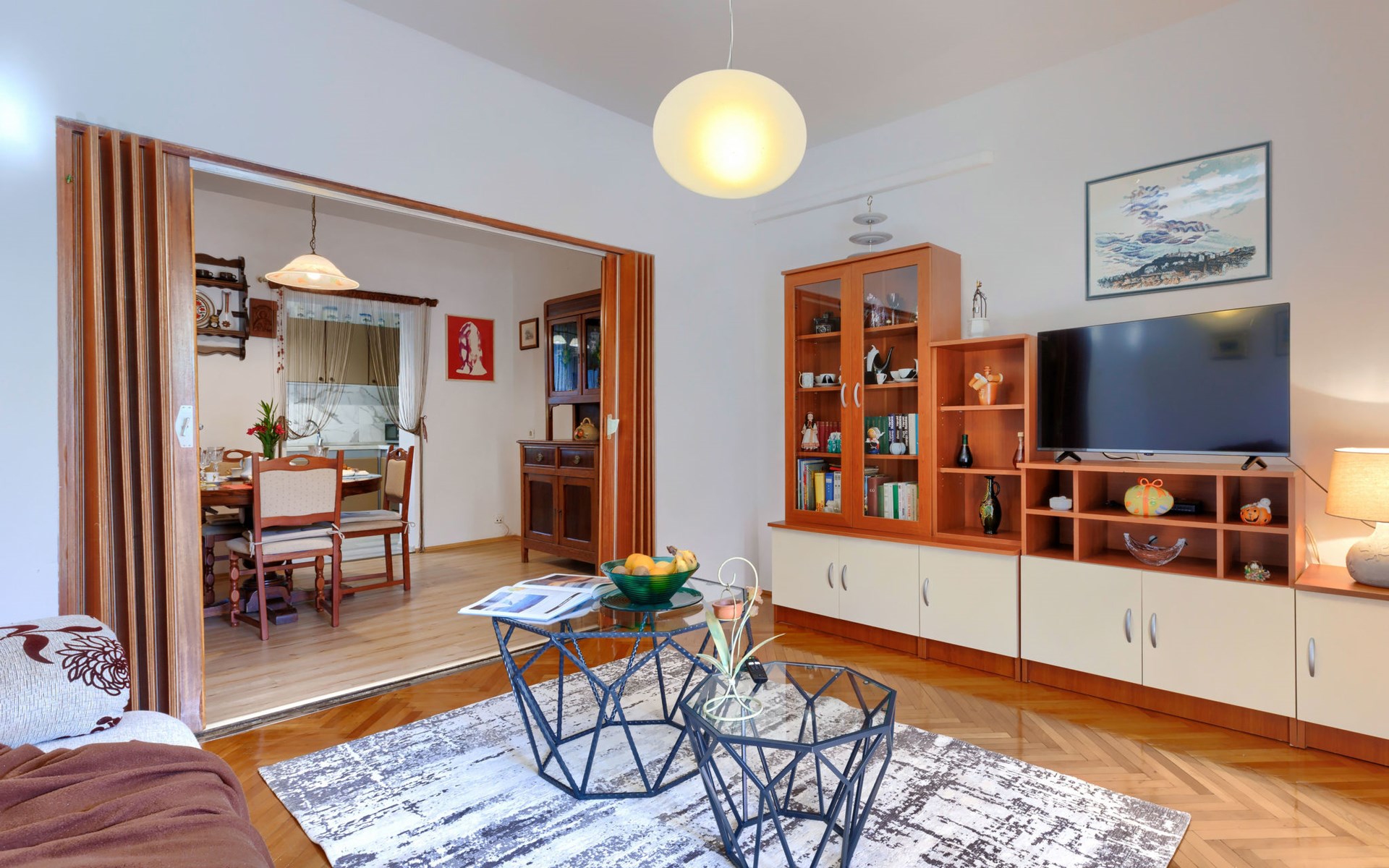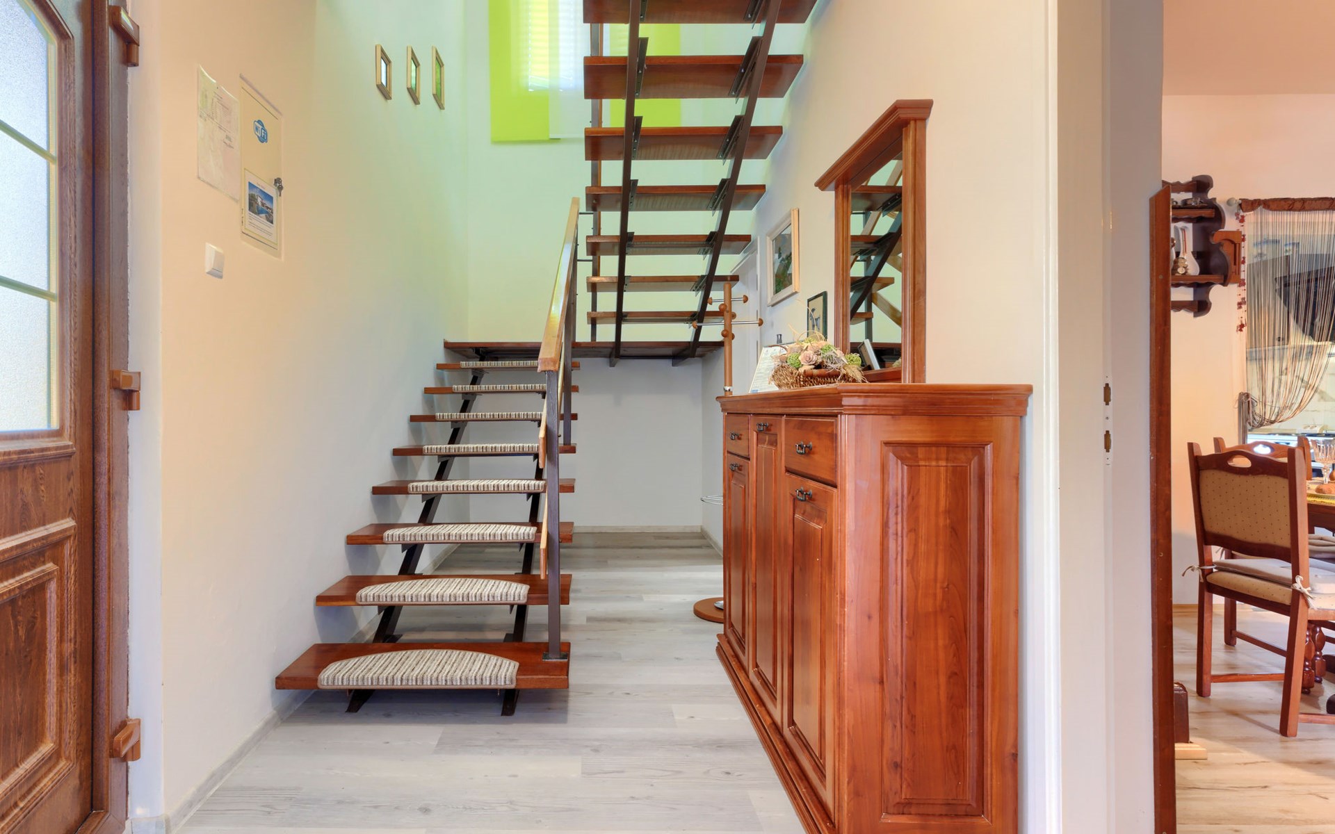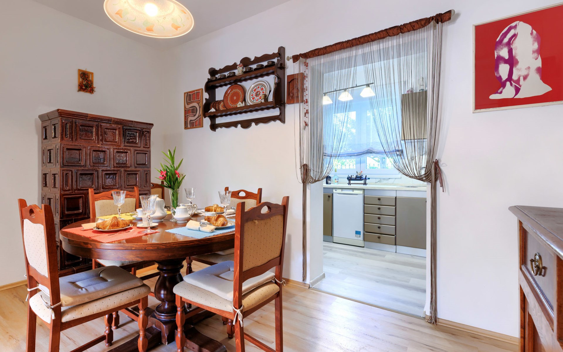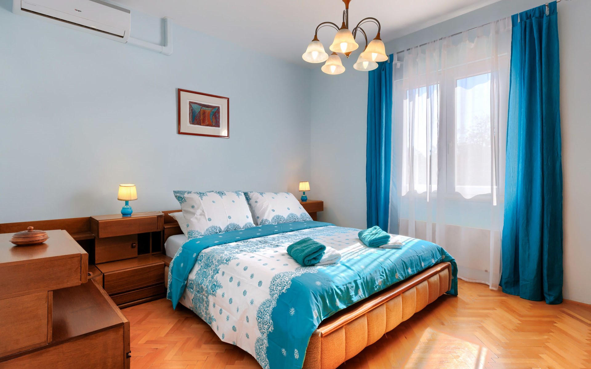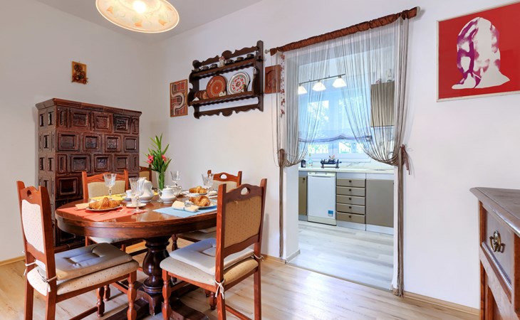 Twee onder één kap woning "Marija", van 2 verdiepingen, omgeven door bomen. In het gehucht Tomovi, 7.5 km van het centrum van Labin, rustige, zonnige ligging, 13 km van zee. Voor alleengebruik: terrein 600 m2 (omheind), kleine tuin met gazon, openluchtzwembad hoekig (7 x 4 m, 140 cm diepte, seizoensgebonden beschikbaarheid: 18.Mei. - 12.Okt.) met trap. Buitendouche, prieel (15 m2), barbecue, kinderspeelplaats (glijbaan, schommel). In het huis: internetaansluiting, wasmachine. Parkeerplaats bij het huis op het terrein. Winkel 1 km, supermarkt 7.5 km, restaurant 8 km, bushalte 7.1 km, kiezelstrand 13 km. Wandelroutes 200 m vanaf het huis, fietspad 250 m.