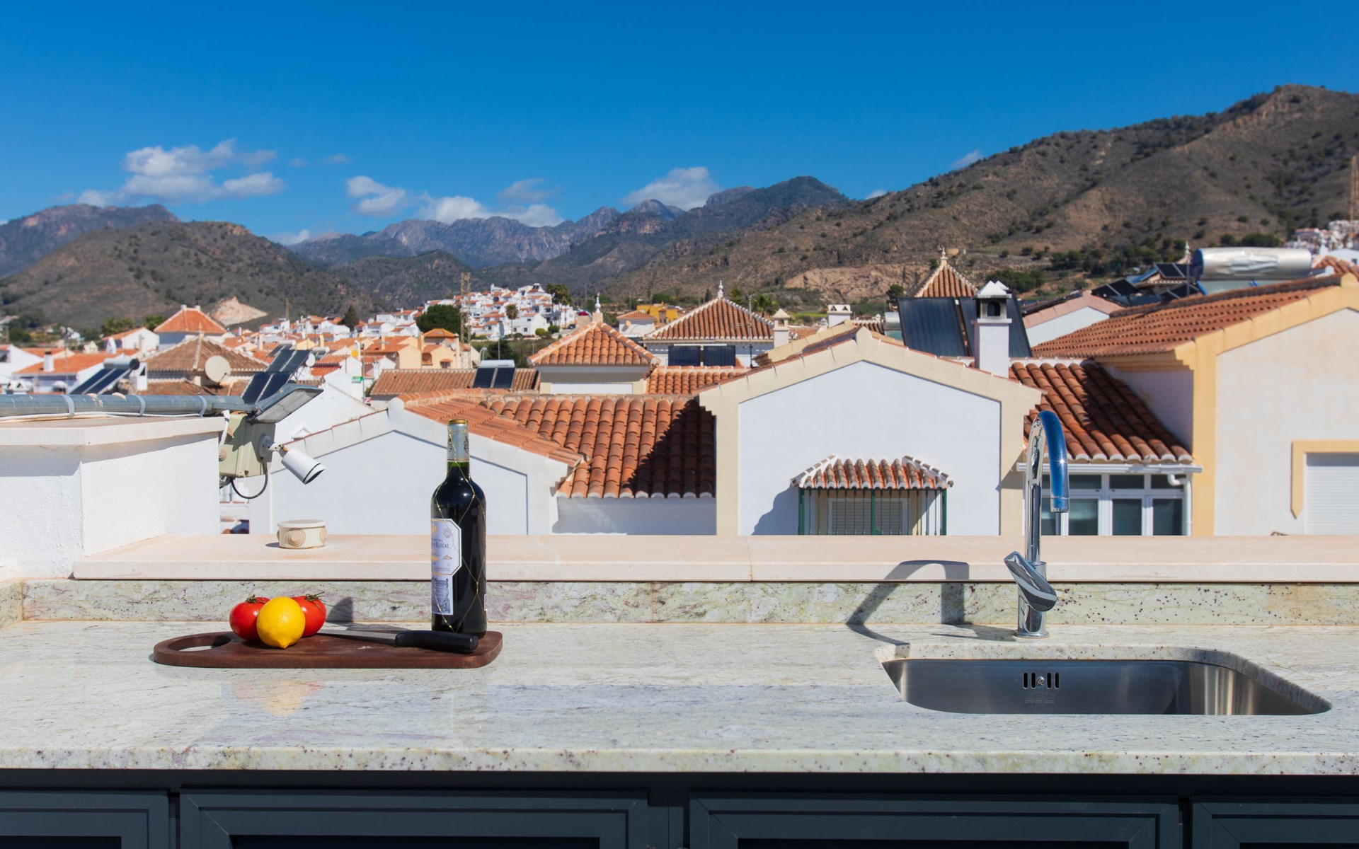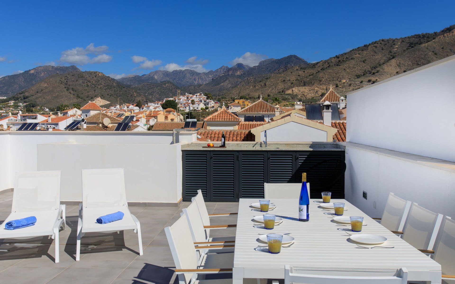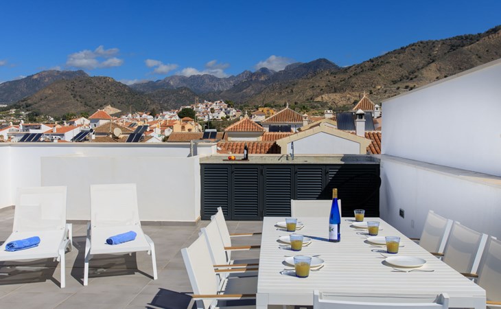 Moderne, mooi, comfortabel rijtjeshuis "Skyhill", van 3 verdiepingen. In de plaats Nerja, rustige ligging in een woonwijk, 1.5 km van zee, 1.5 km van het strand. Voor medegebruik: openluchtzwembad hoekig (10 x 5 m, 100 - 175 cm diepte, seizoensgebonden beschikbaarheid: 01.Jan. - 31.Dec.). Buitendouche. Voor alleengebruik: hot tub, prieel, terras, tuinmeubelen, barbecue. In het huis: solarium. Supermarkt 200 m, winkelcentrum 23 km, restaurant, biertuin, bushalte 200 m, station 52 km, zandstrand "Burriana", duikschool 900 m. Jachthaven 17 km, jachthaven 17 km, golfterrein (18 holes) 20 km. Attracties in de buurt: Frigiliana, La Herradura, Malaga, Competa, Maro, Cuevas de Maro. Bekende skigebieden kunnen gemakkelijk worden bereikt: Sierra Nevada. Wandelgebied Sierra Almijara, Sierra Tejeda. Geen lift. De eigenaar accepteert geen jeugdgroepen. Laden en lossen van de baggage is mogelijk bij het huis.
