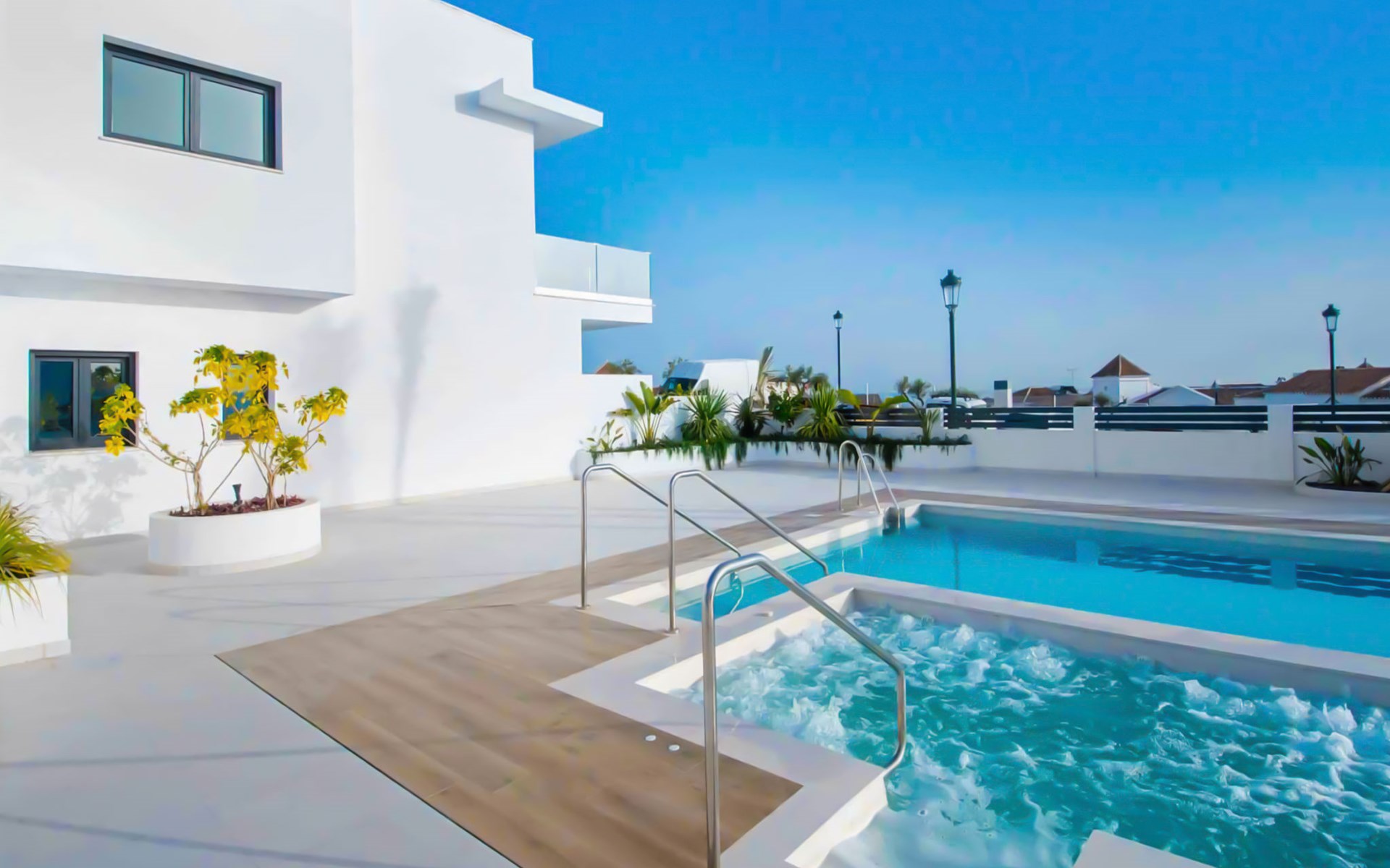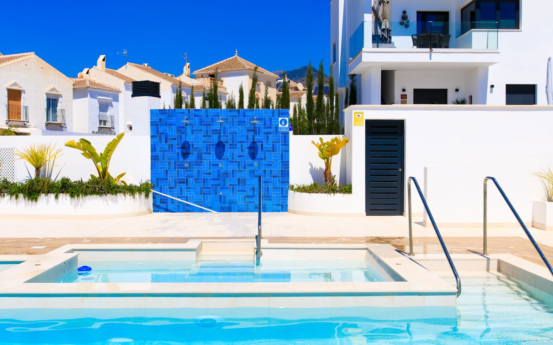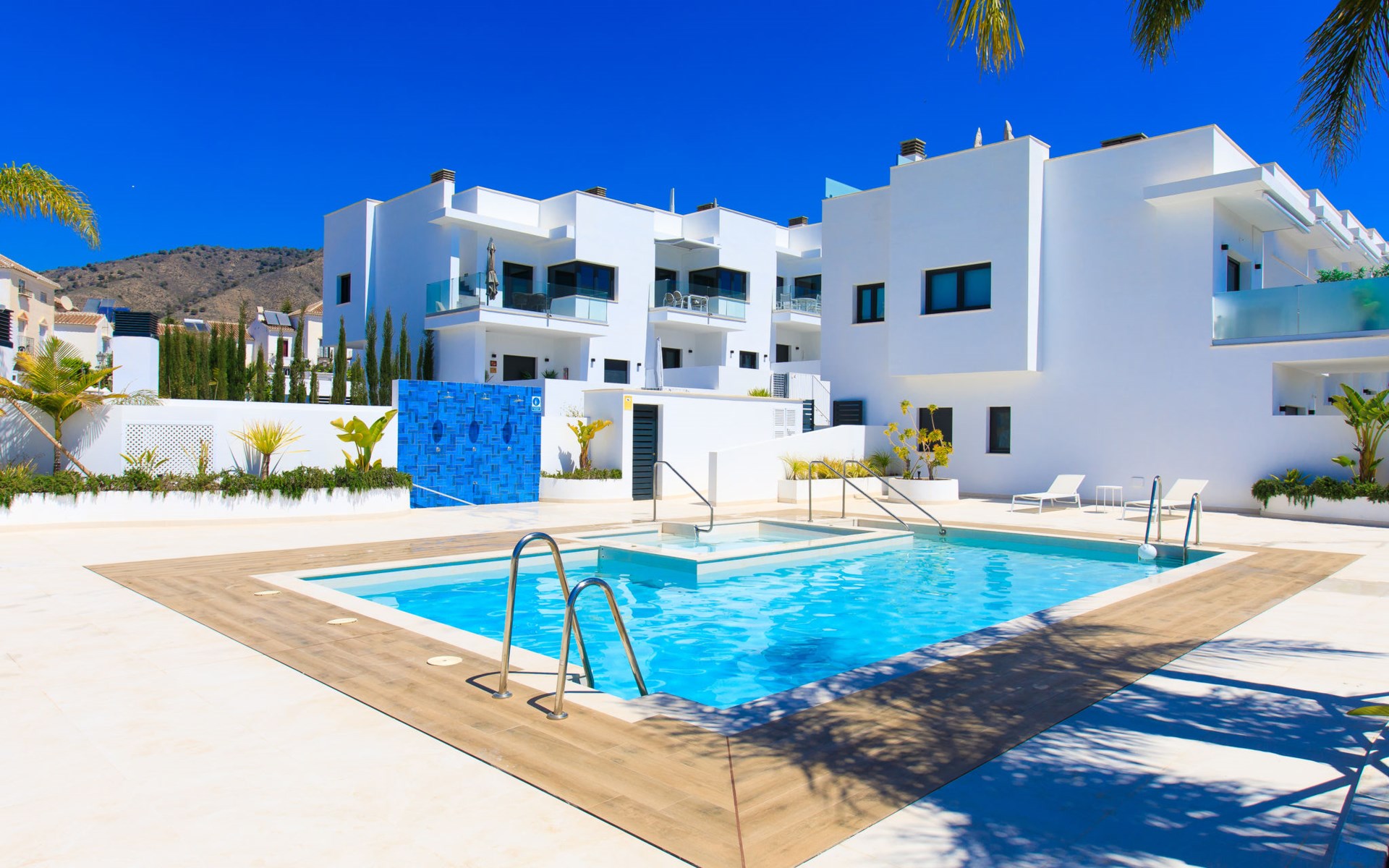 Moderne, mooi, comfortabel rijtjeshuis "Skyhill", van 3 verdiepingen. In de plaats Nerja, rustige ligging in een woonwijk, 1.5 km van zee, 1.5 km van het strand. Voor medegebruik: openluchtzwembad hoekig (10 x 5 m, 100 - 175 cm diepte, seizoensgebonden beschikbaarheid: 01.Jan. - 31.Dec.). Buitendouche. Voor alleengebruik: hot tub, prieel, terras, tuinmeubelen, barbecue. In het huis: solarium. Supermarkt 200 m, winkelcentrum 23 km, restaurant, biertuin, bushalte 200 m, station 52 km, zandstrand "Burriana", duikschool 900 m. Jachthaven 17 km, jachthaven 17 km, golfterrein (18 holes) 20 km. Attracties in de buurt: Frigiliana, La Herradura, Malaga, Competa, Maro, Cuevas de Maro. Bekende skigebieden kunnen gemakkelijk worden bereikt: Sierra Nevada. Wandelgebied Sierra Almijara, Sierra Tejeda. Geen lift. De eigenaar accepteert geen jeugdgroepen. Laden en lossen van de baggage is mogelijk bij het huis.