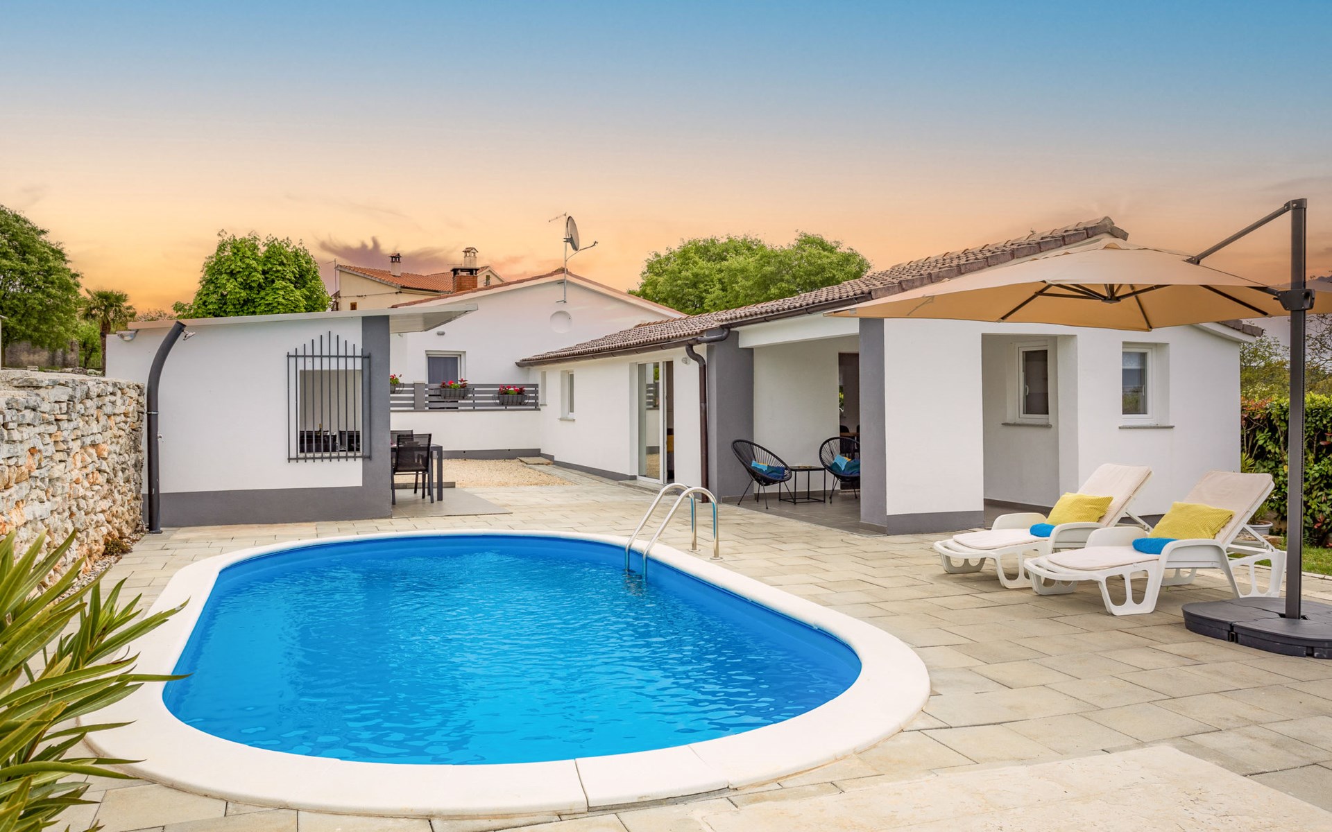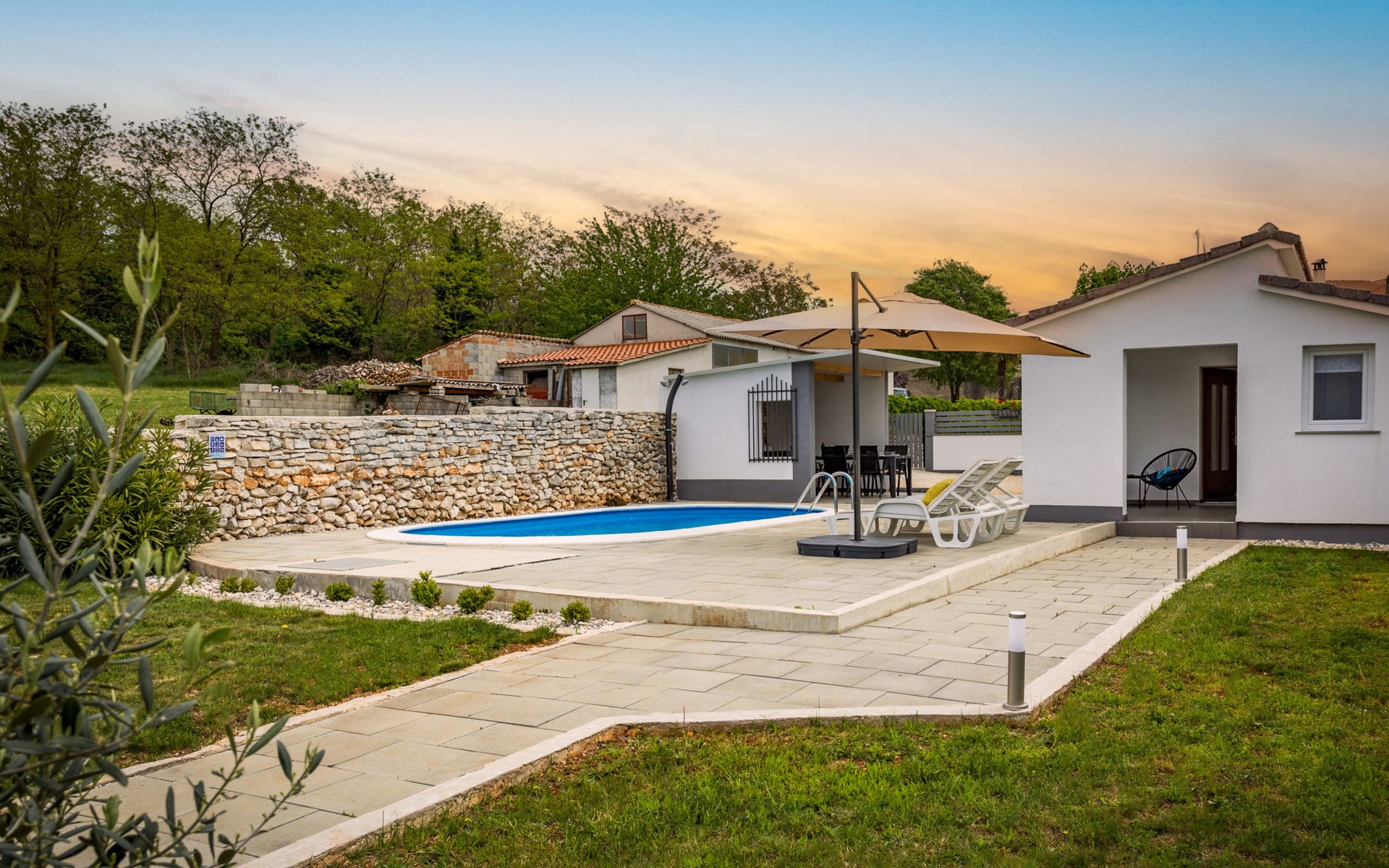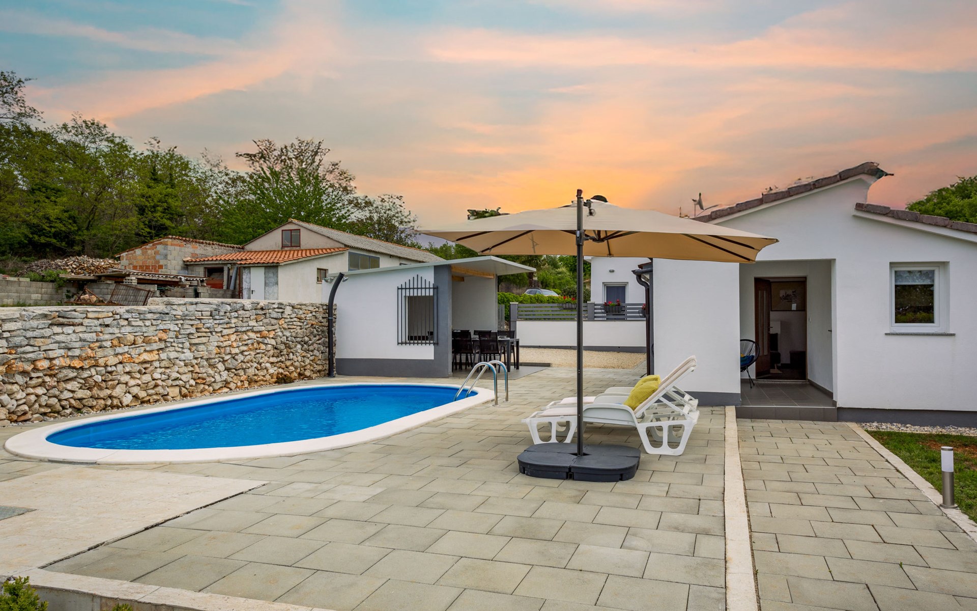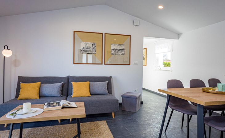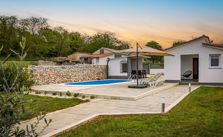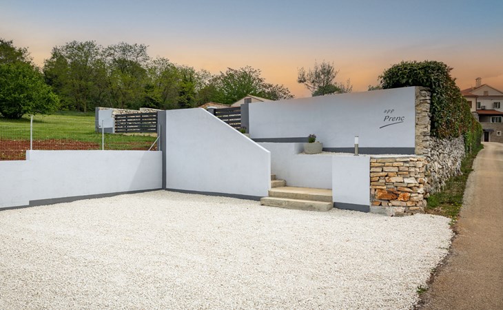 Twee onder één kap woning "Prenc", gerenoveerd in 2021. In het gehucht Glavica, 2 km van het centrum van Sveti Petar u Šumi, 8 km van het centrum van Pazin, 25 km van zee. Voor alleengebruik: terrein 700 m2 (omheind) met gazon, openluchtzwembad (7 x 3 m, 27 m2, 150 cm diepte, seizoensgebonden beschikbaarheid: 16.Mei. - 19.Sep.). Buitendouche, terras, tuinmeubelen, barbecue. In het huis: internetaansluiting, wasmachine. Parkeerplaats (voor 2 auto's) bij het huis op het terrein. Winkel 1.5 km, restaurant 2 km, bushalte 7.8 km, rotsstrand 25 km. Voor alleengebruik:buitenkeuken (2-pits kookplaat, koelkast).