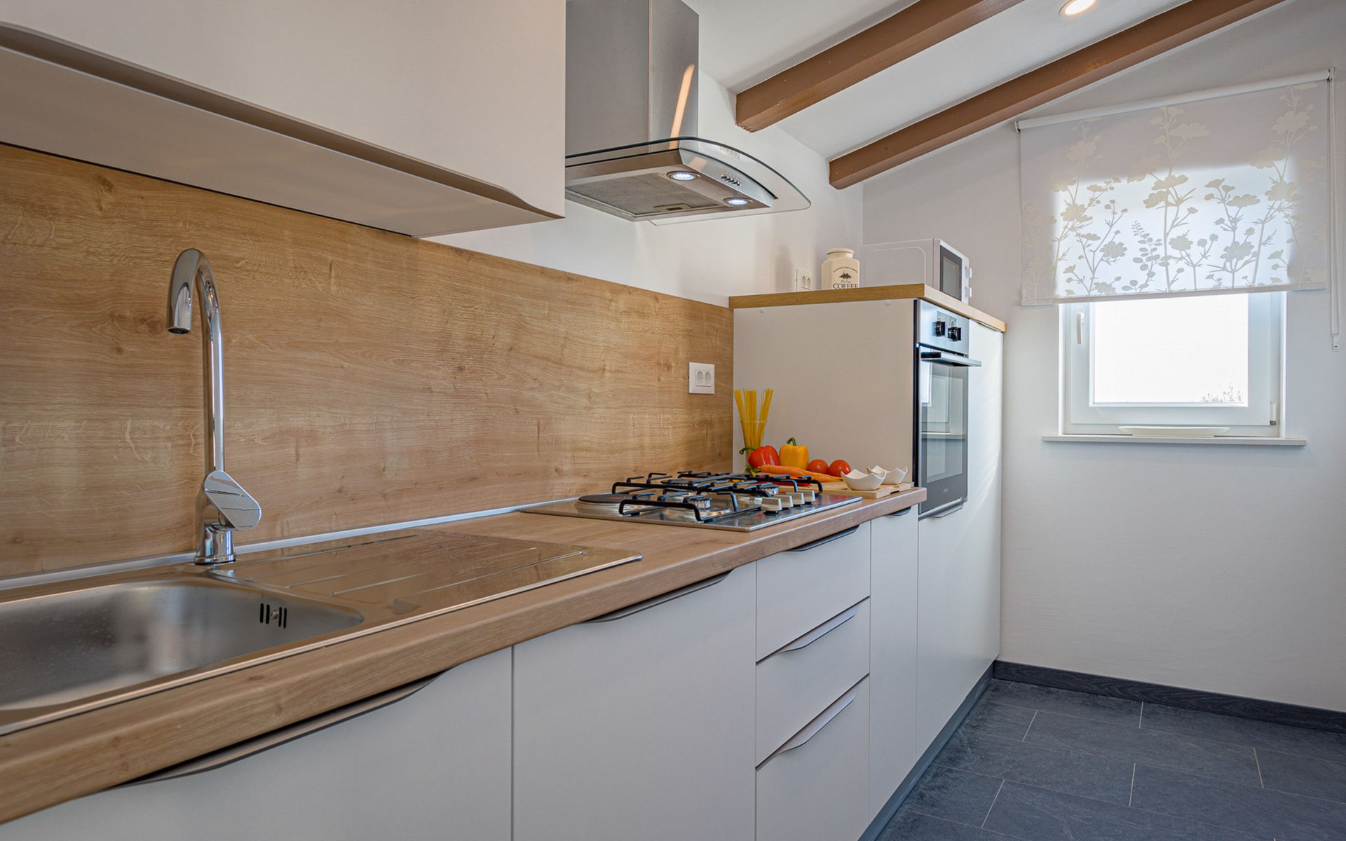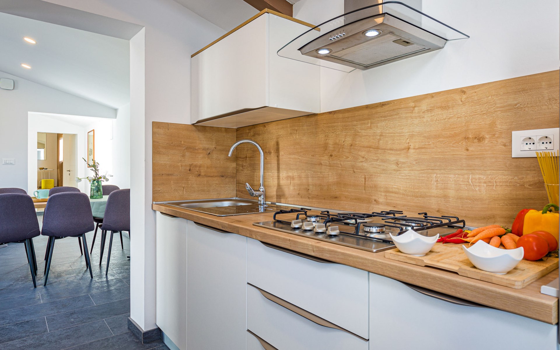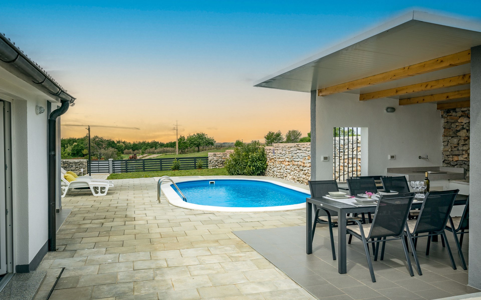 Twee onder één kap woning "Prenc", gerenoveerd in 2021. In het gehucht Glavica, 2 km van het centrum van Sveti Petar u Šumi, 8 km van het centrum van Pazin, 25 km van zee. Voor alleengebruik: terrein 700 m2 (omheind) met gazon, openluchtzwembad (7 x 3 m, 27 m2, 150 cm diepte, seizoensgebonden beschikbaarheid: 16.Mei. - 19.Sep.). Buitendouche, terras, tuinmeubelen, barbecue. In het huis: internetaansluiting, wasmachine. Parkeerplaats (voor 2 auto's) bij het huis op het terrein. Winkel 1.5 km, restaurant 2 km, bushalte 7.8 km, rotsstrand 25 km. Voor alleengebruik:buitenkeuken (2-pits kookplaat, koelkast).