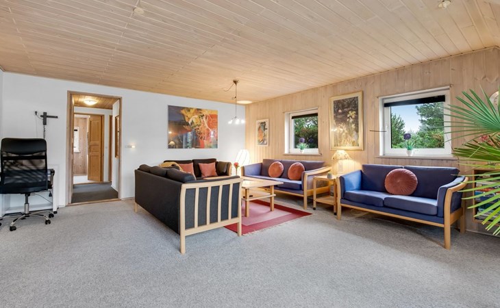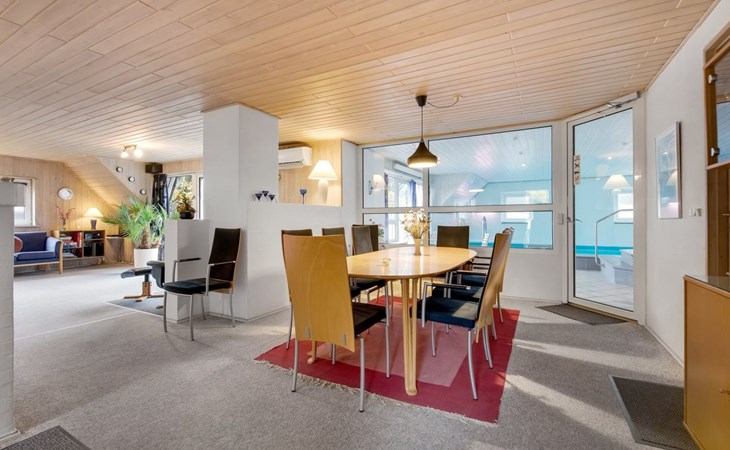 Eengezinswoning, bouwjaar 1991. 1.1 km van zee. Voor alleengebruik: wild terrein 2.100 m2, overdekt zwembad (7 x 3 m, 2.5.2 m2, 130 - 130 cm diepte). Terras (45 m2), kinderspeelplaats (schommel). In het huis: sauna, solarium, wasmachine, droger. Parkeerplaats bij het huis. Levensmiddelenwinkel 900 m. De eigenaar accepteert geen jeugdgroepen.