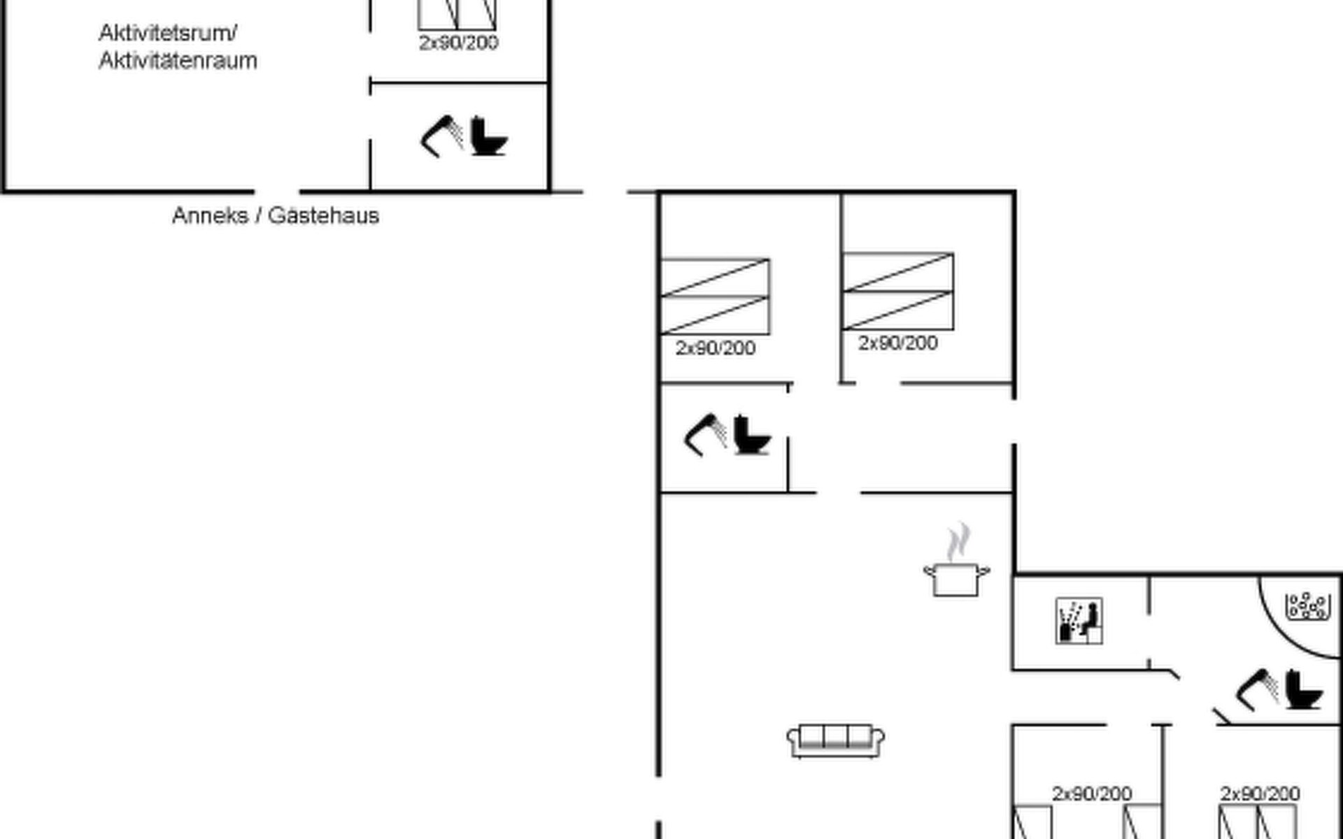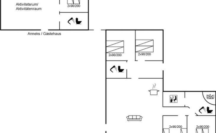 Eengezinswoning, bouwjaar 2018. 1.5 km van zee. Voor alleengebruik: wild terrein 2.102 m2. Terras (130 m2), kinderspeelplaats (glijbaan, schommel). In het huis: sauna, trampoline, wasmachine, droger. Parkeerplaats bij het huis. Levensmiddelenwinkel 1.2 km. Golfterrein 5.5 km. De eigenaar accepteert geen jeugdgroepen.