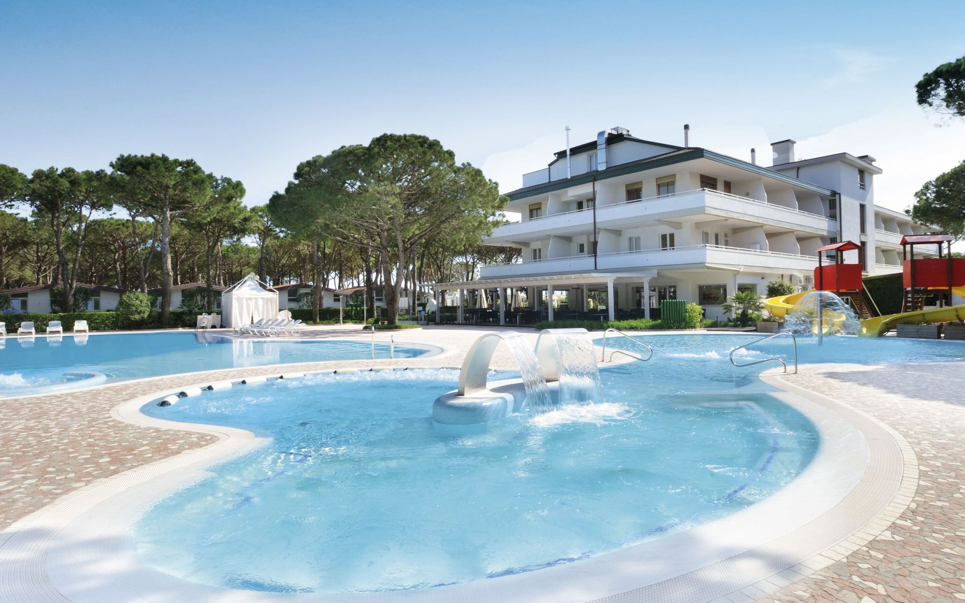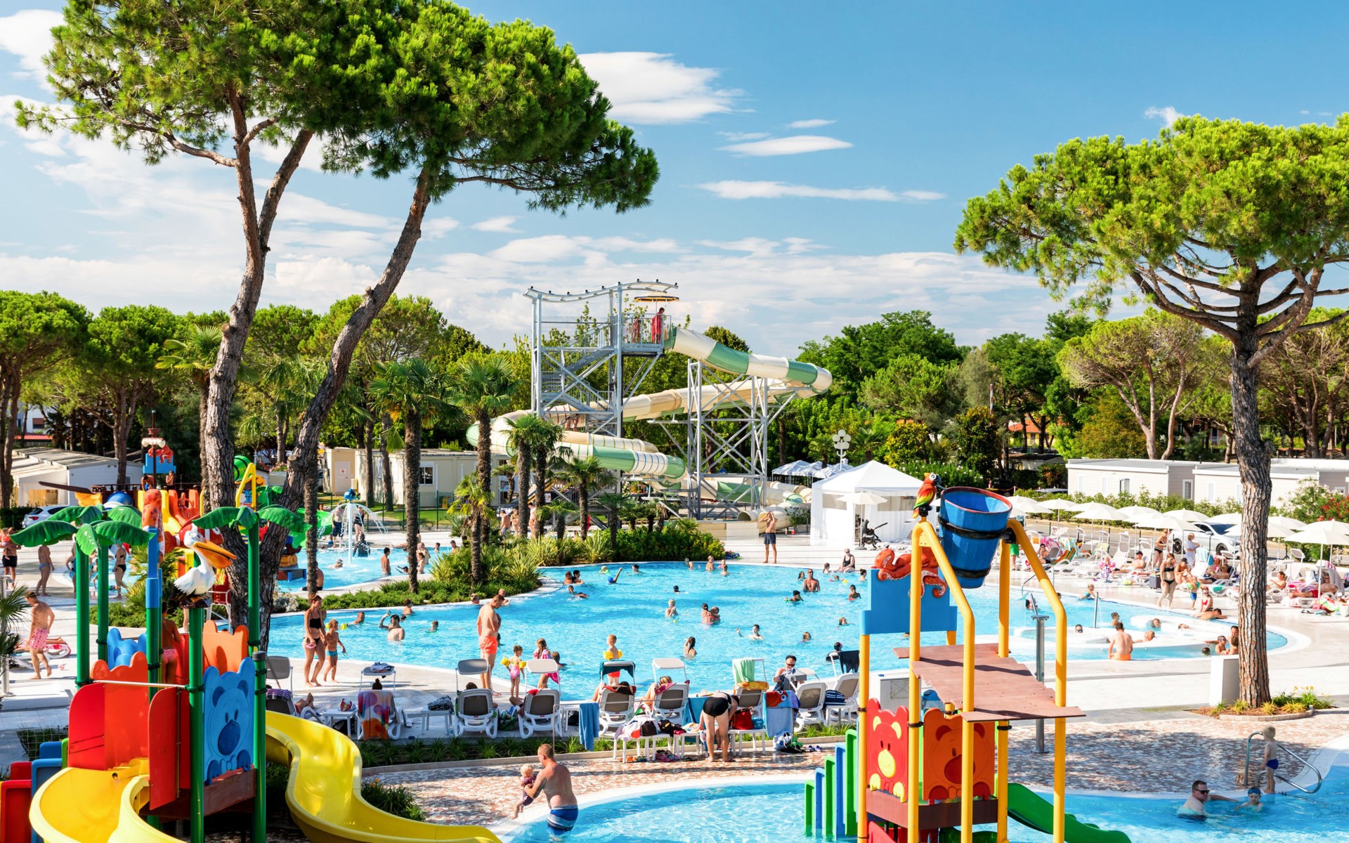 Groot, kindvriendelijk vakantiedorp "Residence Village". 3 km van het centrum van Cavallino Treporti, 5 km van het centrum van Lido di Jesolo, 350 m van zee, directe toegang tot het strand. Voor medegebruik: terrein 8 ha (omheind), 2 zwembaden niervormig (140 cm diepte, seizoensgebonden beschikbaarheid: 10.Mei. - 24.Sep.). Kinderzwembad, glijbaan, buitendouche, beachvolleybal, kinderspeelplaats. In het complex: receptie, restaurant, bar, Internet (WiFi) (extra). Winkel, kiosk, wasmachine (extra), droger (voor medegebruik, extra), fietsverhuur. Supermarkt 50 m, bushalte 150 m, veerboot "Punta Sabbioni" 13 km, zandstrand 350 m. Attracties in de buurt: Venezia 45 km. Animatie in het hoogseizoen. De eigenaar accepteert geen groepen. Gesloten residentie met een elektrische deur.