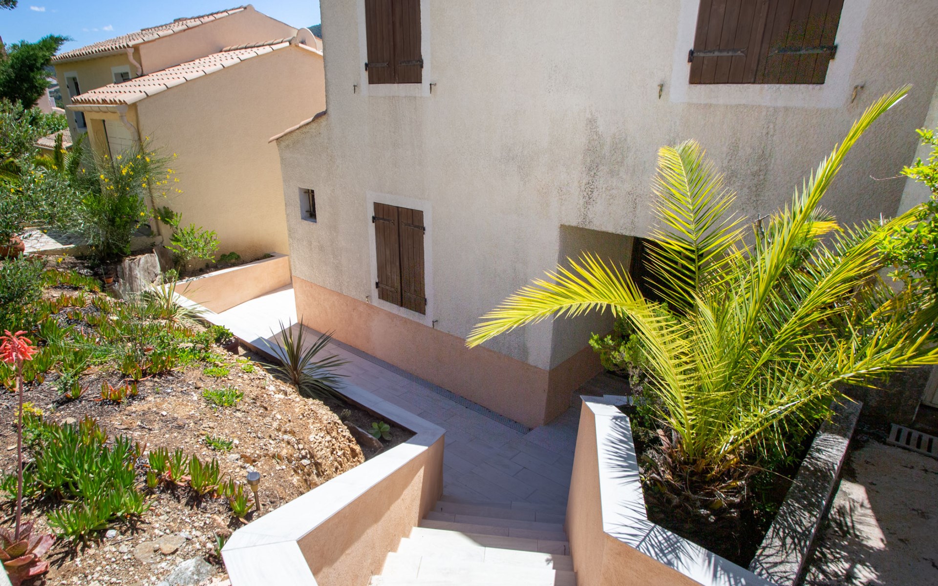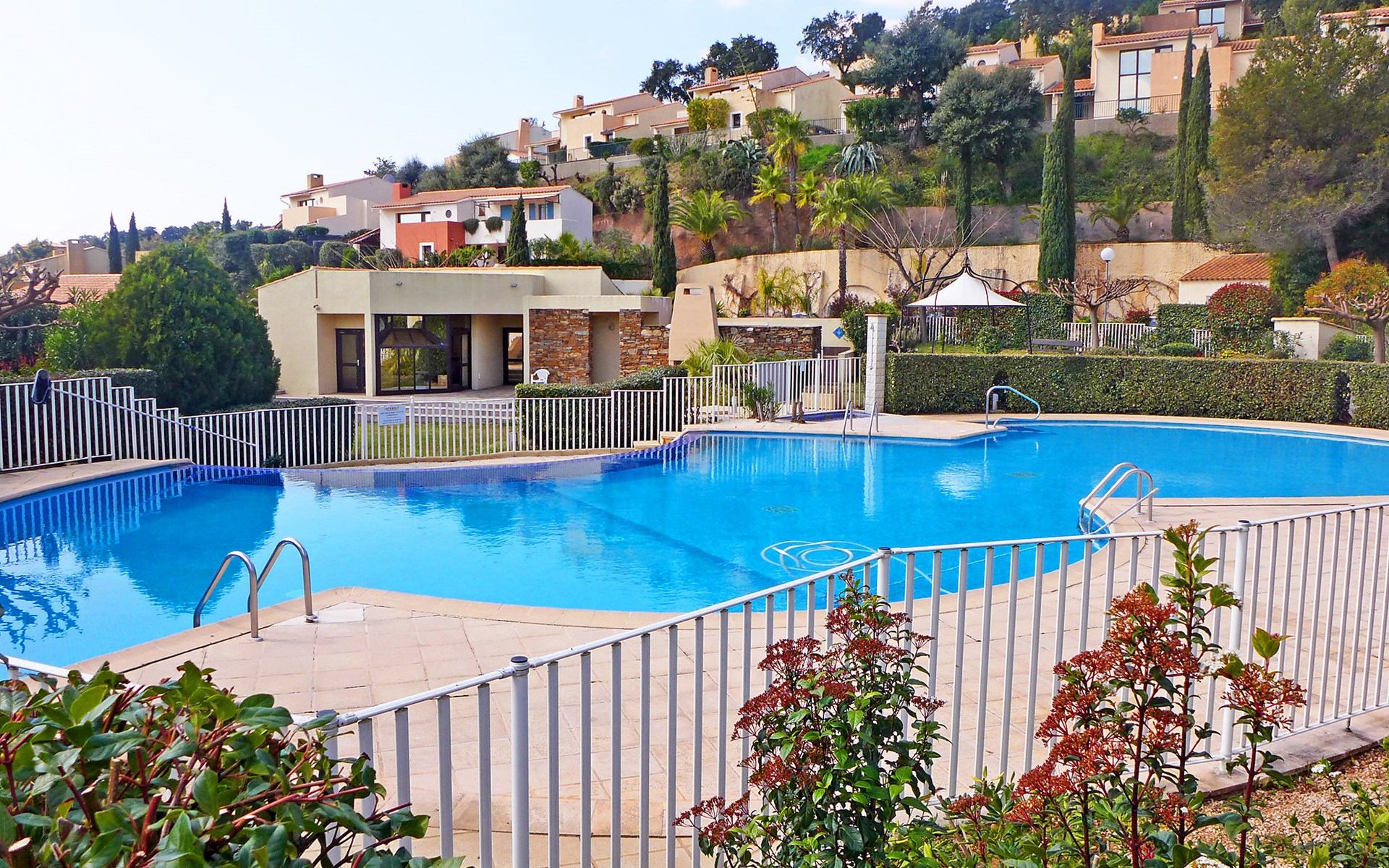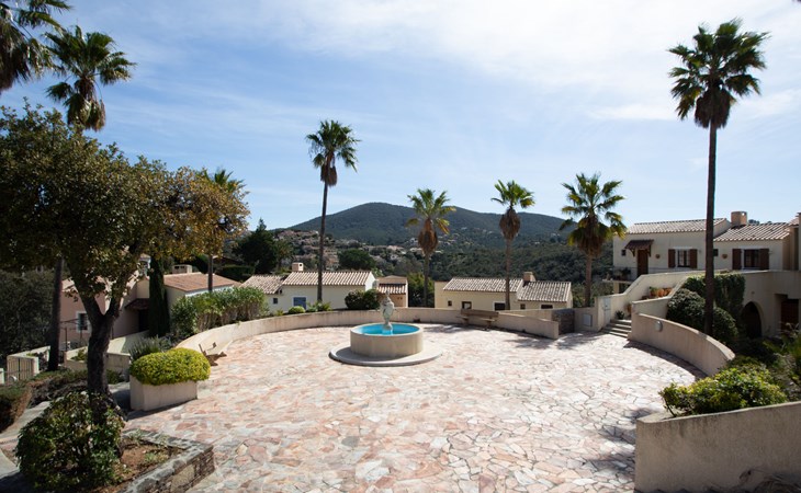 La Londe Les Maures: Residentie "Le Belvédère". 84 huizen in de woning. In de wijk Valcros, buiten de plaats, 6 km van het centrum, op een heuvel, in een woonwijk, 9.8 km van zee, 9.8 km van het strand. Voor medegebruik: verzorgde tuin 100 m2, openluchtzwembad omheind (250 m2, seizoensgebonden beschikbaarheid: 05.Mrt. - 05.Nov.). Kinderzwembad, buitendouche. Winkel 6 km, levensmiddelenwinkel 6 km, supermarkt 6 km, winkelcentrum 18 km, restaurant 6 km, zandstrand "l'Argentière" 9.8 km. Golfterrein (18 holes) 3 km. Attracties in de buurt: Jardin Zoologique Tropical 4.8 km, Dolmen de Gaoutabry 6 km. Auto noodzakelijk. Gesloten residentie met een elektrische deur. De sleuteloverdracht vindt plaats bij het agentschap INTERHOME in Hyères sur le Port.