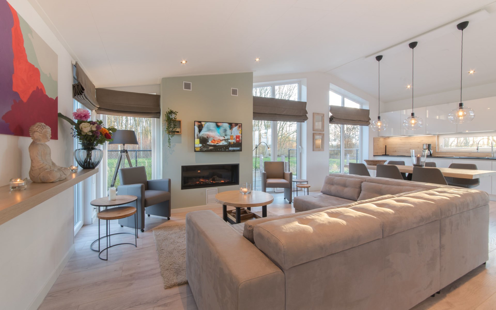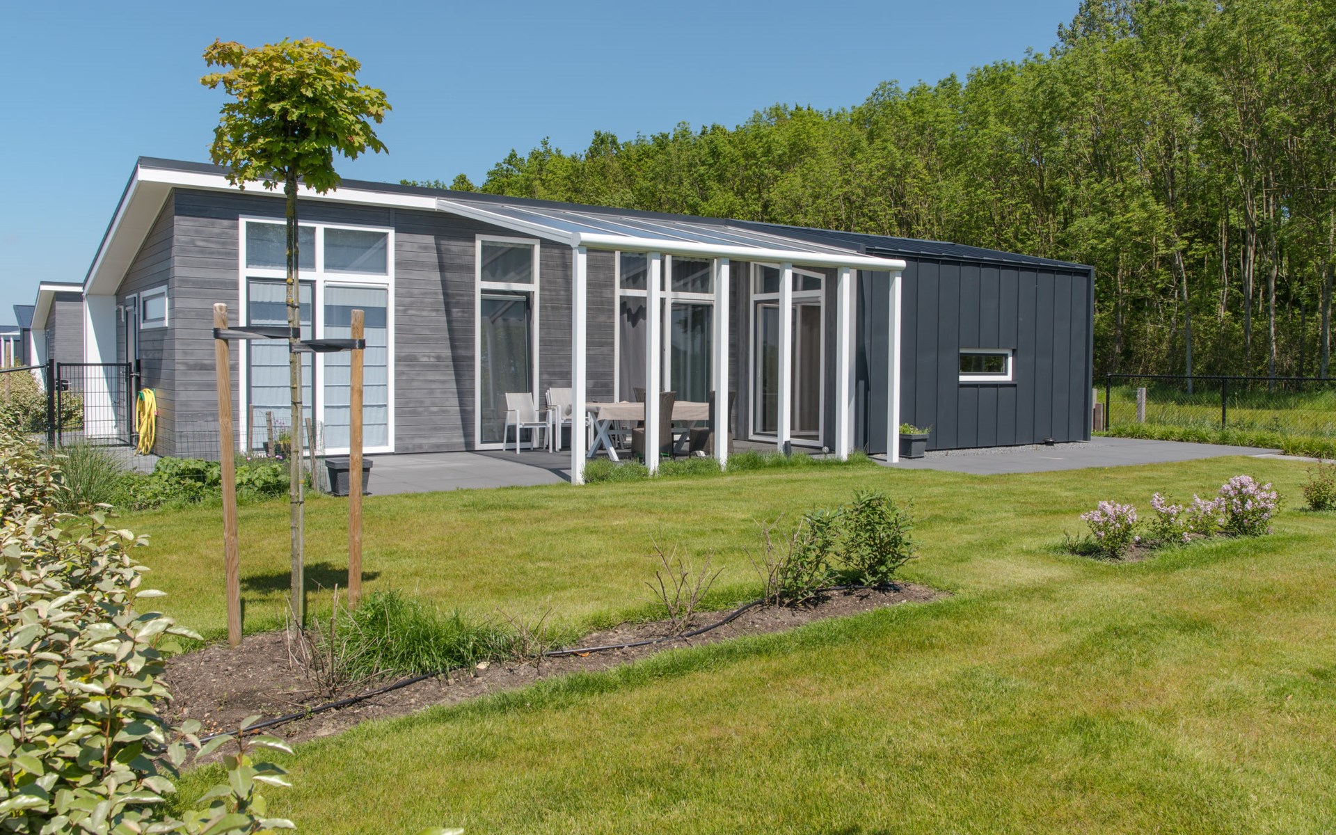 Dit rookvrije vakantiehuis beschikt over een lichte woon-/eetkamer met flatscreen TV en een gashaard voor de koudere maanden. De open keuken is volledig uitgerust met onder andere een inductiekookplaat, vaatwasser en magnetron. Met twee slaapkamers, elk voorzien van twee bedden, is dit de perfecte bungalow voor 4 personen in Wemeldinge. Vanuit de woonkamer stapt u zo het terras op van de grote tuin met uitzicht op het bos.