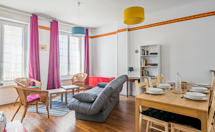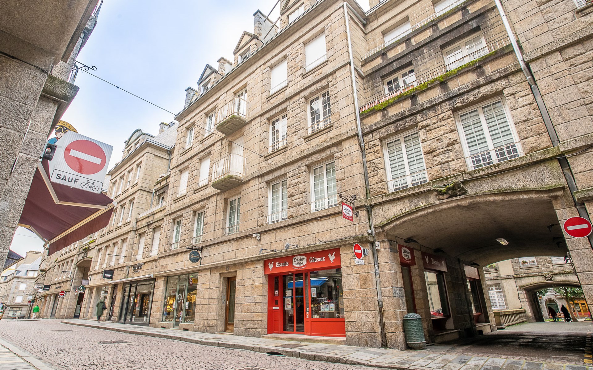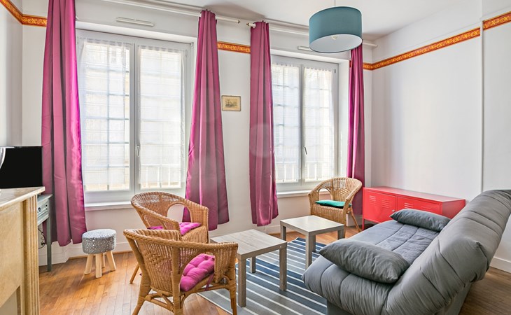 Oud appartementencomplex "Broussais", van 6 verdiepingen, bouwjaar 1945. In het centrum van Saint Malo Intramuros, centrale, drukke ligging, 200 m van zee, 250 m van het strand. In het complex: lift. Openbare parkeerplaatsen in de straat. Betaald kortparkeren zone, tijd: 09:00 - 20:00, maandag - zondag. Winkel, levensmiddelenwinkel 200 m, restaurant, bakkerij 100 m, café 10 m, bushalte "Intramuros" 500 m, station "TGV de Saint Malo" 1.6 km, veerboot "Gare maritime du Naye" 1.4 km, zandstrand "Bon secours" 250 m, overdekt zwembad 1.4 km, thermaalbad "Thermes marins de Saint Malo" 2.9 km. Jachthaven 2.4 km, zeilschool 350 m, tennis 1.6 km, manege 3.8 km. Attracties in de buurt: Dinan 32 km, Dinard 8 km, Cancale 17 km, Le grand aquarium de Saint Malo 5 km, Le mont Saint Michel 53 km, Casino Saint-Malo 2 km.