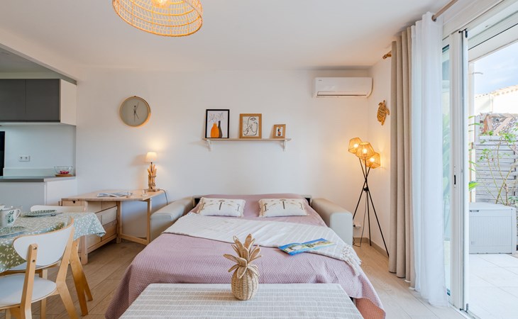 Fréjus Base nature: Flatgebouw "Le Saint Jean". In de wijk Port Fréjus, in een woonwijk, 800 m van zee, 900 m van het strand, te midden van groen. Parkeerplaats (beperkt aantal). Winkel, levensmiddelenwinkel, supermarkt 650 m, restaurant 800 m, bakkerij 400 m, bushalte "Mistral" 290 m, station "St Raphael" 4 km, zandstrand "plage port fréjus" 900 m. Jachthaven 800 m, golfterrein (18 holes) 9 km. Attracties in de buurt: Cannes 40 km, Saint-Tropez 40 km, Nice 70 km, Gorges du Verdon 90 km. Bekende meren kunnen gemakkelijk worden bereikt: Sainte-Croix 90 km. Wandelgebied Estérel 5 km. De sleuteloverdracht vindt plaats bij het agentschap INTERHOME in Port Fréjus.