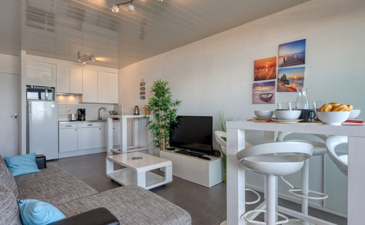 Lacanau-Ocean: Residentie "Les Océanides", van 4 verdiepingen. 300 m van het centrum, 20 m van zee, 6 km van het meer, 20 m van het strand, directe toegang tot het strand. Winkel 300 m, levensmiddelenwinkel 50 m, supermarkt 300 m, restaurant 50 m, bar 200 m, bakkerij 100 m, voetgangersgebied 200 m, fietsverhuur 500 m, bushalte "Salle l'Escoure Océan" 700 m, zandstrand "Plage sud" 20 m, meer (zwemmen) "Moutchic" 6 km. Golfterrein (18 holes) 4 km, zeilschool 10 km, tennis 2 km, manege 15 km. Attracties in de buurt: Bordeaux 60 km, Dune du Pilat 80 km, Arcachon 80 km, Saint Emilion 80 km, Lacanau Ville 10 km. Bekende meren kunnen gemakkelijk worden bereikt: Lac du moutchic 10 km, Lac de Maubuisson 20 km. Wandelgebied Chemin de Saint Jacques de Compostelle 500 m.