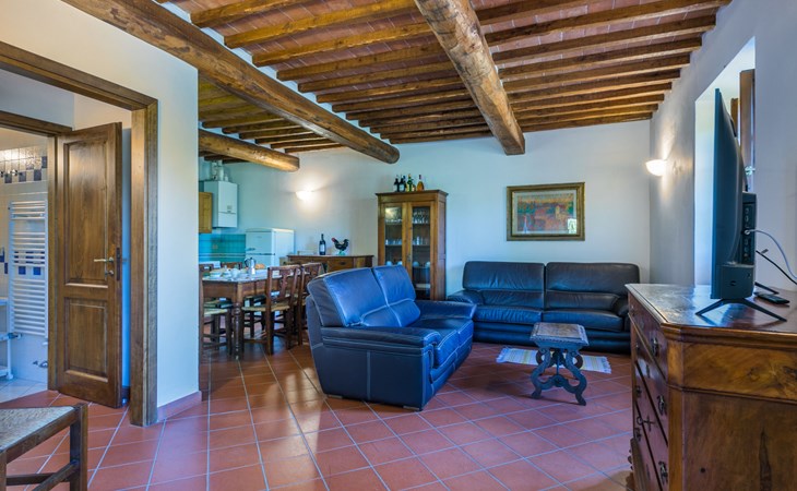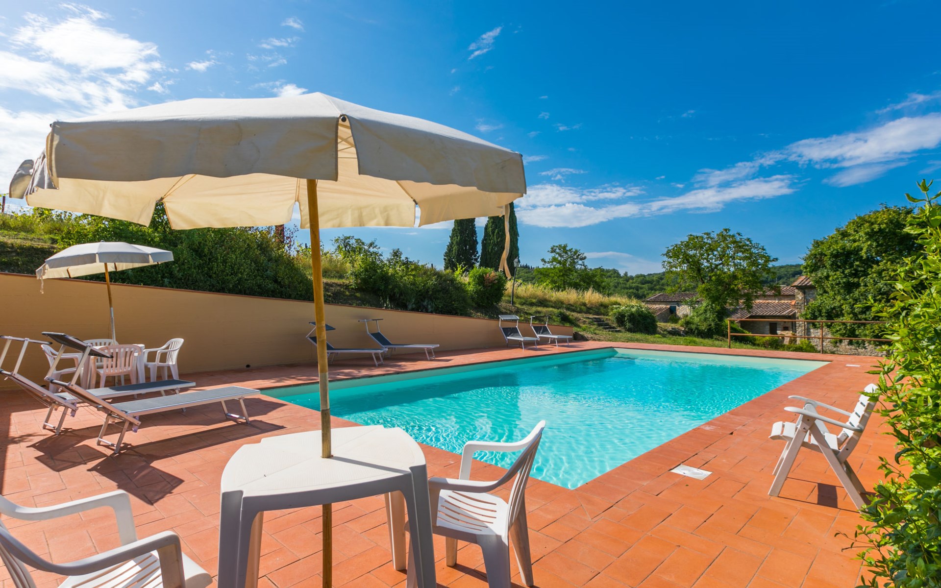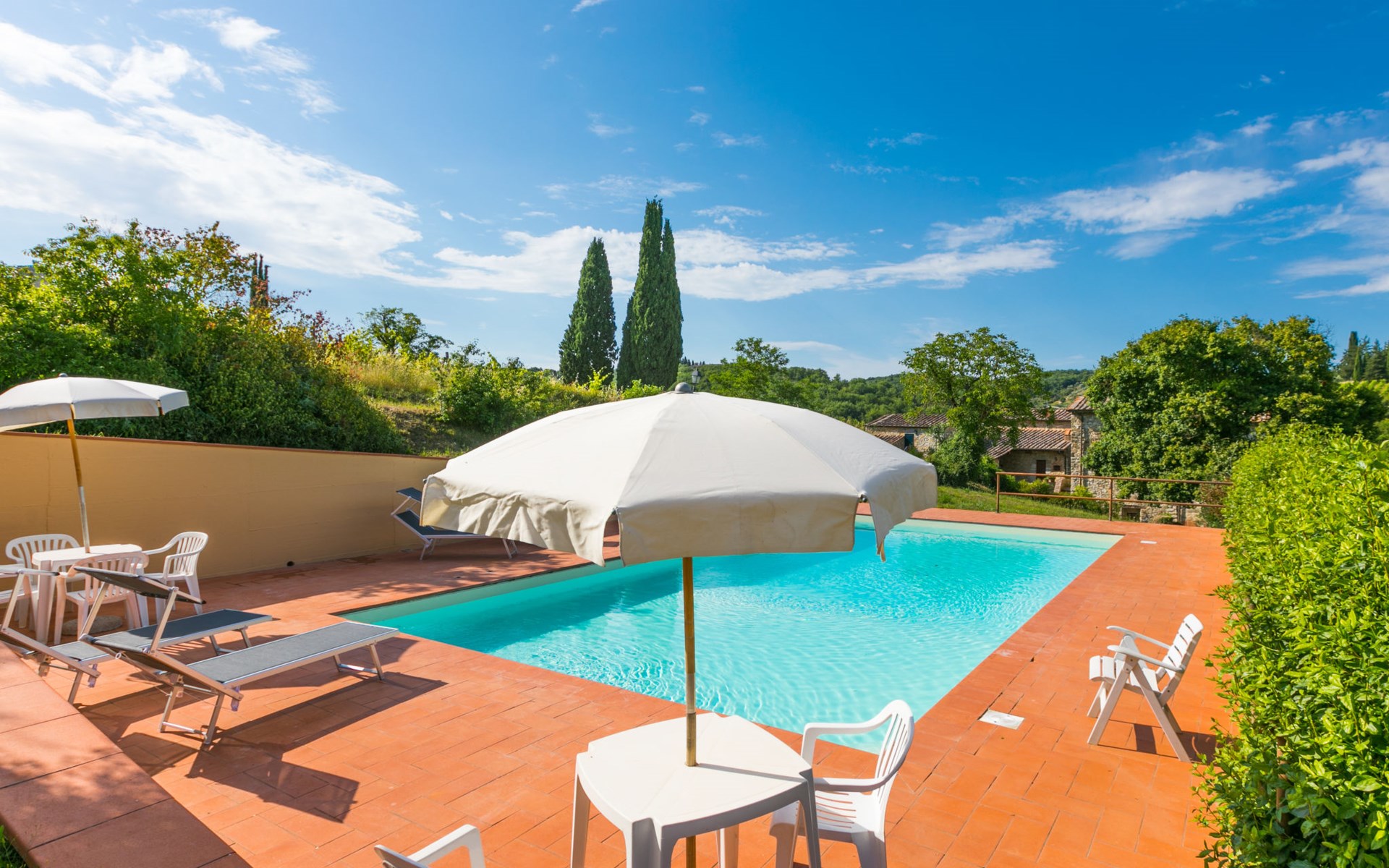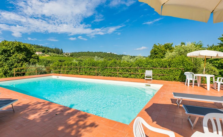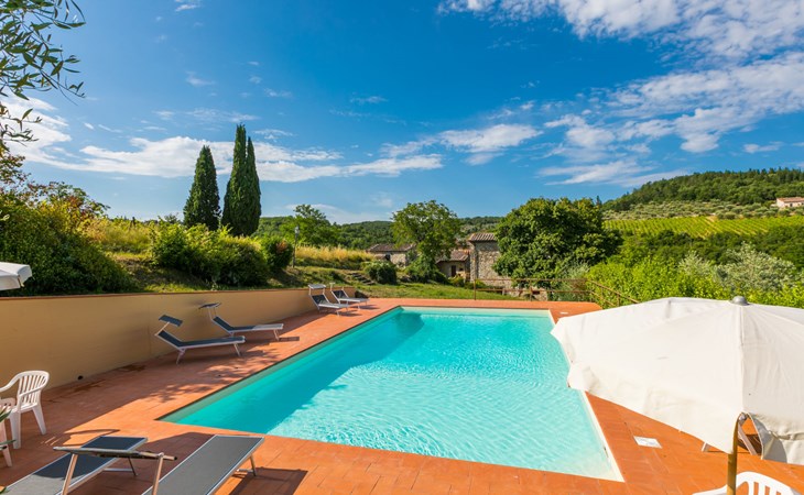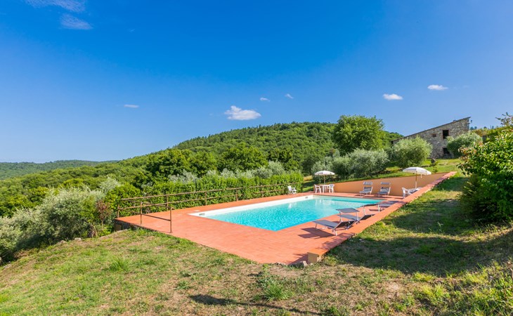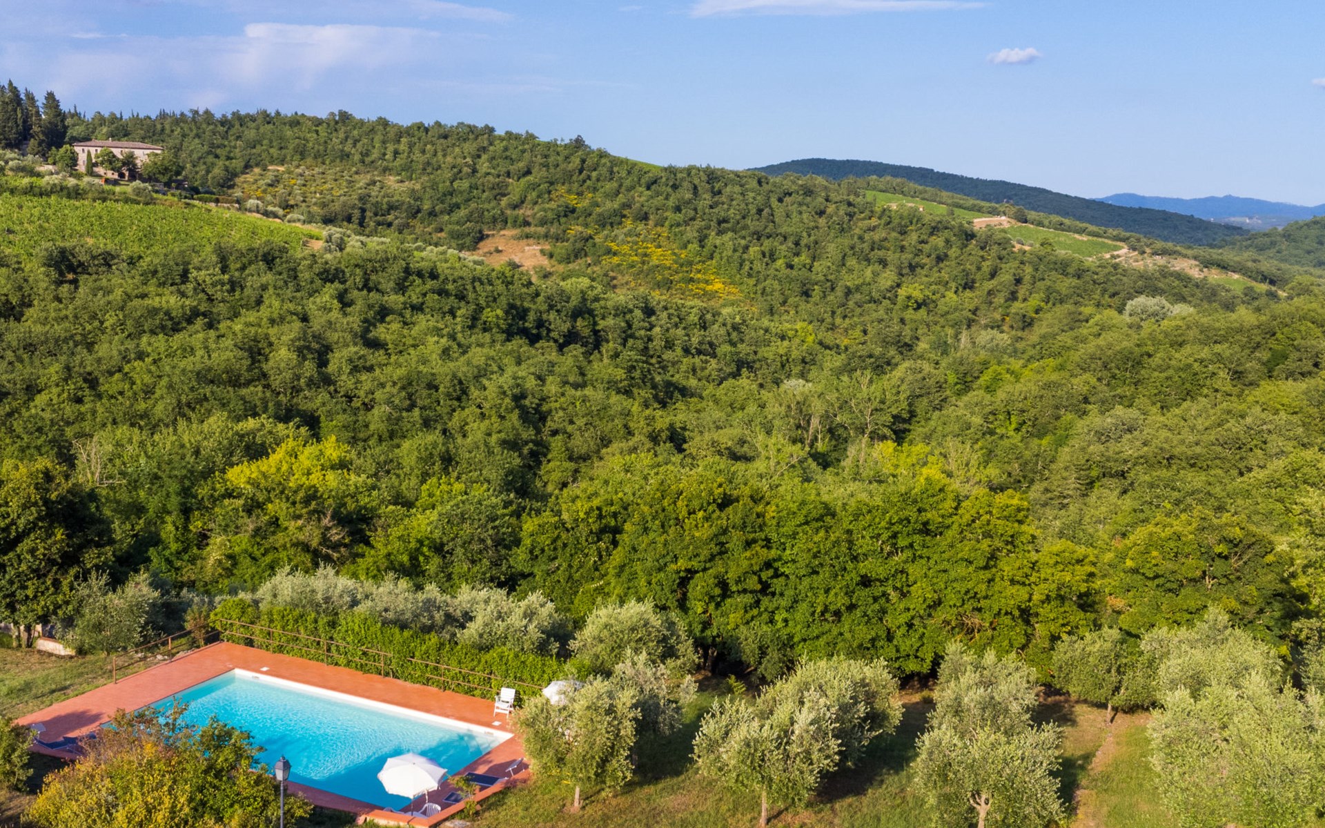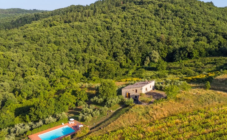 Castellina in Chianti: Gezellig, rustieke landhuis "Cerretino", omgeven door velden en wijngaarden. 3 huizen in de woning. 1 km van het centrum van Castellina in Chianti, zonnige ligging, 200 m van de bosrand, te midden van groen. Voor medegebruik: wild terrein, openluchtzwembad (6 x 12 m, 100 - 180 cm diepte, seizoensgebonden beschikbaarheid: 15.Mei. - 15.Okt.). Buitendouche, patio, terras, tuinmeubelen, onderhoud zwembad door de eigenaar/tuinman. In het huis: air-conditioning, wasmachine, droger (voor medegebruik). 300 m lange zeer rommelige, smalle toegangsweg tot aan het huis. Parkeerplaats bij het huis. Winkel 1 km, levensmiddelenwinkel 1 km, supermarkt 1 km, restaurant 1 km, bar 500 m, bakkerij 1 km, voetgangersgebied 1 km, centrum te voet bereikbaar in 15 minuten, bushalte 1 km, zandstrand "Cecina Mare" 88 km, thermaalbad "Rapolano Terme" 50 km. Wandelroutes 200 m vanaf het huis. Attracties in de buurt: Panzano in Chianti 13 km, Greve in Chianti 20 km, Gaiole in Chianti 20 km, Siena 26 km, San Gimignano 42 km, Firenze 50 km. Baby uitrusting (incl.).