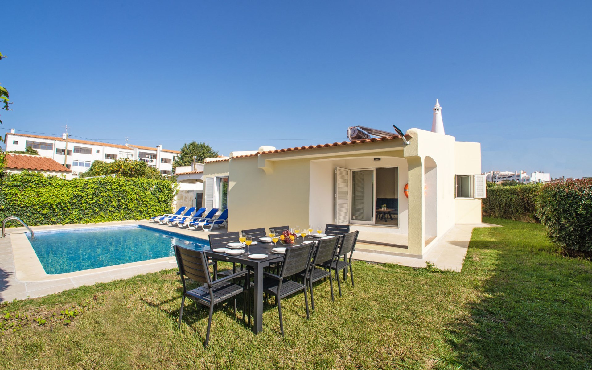 Zeer gezellig, comfortabel huis "LY - VIP Properties". In de plaats, 2.3 km van het centrum van Albufeira, 1 km van zee. Voor alleengebruik: openluchtzwembad hoekig, verwarmd (4 x 8 m, 90 - 180 cm diepte, seizoensgebonden beschikbaarheid: 01.Jan. - 31.Dec.). In het huis: Internet (WiFi), air-conditioning, wasmachine, droogruimte. Parkeerplaats bij het huis. Levensmiddelenwinkel, supermarkt 500 m, winkelcentrum 1.3 km, restaurant 170 m, bar 260 m, bakkerij 200 m, café 200 m, fietsverhuur 280 m, bushalte 300 m, treinstation 5.7 km, zandstrand "Praia da Oura" 1 km, duikschool 550 m. Jachthaven 4.7 km, golfterrein (18 holes) 10.6 km, surfschool 8.9 km, midgetgolf 750 m, manege 10.3 km, kinderspeelplaats 1.4 km. Attracties in de buurt: Adventure Mini Golf Park 750 m, Zebra Safri Tours 2.4 km, Algarve Shopping 9.7 km, Zoomarine 11 km, Krazy World 16.2 km, Faro Airport 36 km. Bekende meren kunnen gemakkelijk worden bereikt: Lagoa dos Salgados 13.4 km.