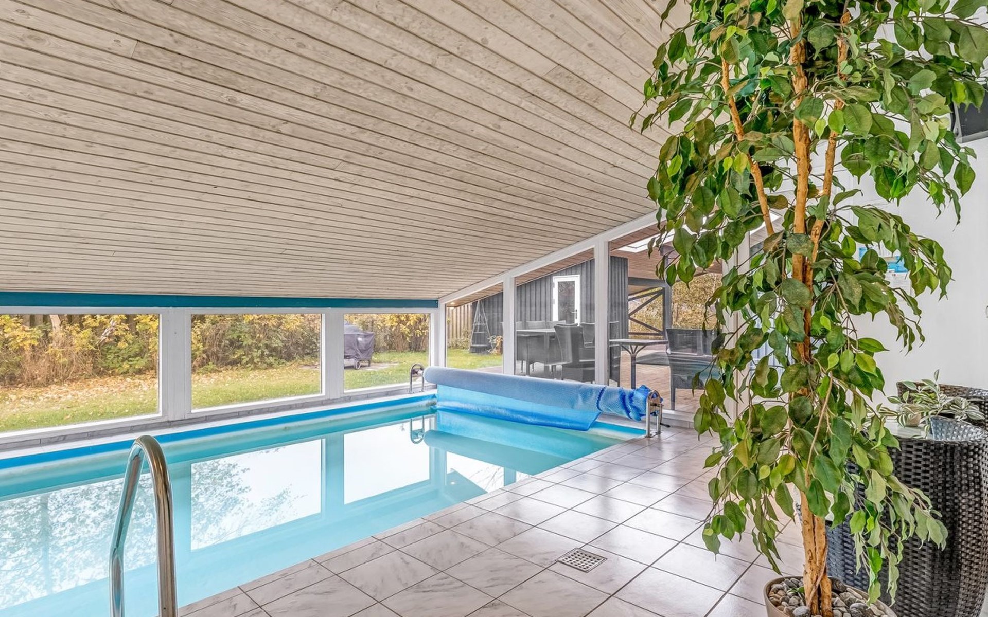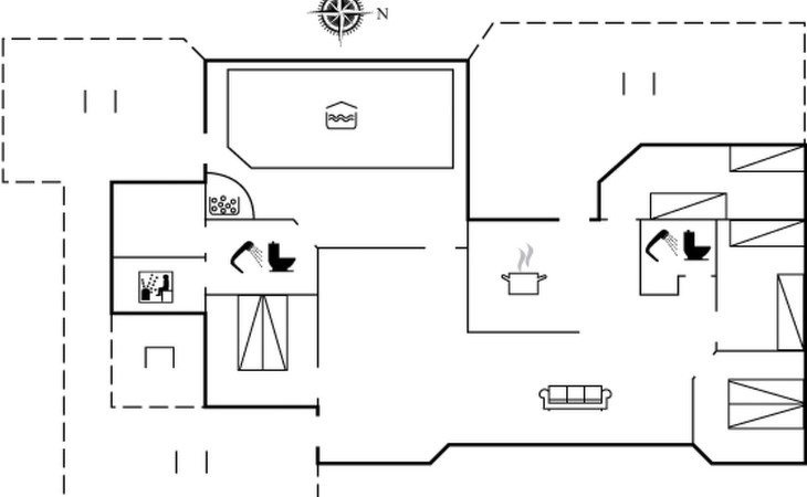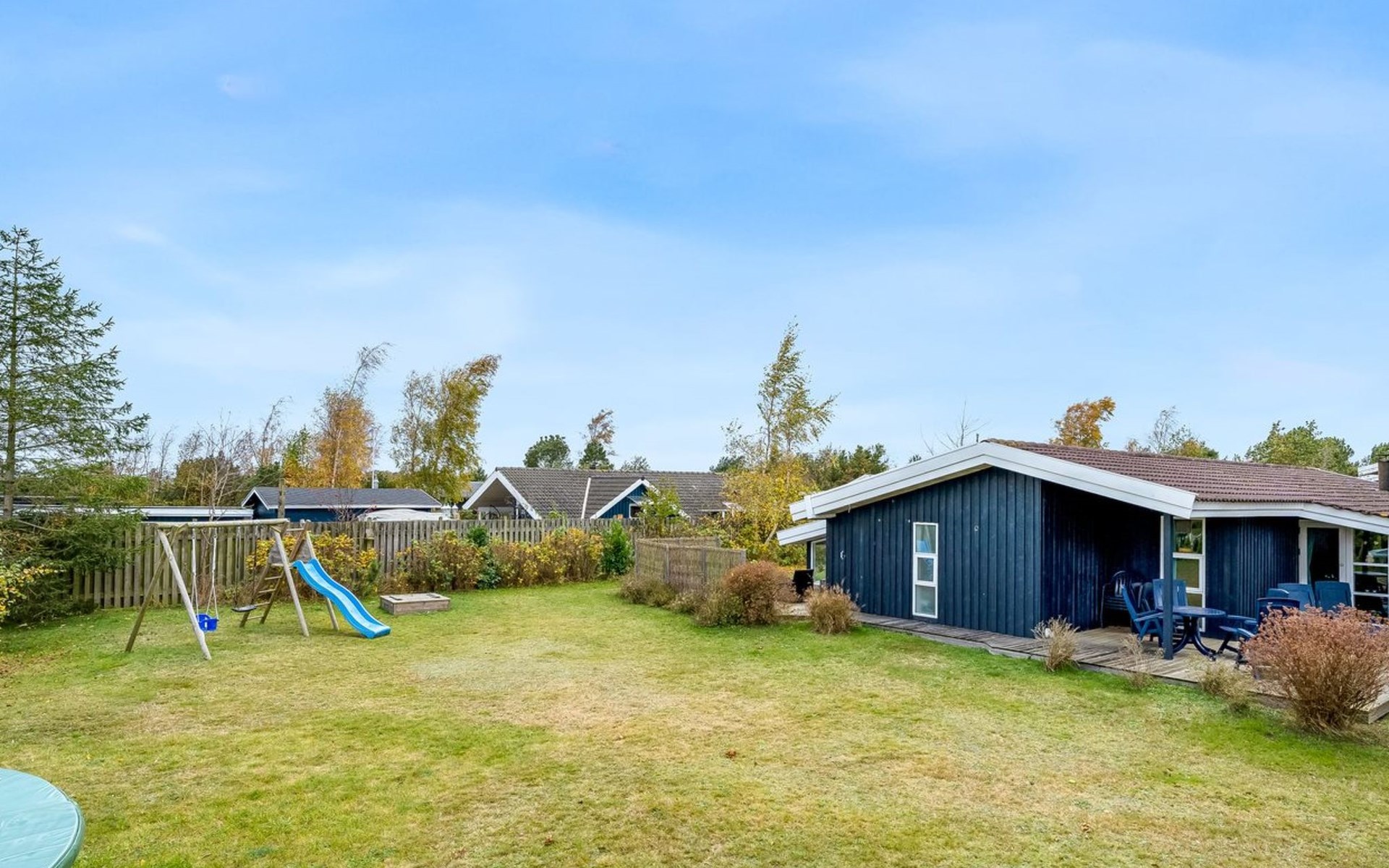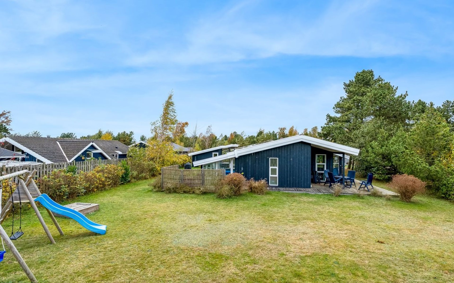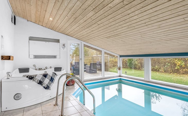 Eengezinswoning, bouwjaar 1975. 900 m van zee. Voor alleengebruik: terrein 1.023 m2, verzorgde tuin, overdekt zwembad (3 x 6 m, 18 m2, 120 - 120 cm diepte). Terras (40 m2), barbecue, kinderspeelplaats (glijbaan, schommel). In het huis: sauna, trampoline, wasmachine, droger. Parkeerplaats bij het huis. Carport. Levensmiddelenwinkel 1.8 km. Golfterrein 2 km. De eigenaar accepteert geen jeugdgroepen.