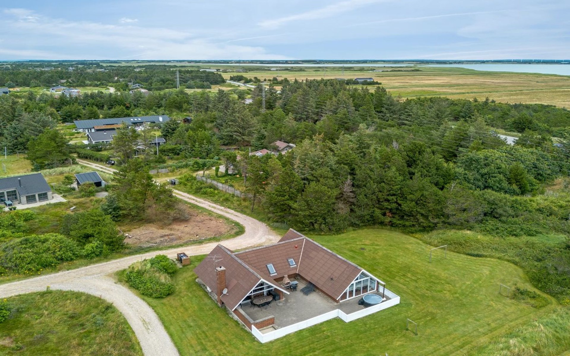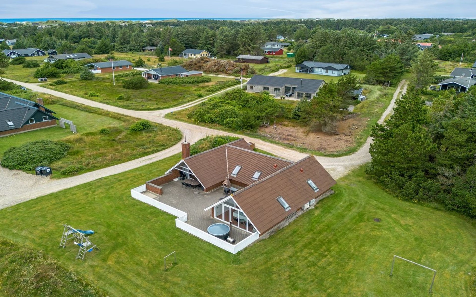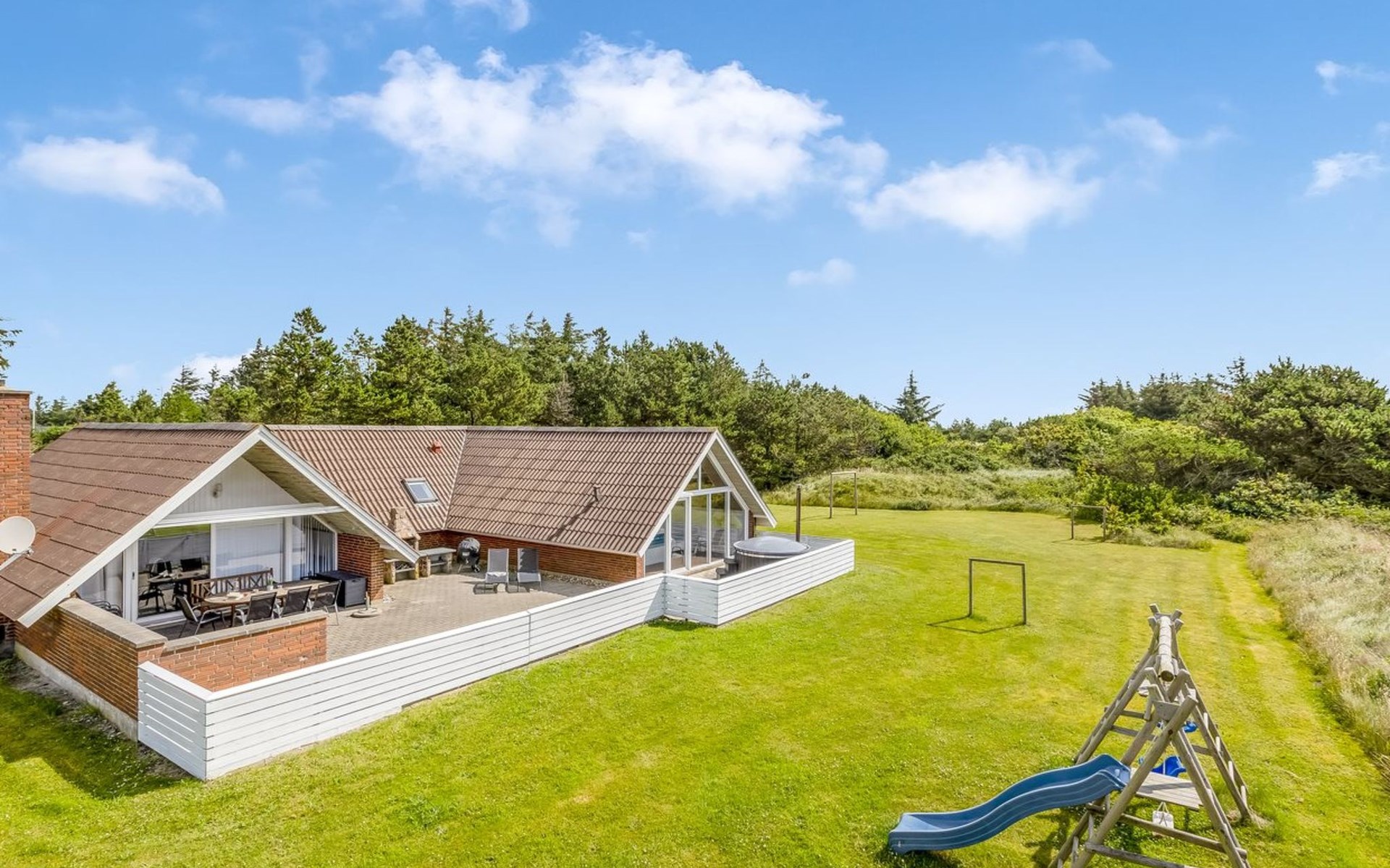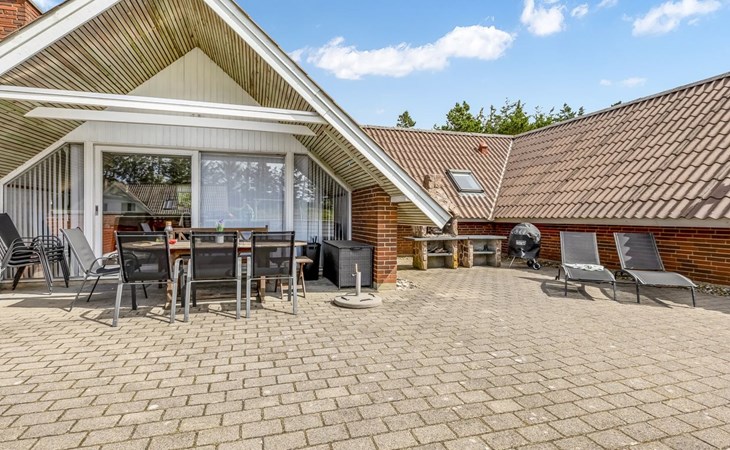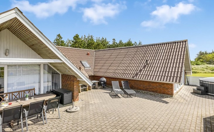 Eengezinswoning, bouwjaar 1985. 900 m van zee. Voor alleengebruik: wild terrein 4.500 m2, overdekt zwembad (4 x 5 m, 20 m2, 120 - 120 cm diepte). Terras (90 m2), kinderspeelplaats (schommel). In het huis: sauna, wasmachine, droger. Parkeerplaats bij het huis. Oplaadstation. Levensmiddelenwinkel 1 km. De eigenaar accepteert geen jeugdgroepen.