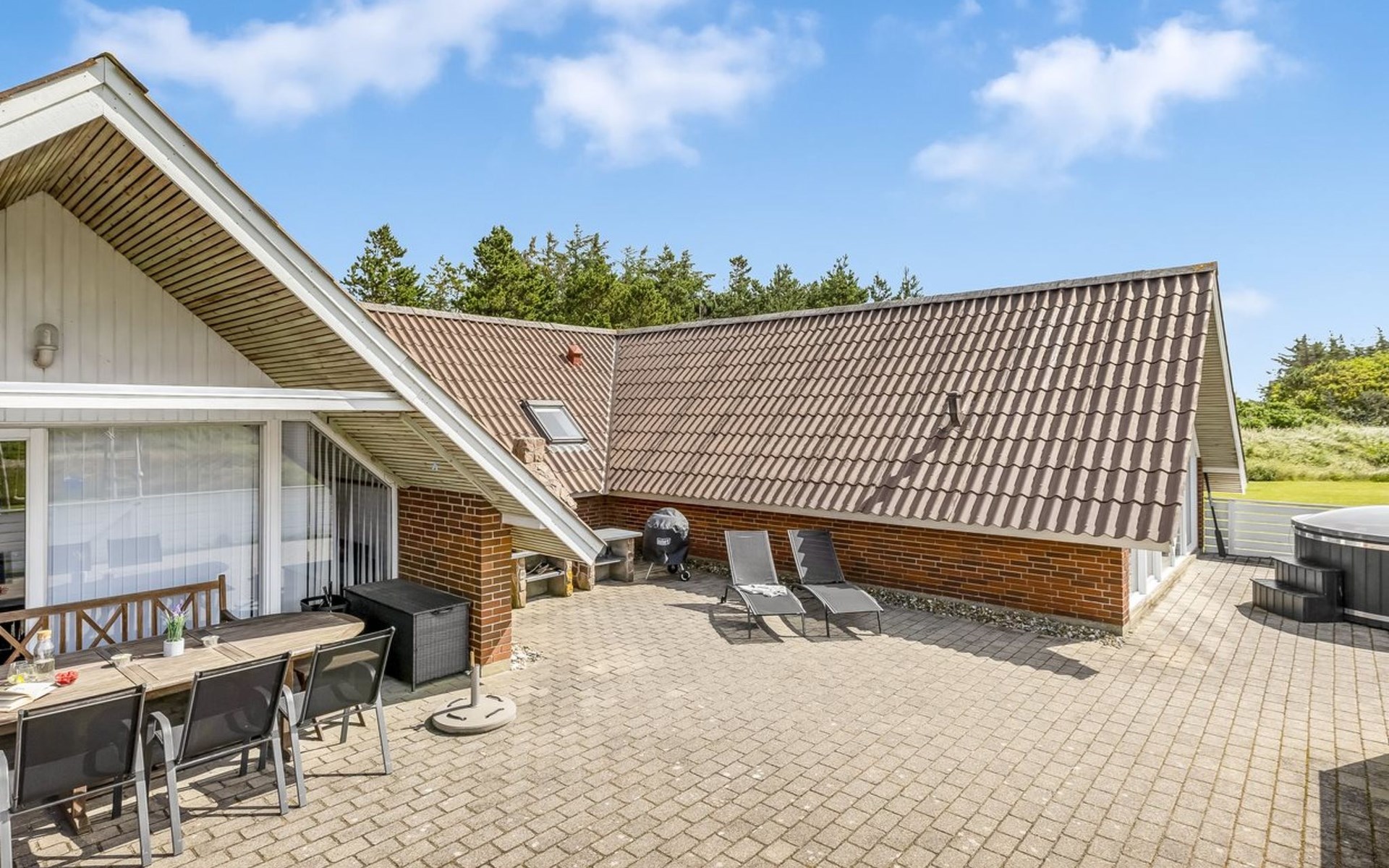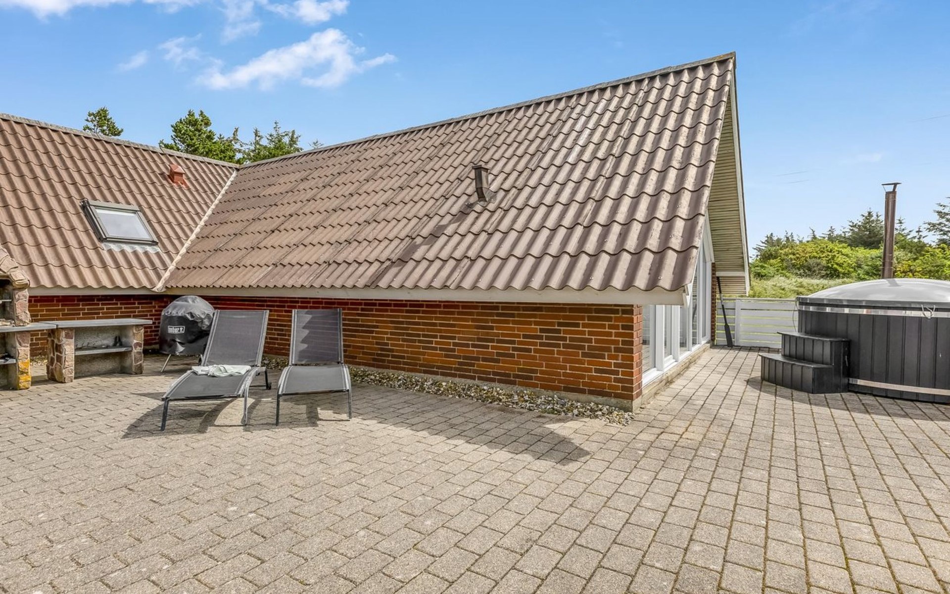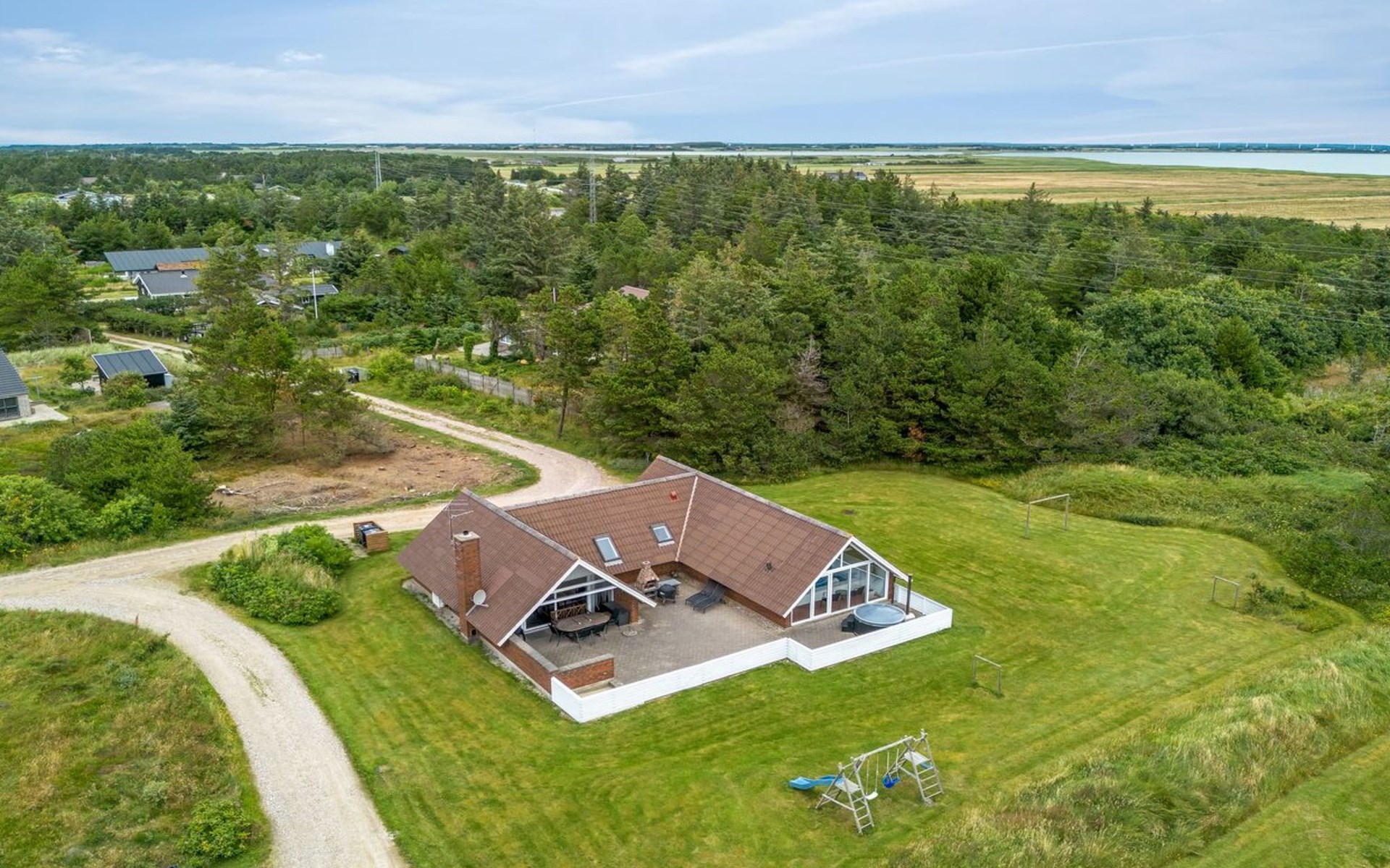 Eengezinswoning, bouwjaar 1985. 900 m van zee. Voor alleengebruik: wild terrein 4.500 m2, overdekt zwembad (4 x 5 m, 20 m2, 120 - 120 cm diepte). Terras (90 m2), kinderspeelplaats (schommel). In het huis: sauna, wasmachine, droger. Parkeerplaats bij het huis. Oplaadstation. Levensmiddelenwinkel 1 km. De eigenaar accepteert geen jeugdgroepen.