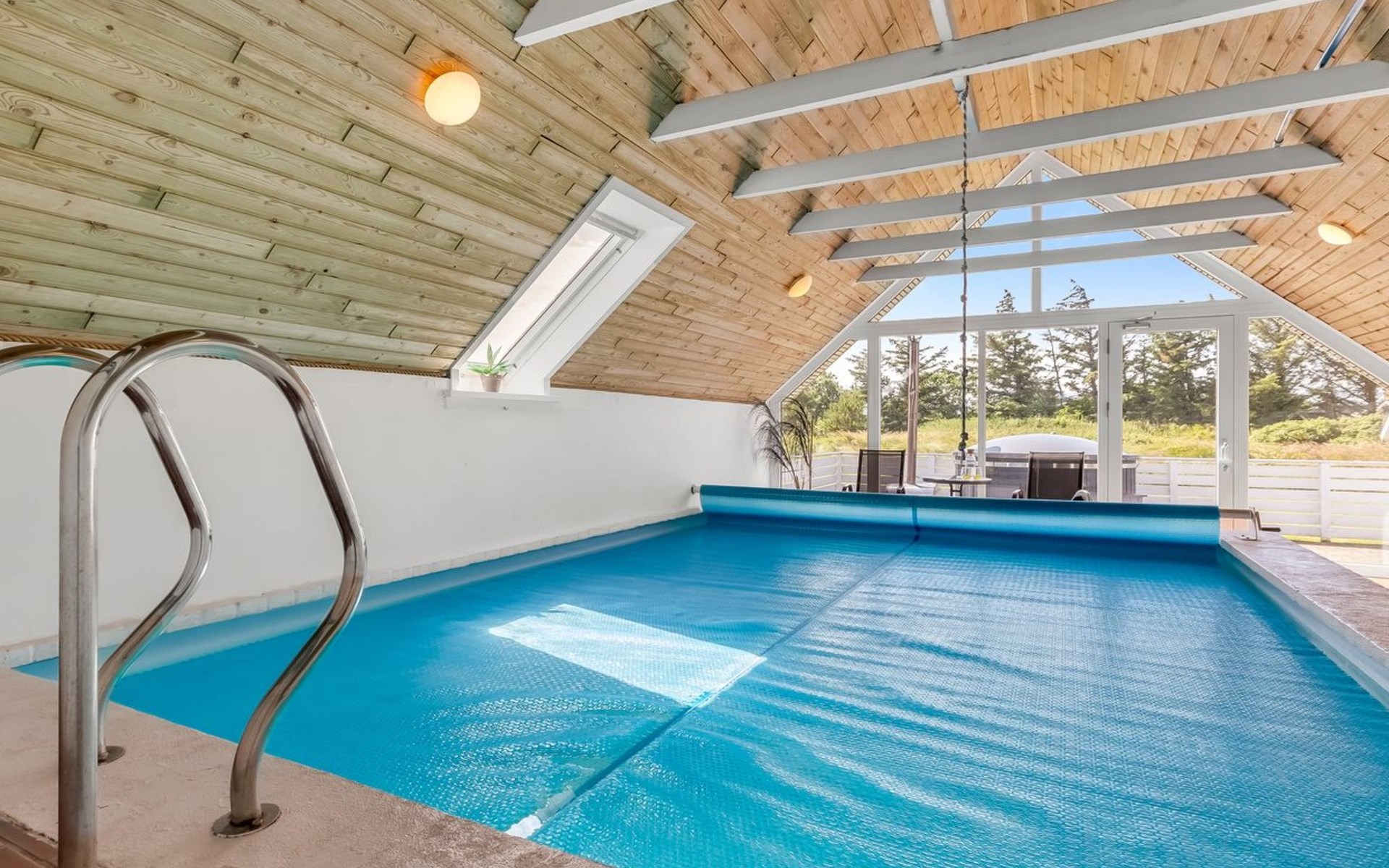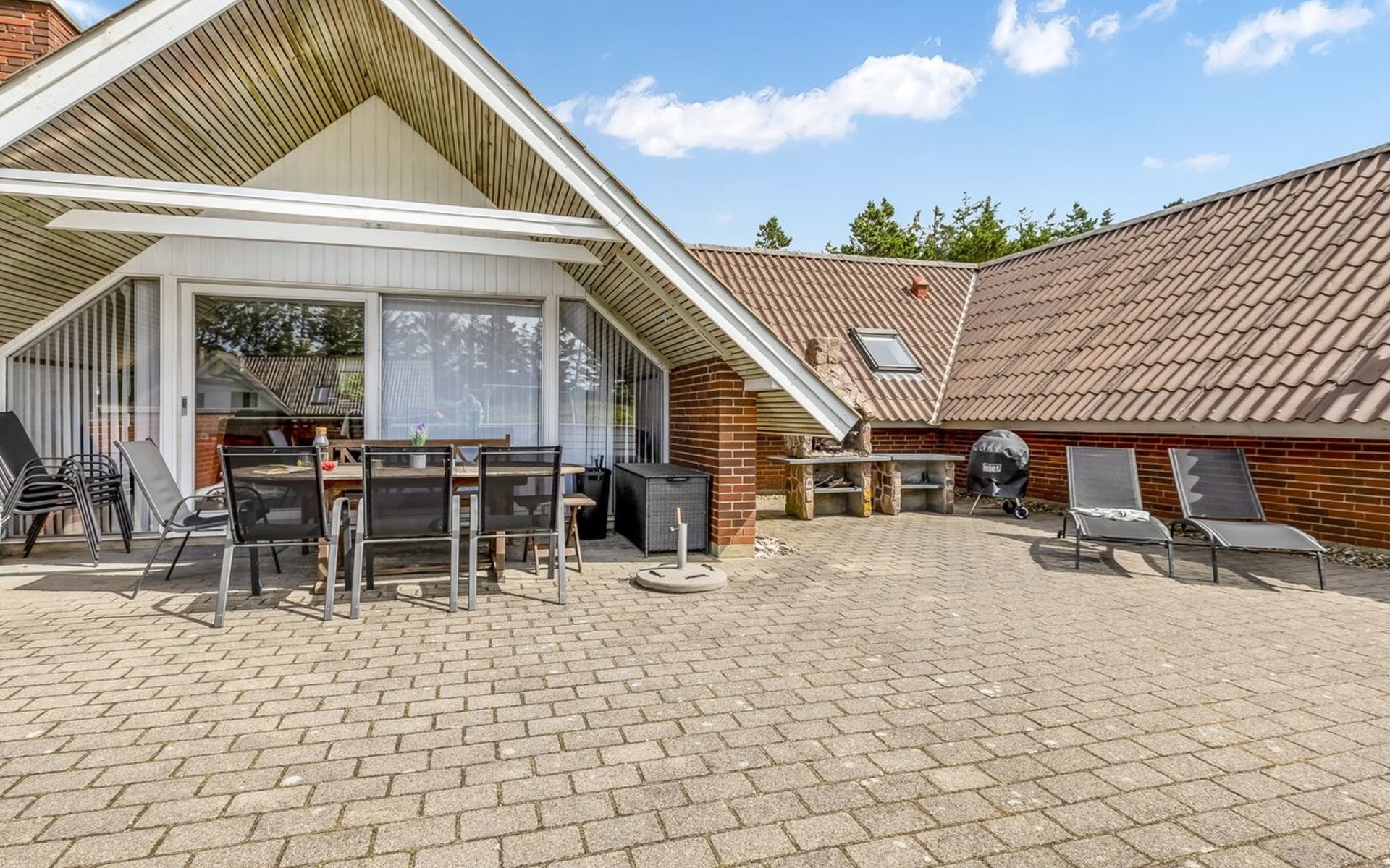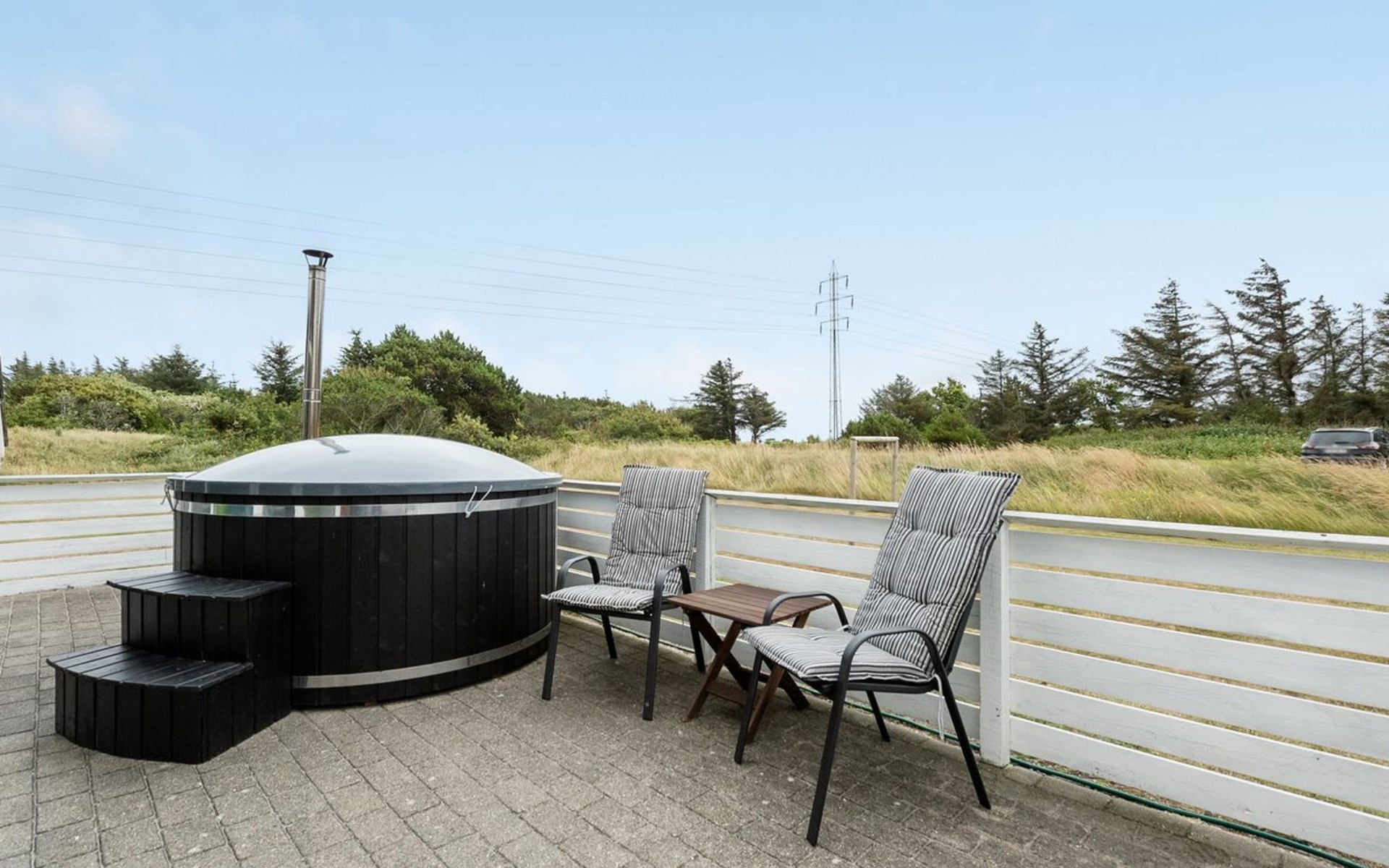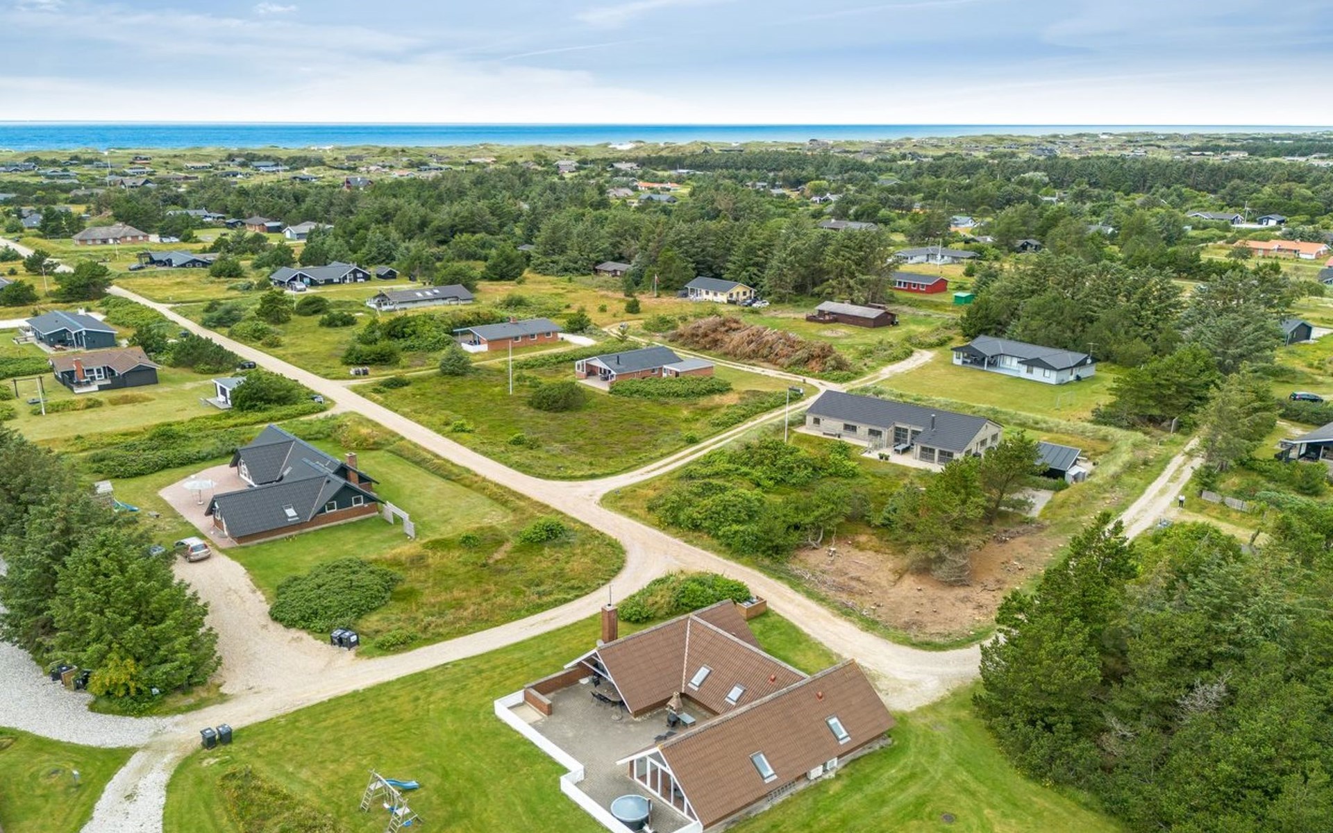 Eengezinswoning, bouwjaar 1985. 900 m van zee. Voor alleengebruik: wild terrein 4.500 m2, overdekt zwembad (4 x 5 m, 20 m2, 120 - 120 cm diepte). Terras (90 m2), kinderspeelplaats (schommel). In het huis: sauna, wasmachine, droger. Parkeerplaats bij het huis. Oplaadstation. Levensmiddelenwinkel 1 km. De eigenaar accepteert geen jeugdgroepen.