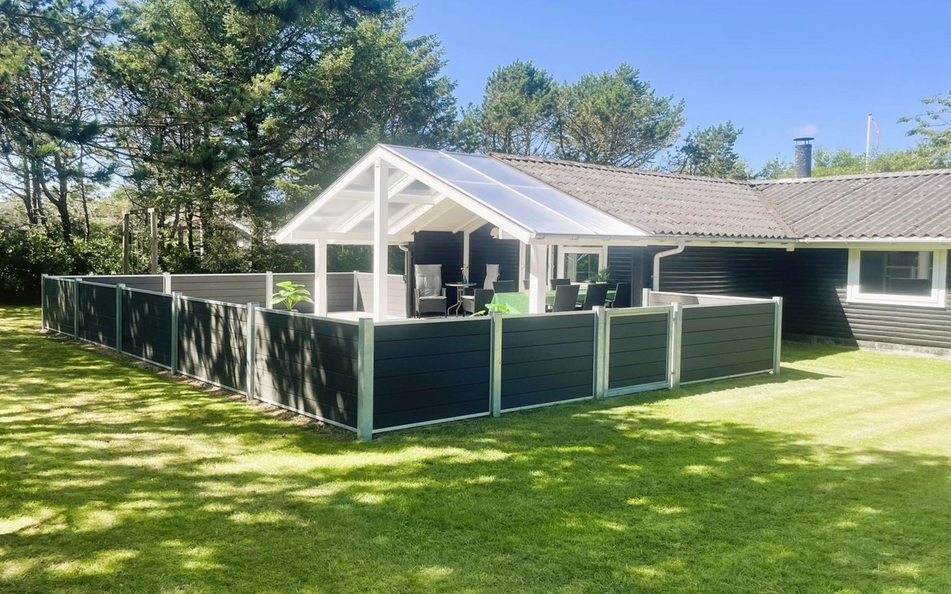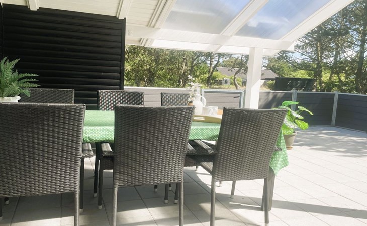Eengezinswoning, bouwjaar 1972. 1.3 km van zee. Voor alleengebruik: wild terrein 1.200 m2. Terras (74 m2), kinderspeelplaats (schommel). In het huis: sauna, wasmachine, droger. Parkeerplaats bij het huis. Levensmiddelenwinkel 150 m. De eigenaar accepteert geen jeugdgroepen.
