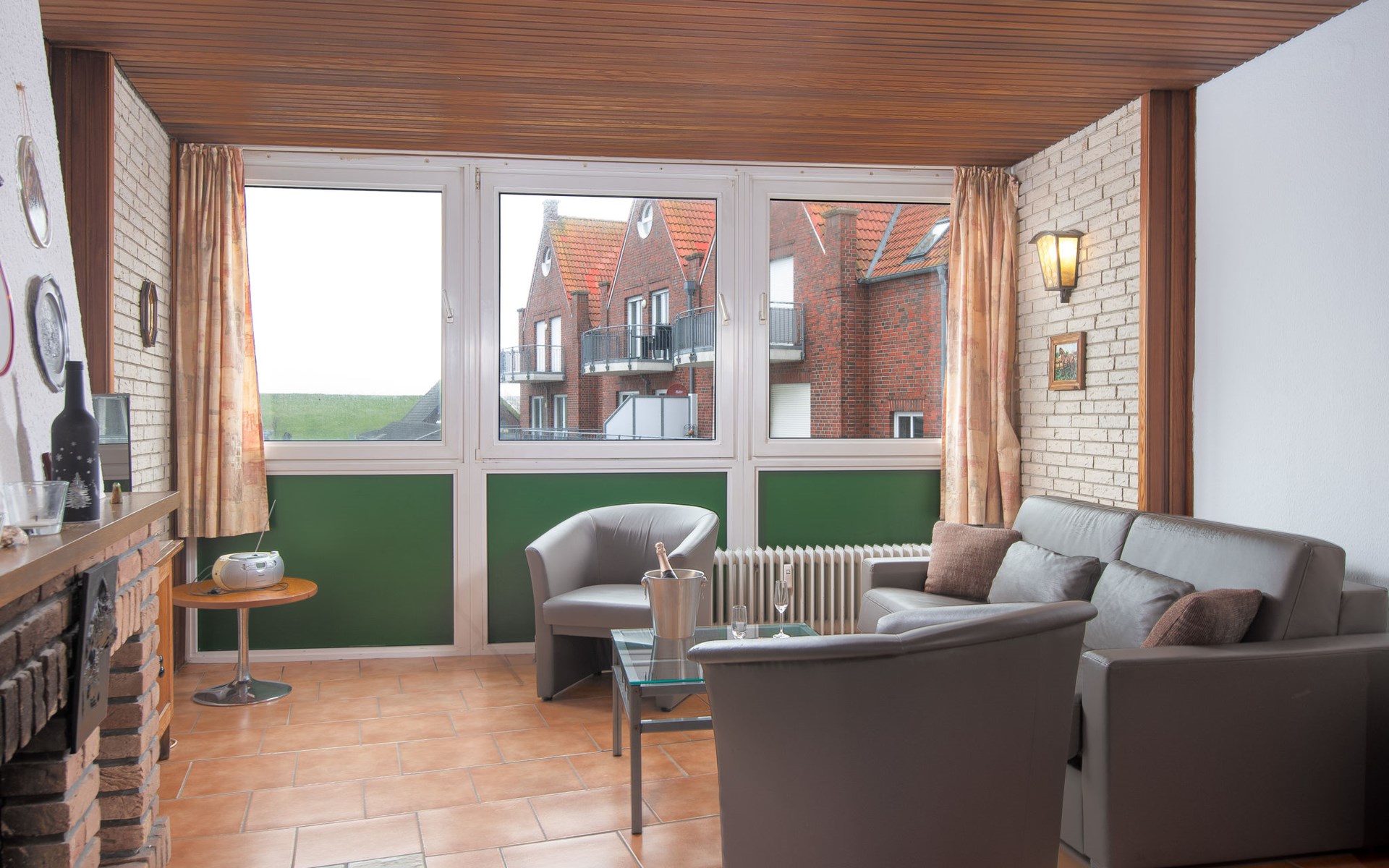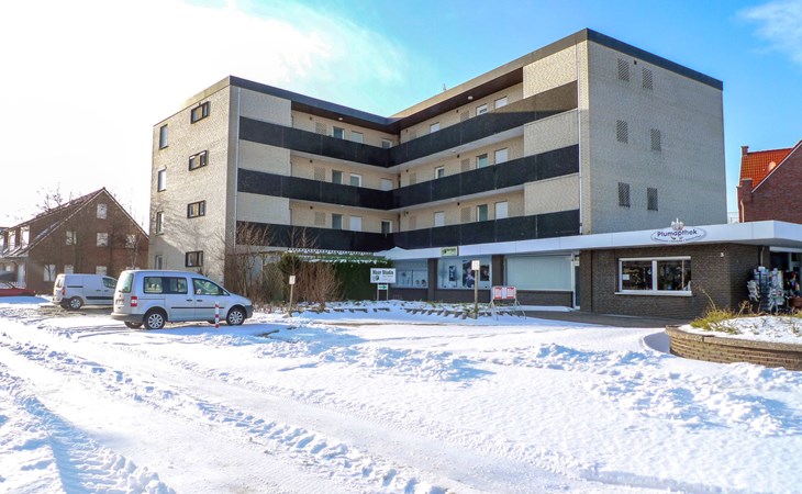 Flatgebouw van 4 verdiepingen. In de plaats, centrale ligging, 300 m van zee, 200 m van het strand. In het huis: lift, bergruimte voor fietsen, centrale verwarming. Parkeerplaats bij het huis. Supermarkt 1.5 km, restaurant 50 m, bakkerij 50 m, café, bushalte 300 m, station "Norddeich" 1.2 km, veerboot 1.2 km, zandstrand 200 m, overdekt zwembad 200 m. Golfterrein (18 holes) 8 km, surfschool 300 m, tennis 2.4 km.