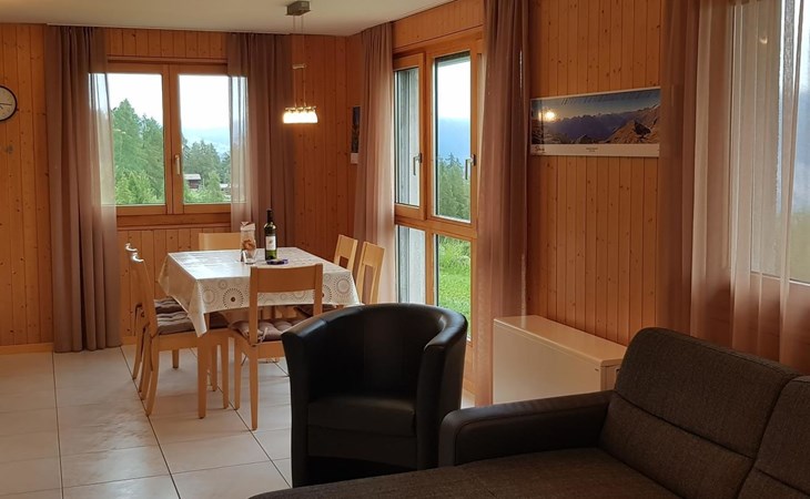 At the chalet you can enjoy the mountain panorama with Matterhorn view, fresh air and sunbeams. Your flat contains two bedrooms and a kitchen with living room.