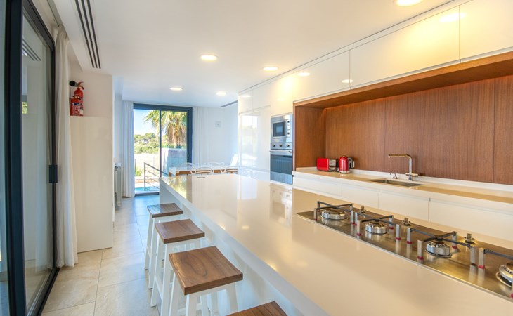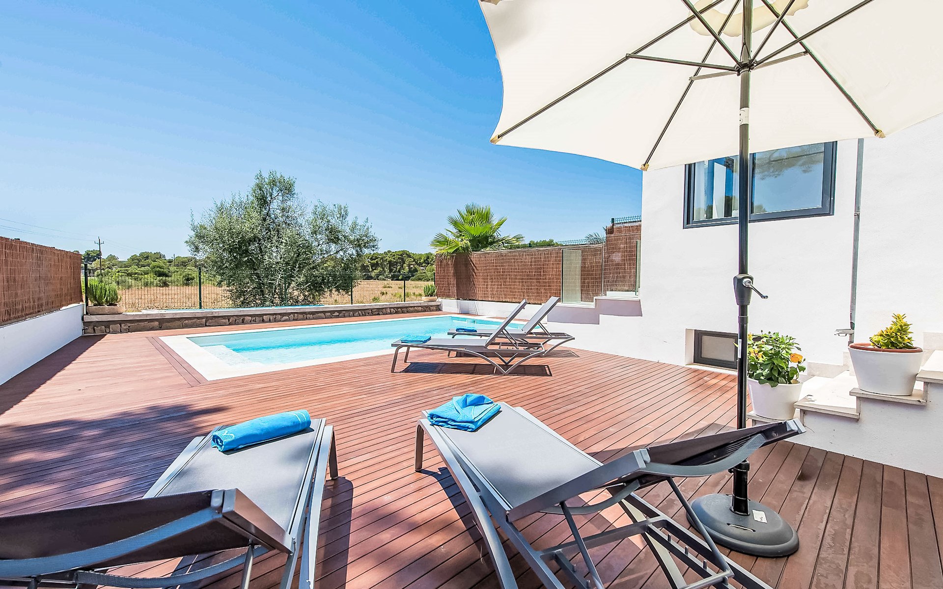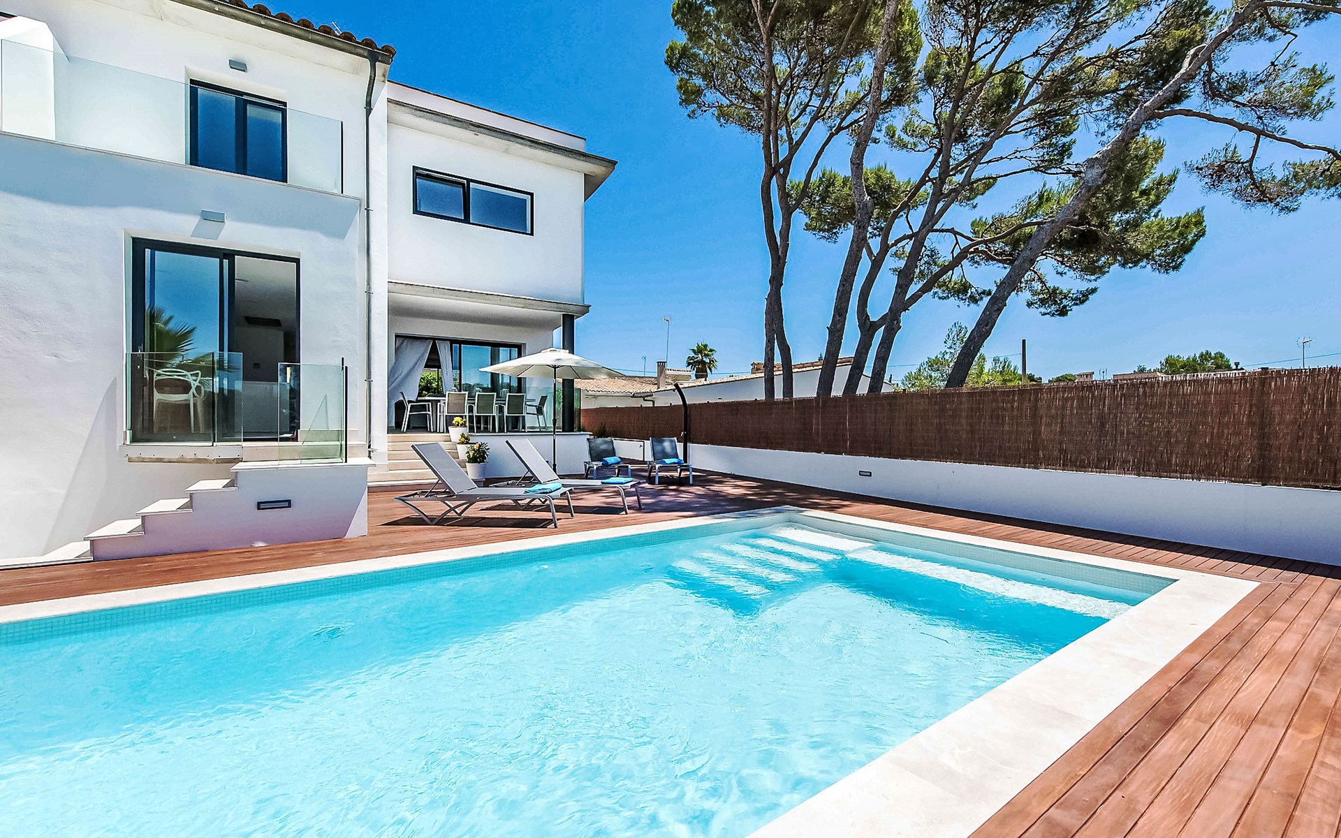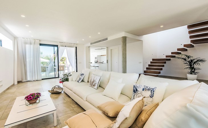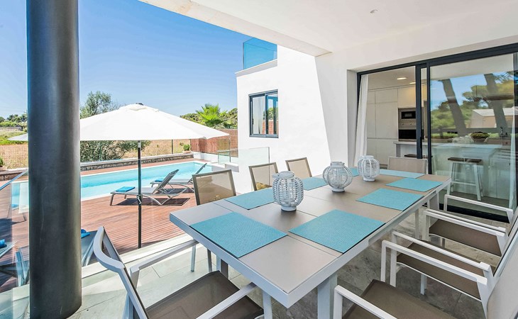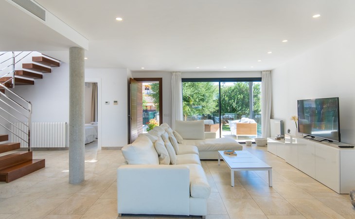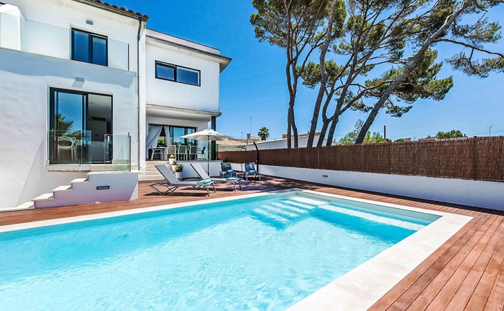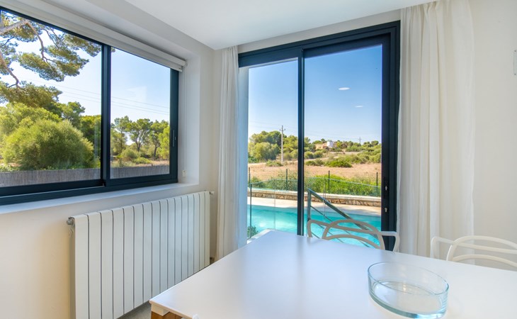 Can Picafort: Zeer groot, moderne, comfortabel huis "Marianne", van 2 verdiepingen, bouwjaar 2016. In de plaats, 250 m van het centrum van Son Baulo, rustige ligging villa wijk, 450 m van zee, 450 m van het strand. Voor alleengebruik: tuin met gazon, openluchtzwembad (8 x 4 m, seizoensgebonden beschikbaarheid: 01.Apr. - 31.Okt.) met zout-elektrolyse. Buitendouche, terras, tuinmeubelen, barbecue. In het huis: centrale verwarming, air-conditioning, wasmachine. Parkeerplaats bij het huis. Winkel 400 m, supermarkt 800 m, restaurant 400 m, bushalte 1.6 km, zandstrand 400 m. Golfterrein (18 holes) 6 km, manege 500 m, kinderspeelplaats 300 m. Attracties in de buurt: Playa y parque natural Son Real 600 m. Groepen jongeren uitsluitend op aanvraag.